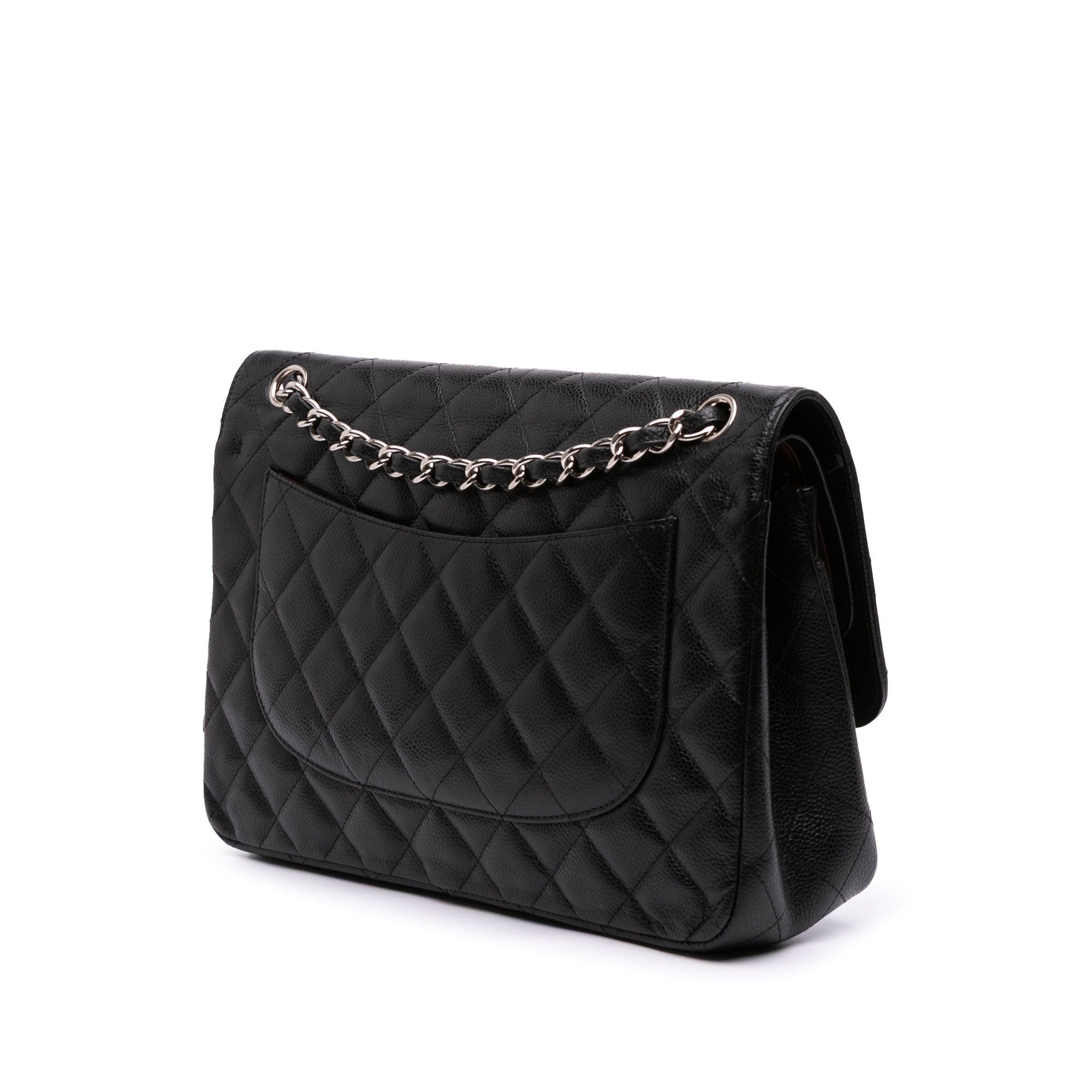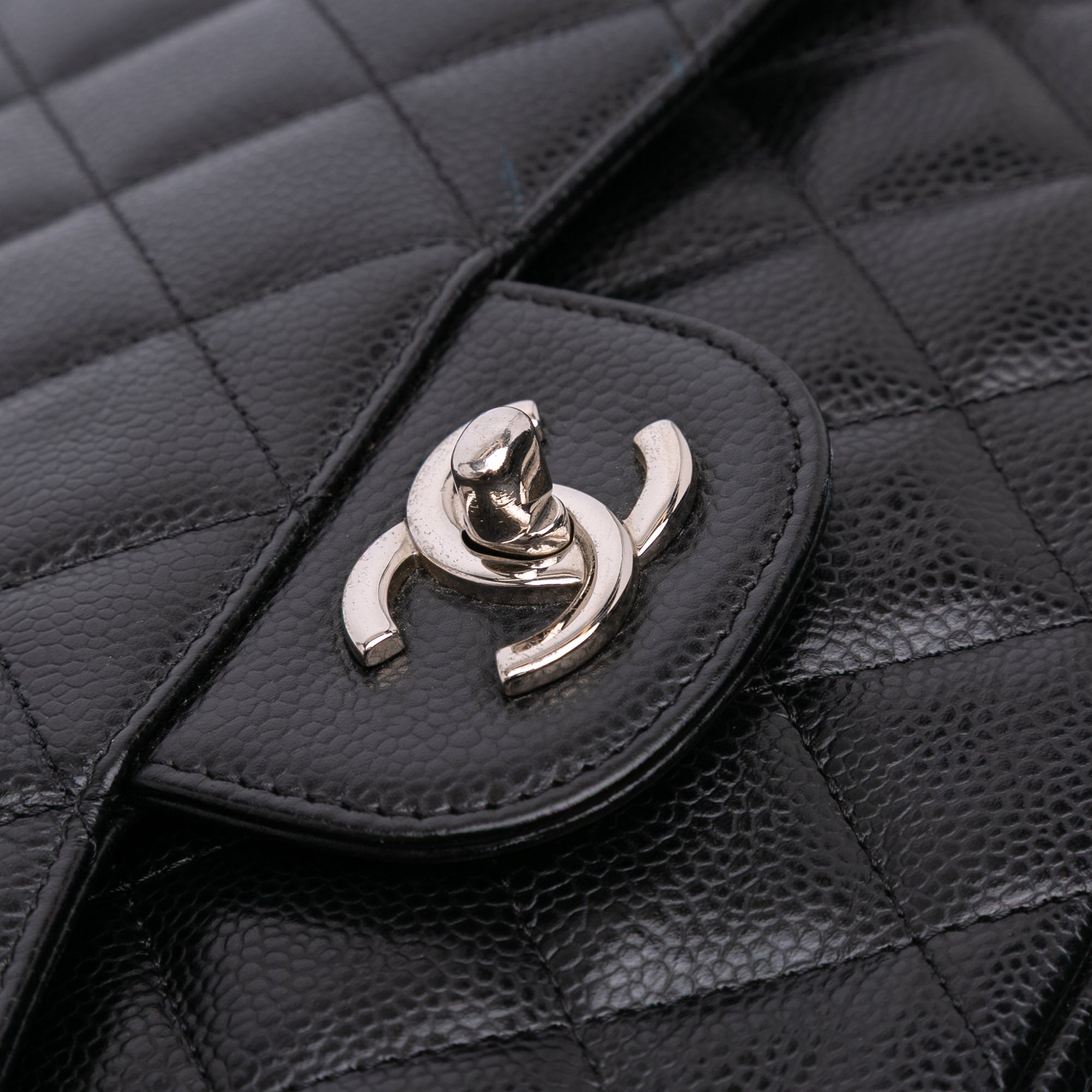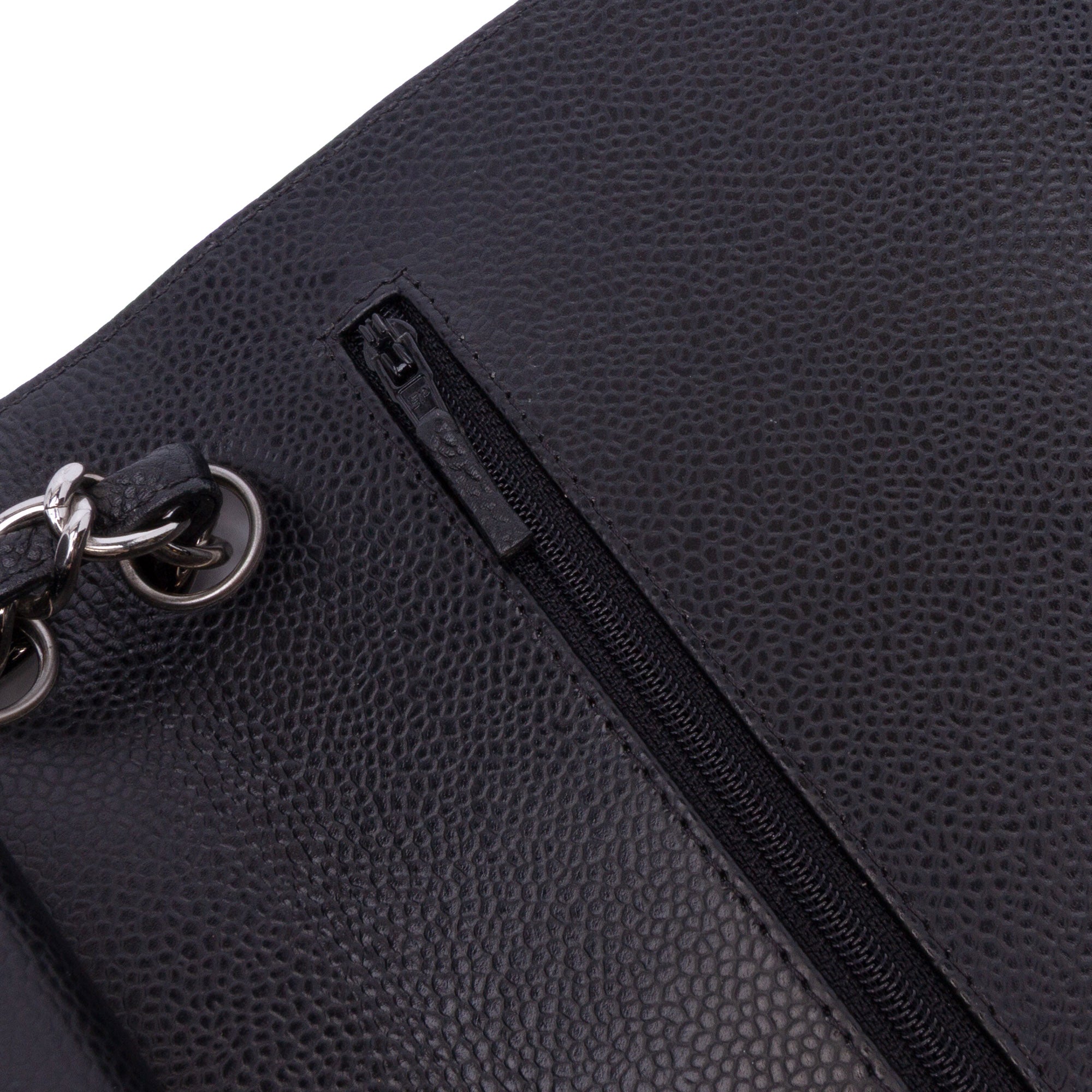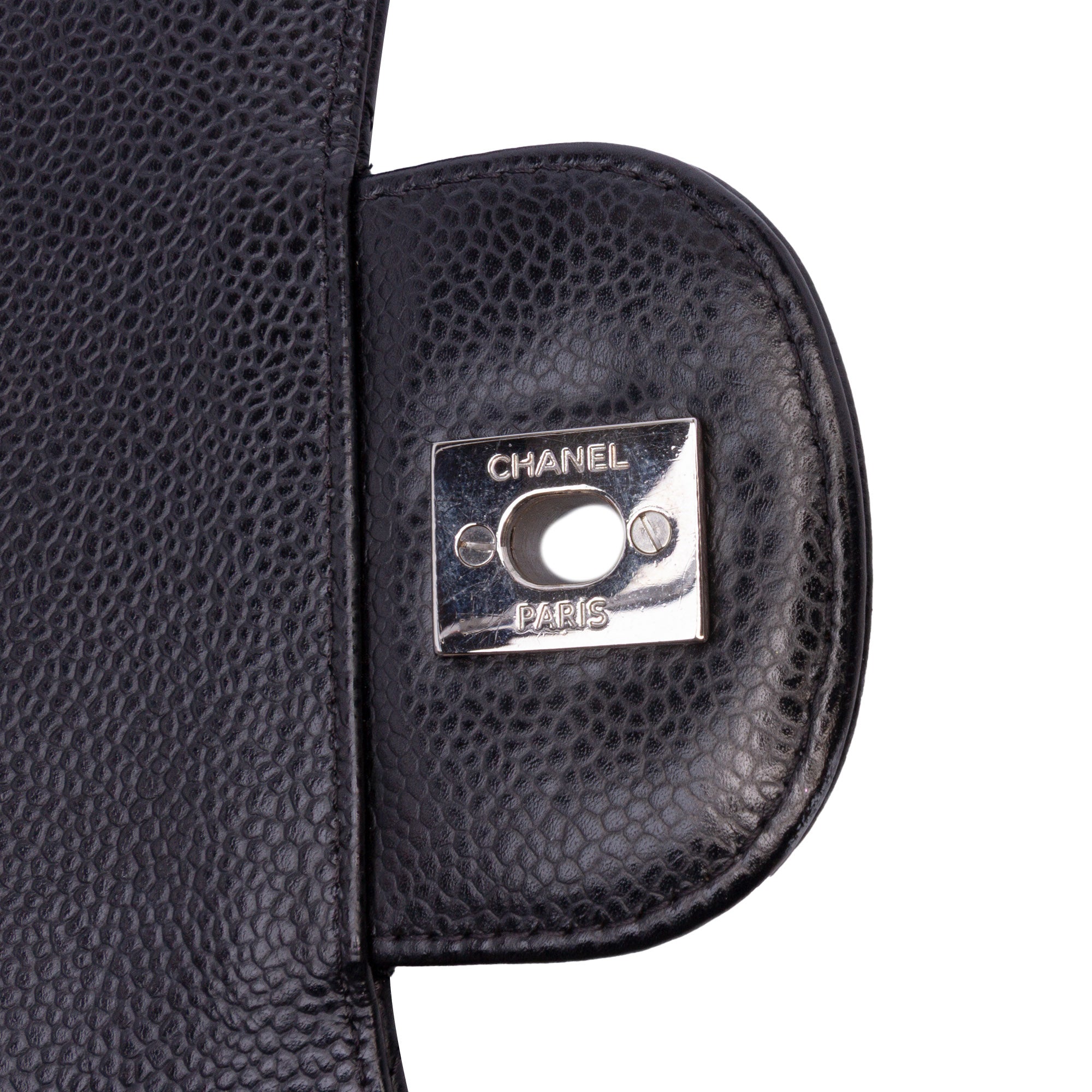 This shoulder bag features a quilted caviar leather body, leather woven chain link straps, a double top flap with CC turn-lock closure, an exterior back slip pocket, and interior zip and slip pockets. Retail Price: 10200.00