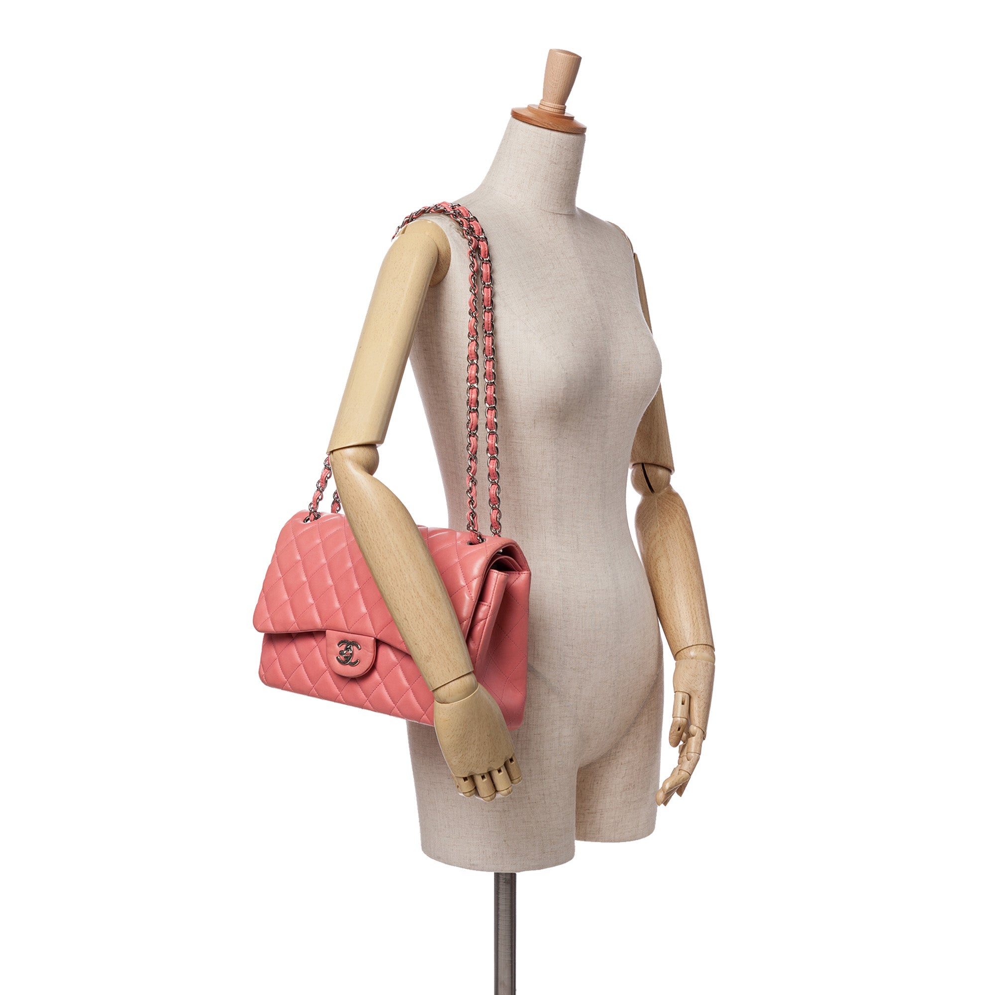 This shoulder bag features a quilted lambskin leather body, leather-woven chain straps, double front flaps with CC turn lock closure, an exterior back slip pocket, and interior zip and slip pockets. Inclusion: authenticity card. Retail Price: 11700.00