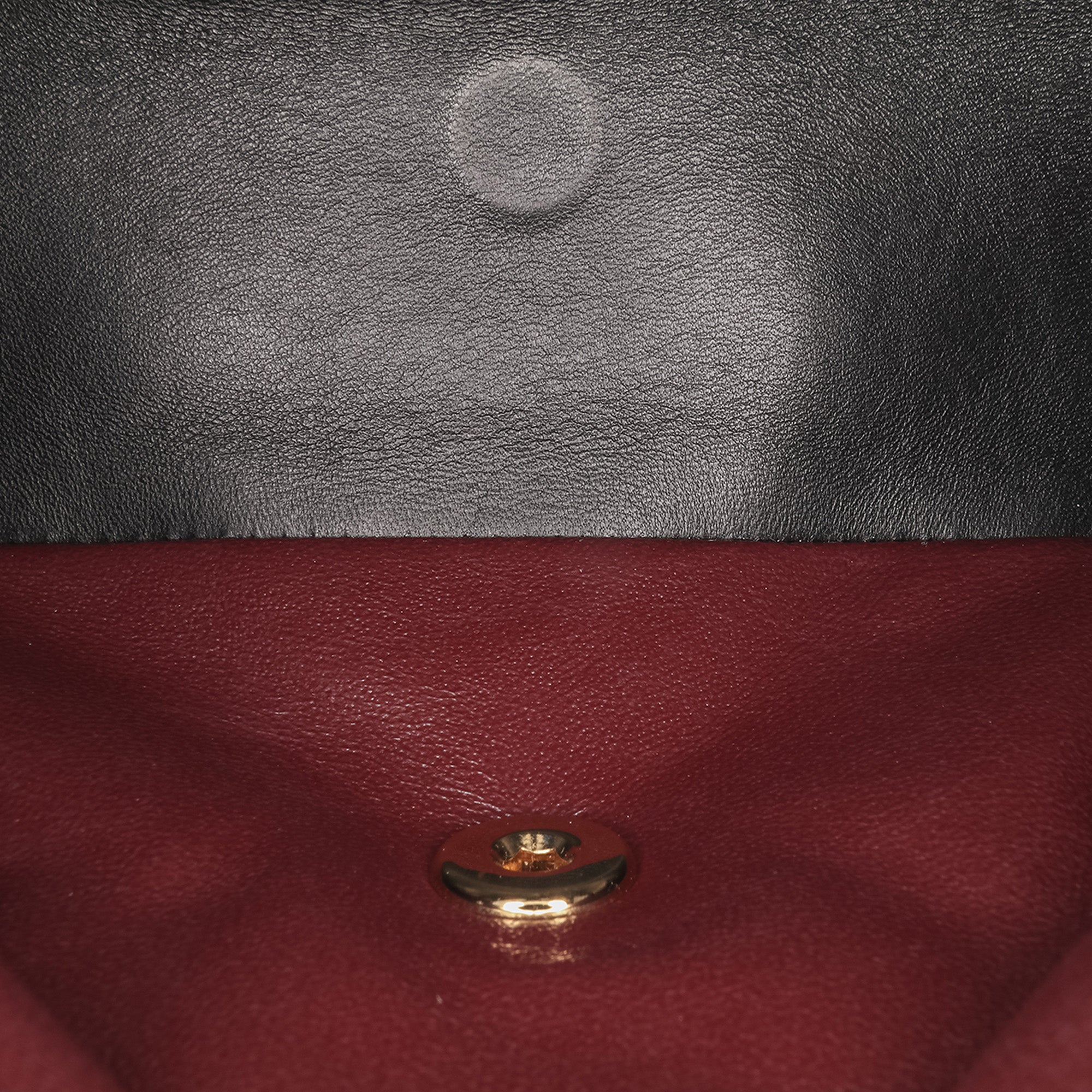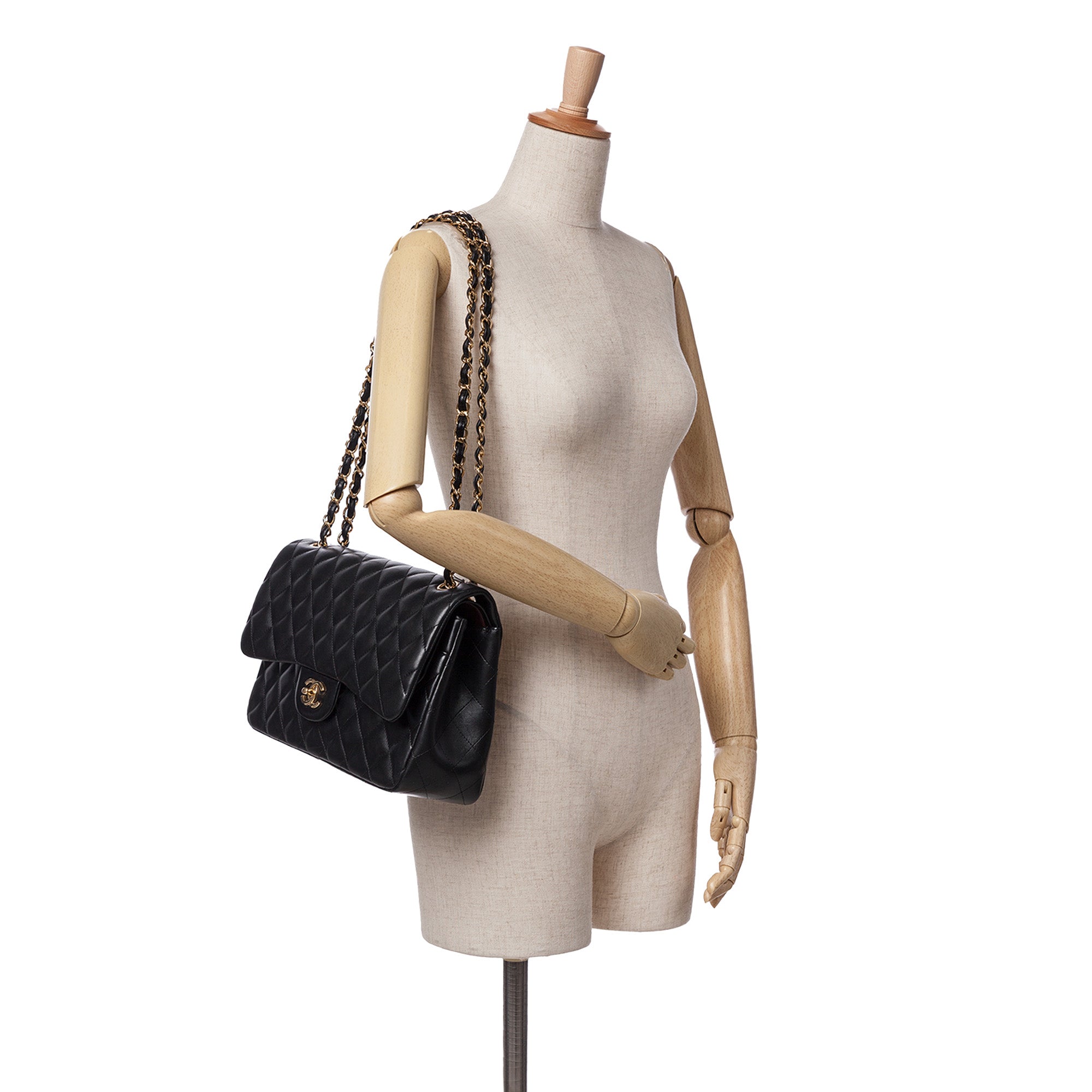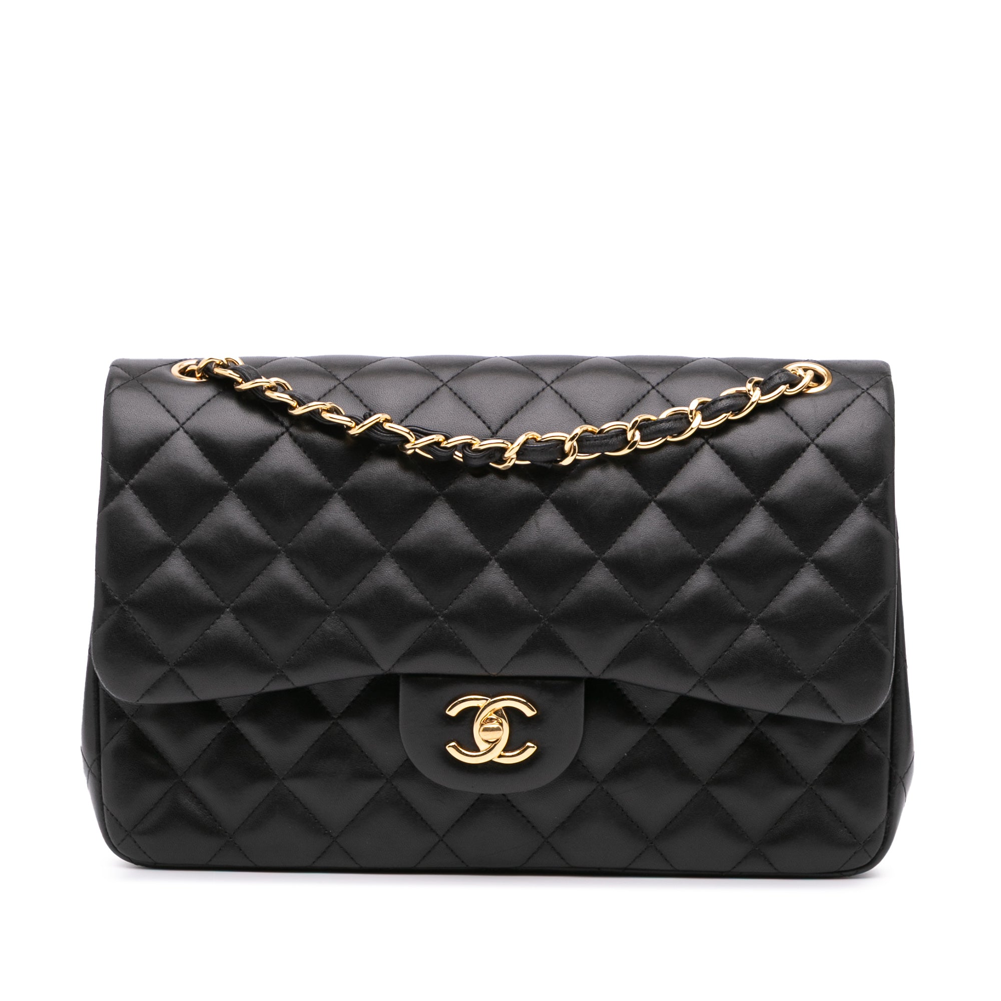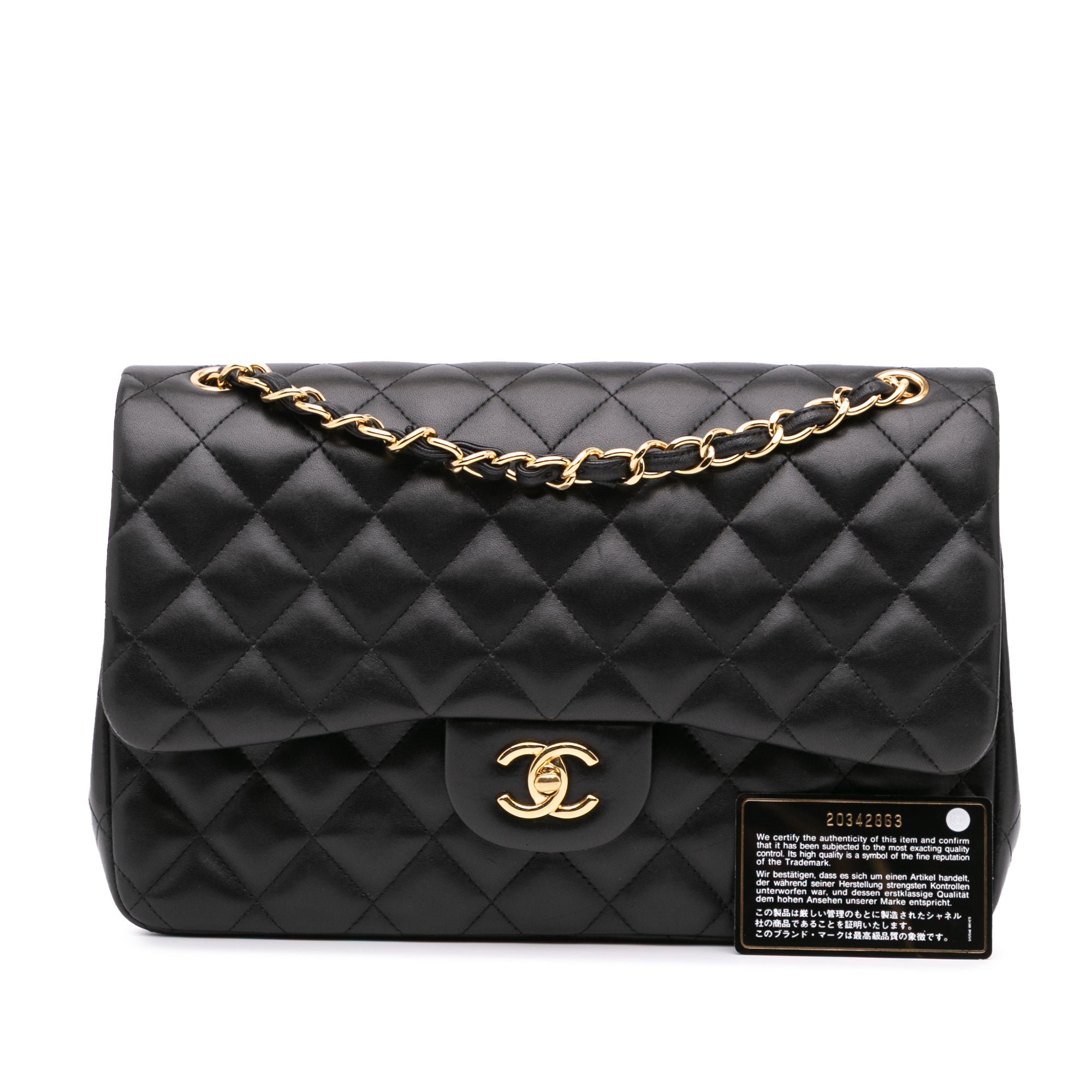 This shoulder bag features a quilted lambskin leather body, leather woven chain straps, double front flaps with CC turn-lock closure, an exterior back slip pocket, and interior zip and slip pockets. Inclusion: authenticity card. Retail Price: 10901.00