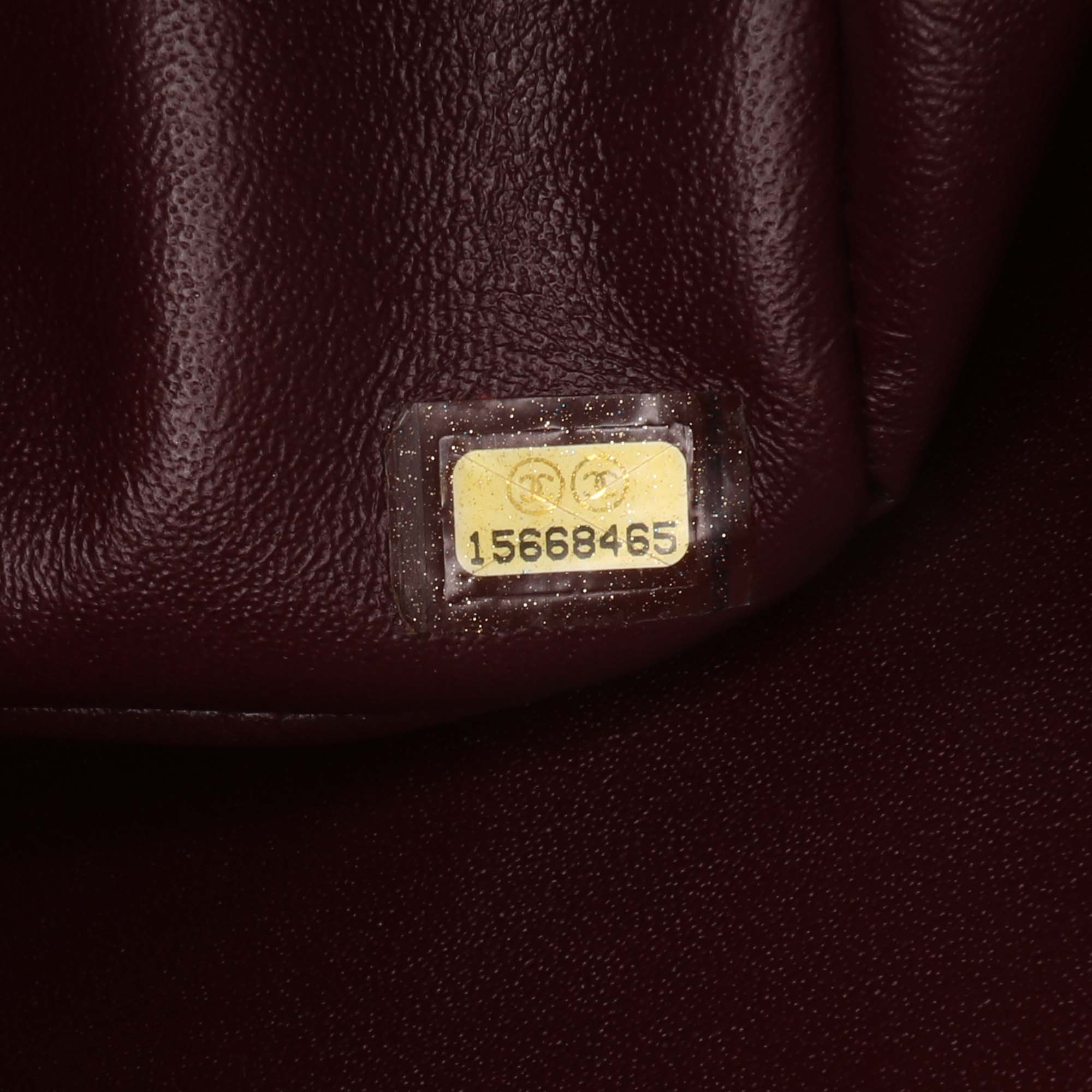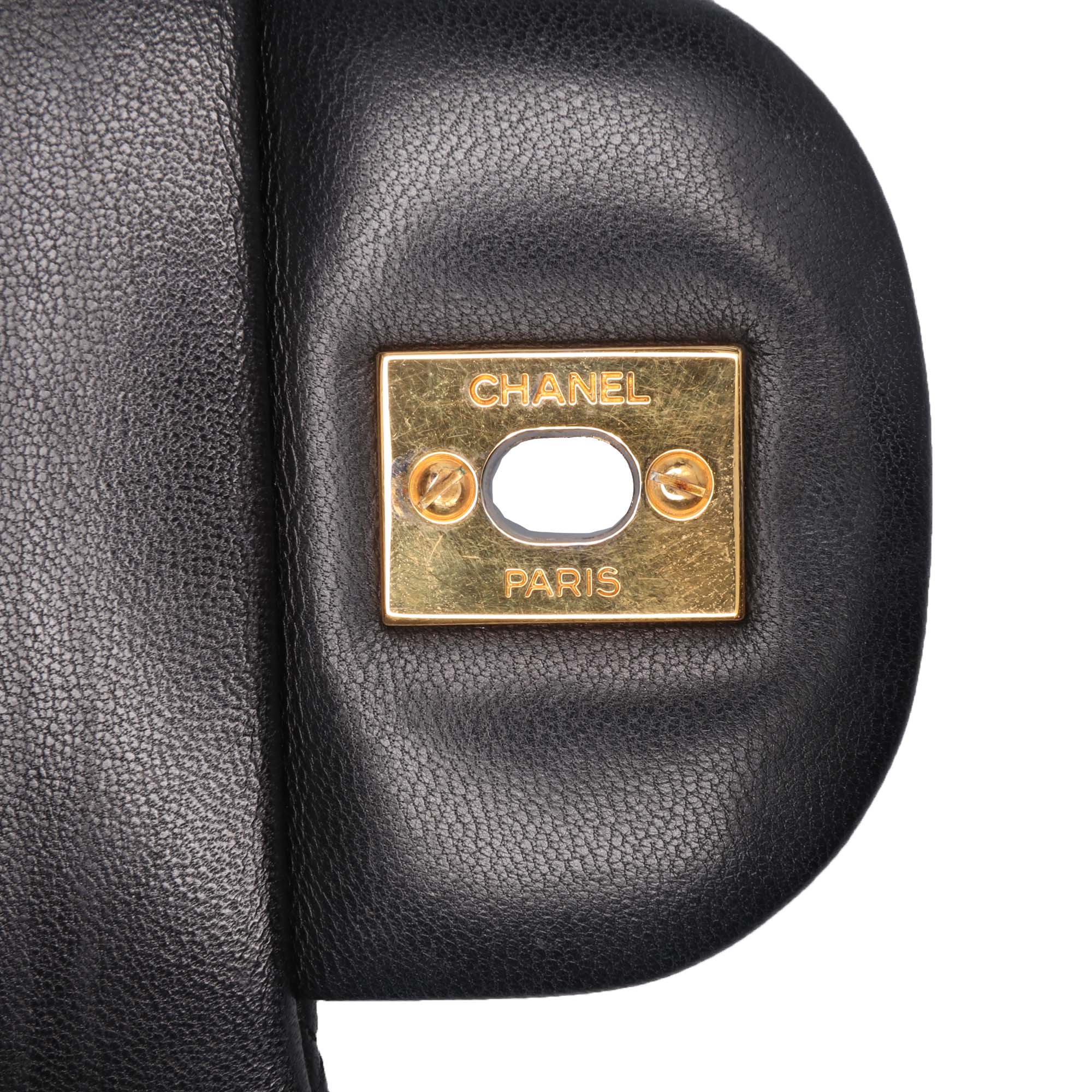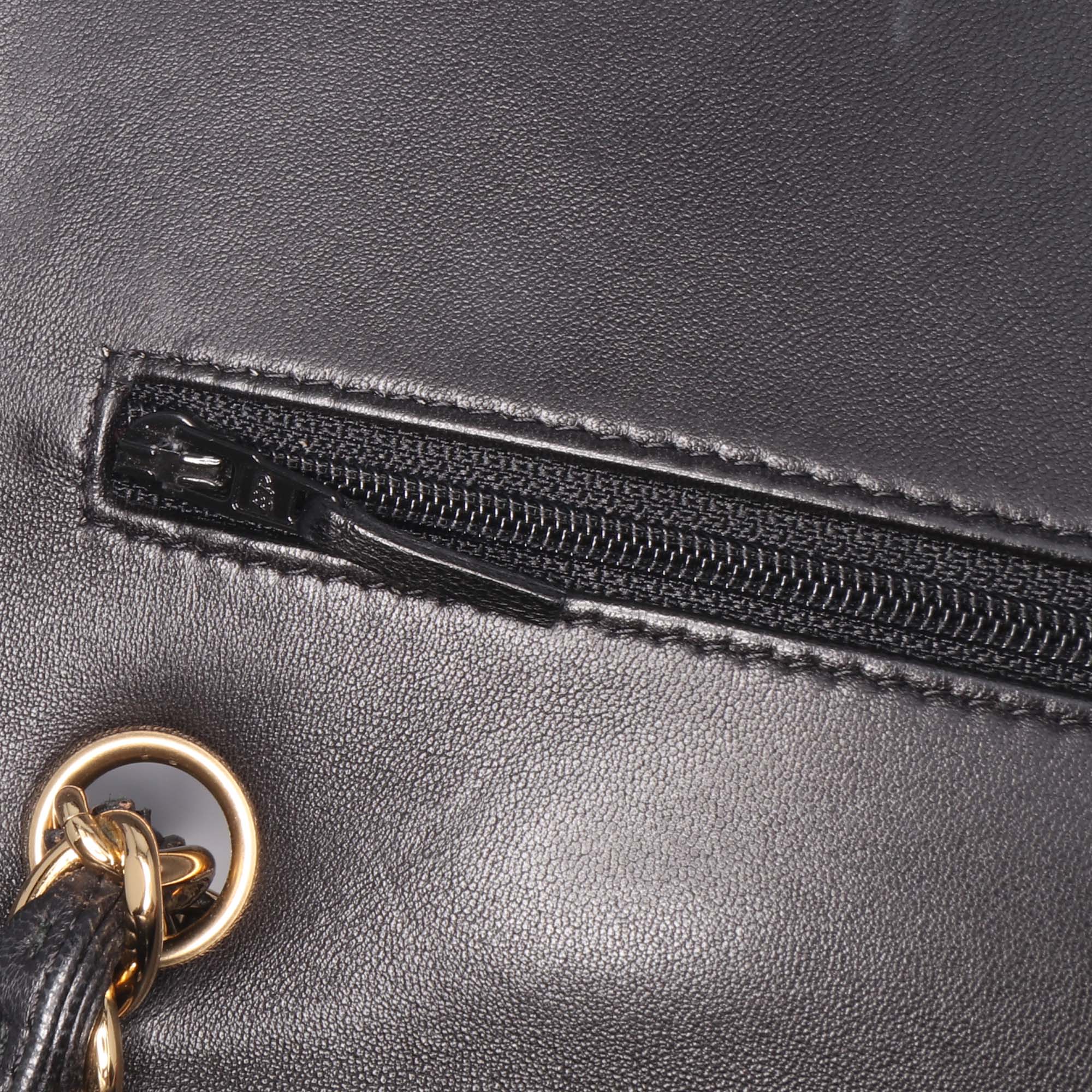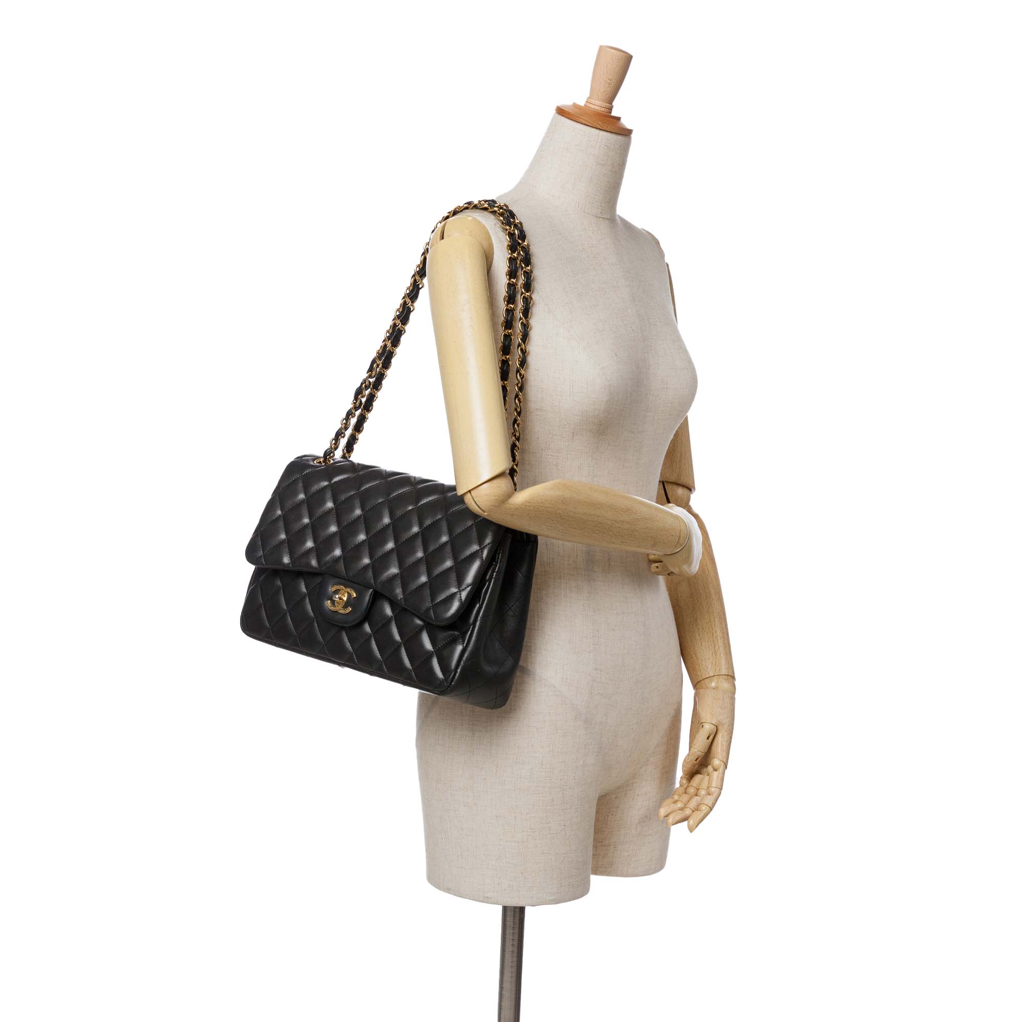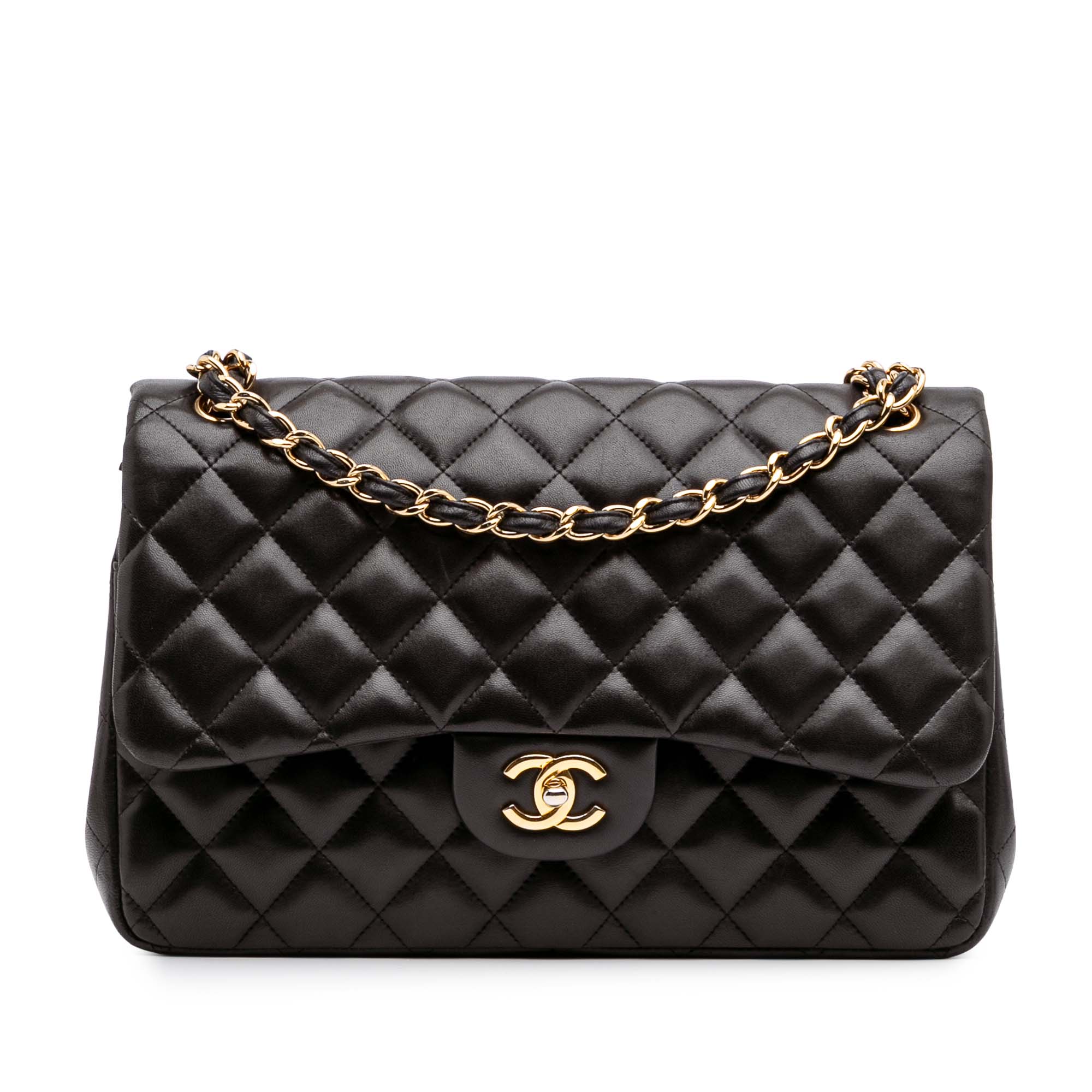 This shoulder bag features a quilted lambskin leather body, leather woven chain straps, double front flaps with CC turn-lock closure, an exterior back slip pocket, and interior zip and slip pockets. Retail Price: 11200.00