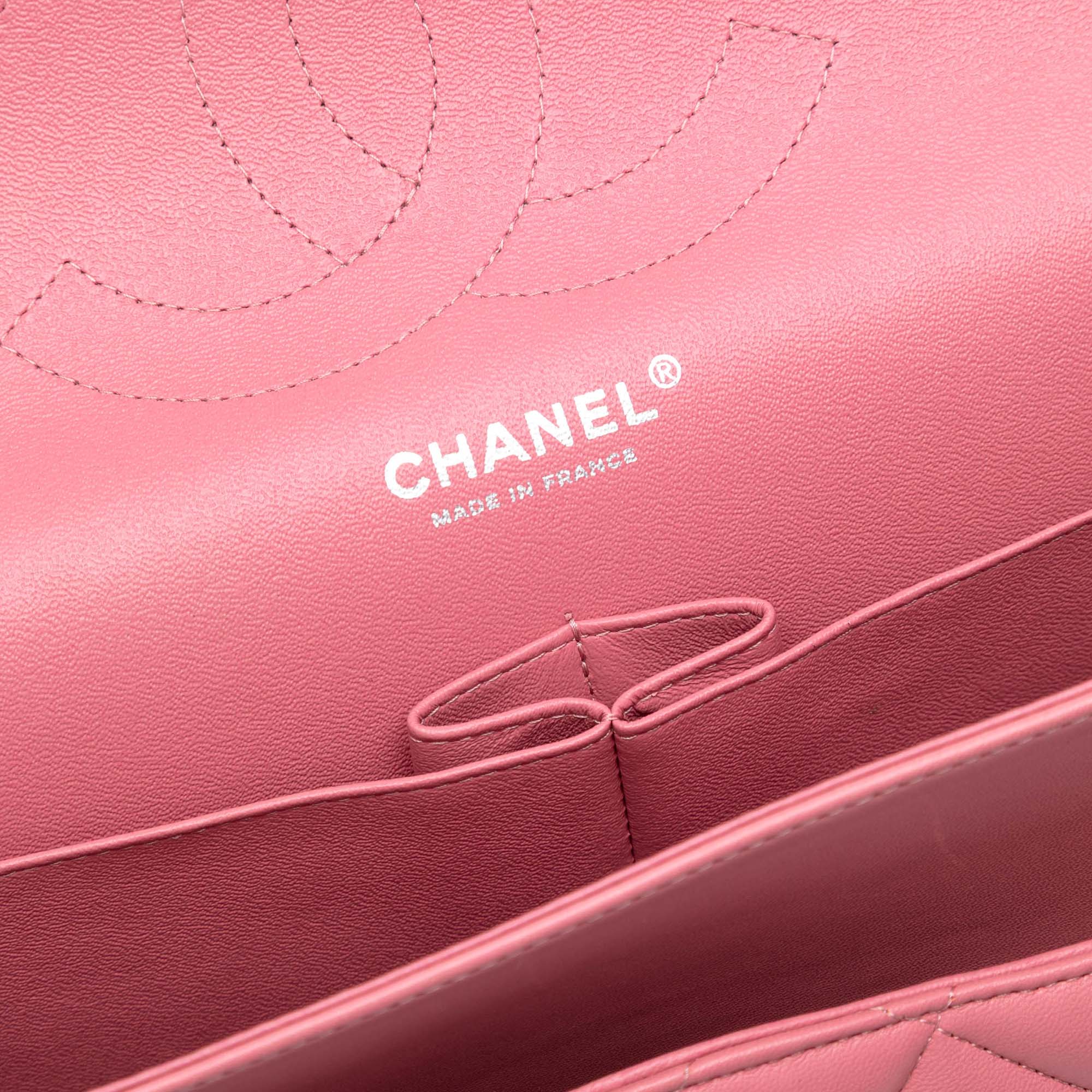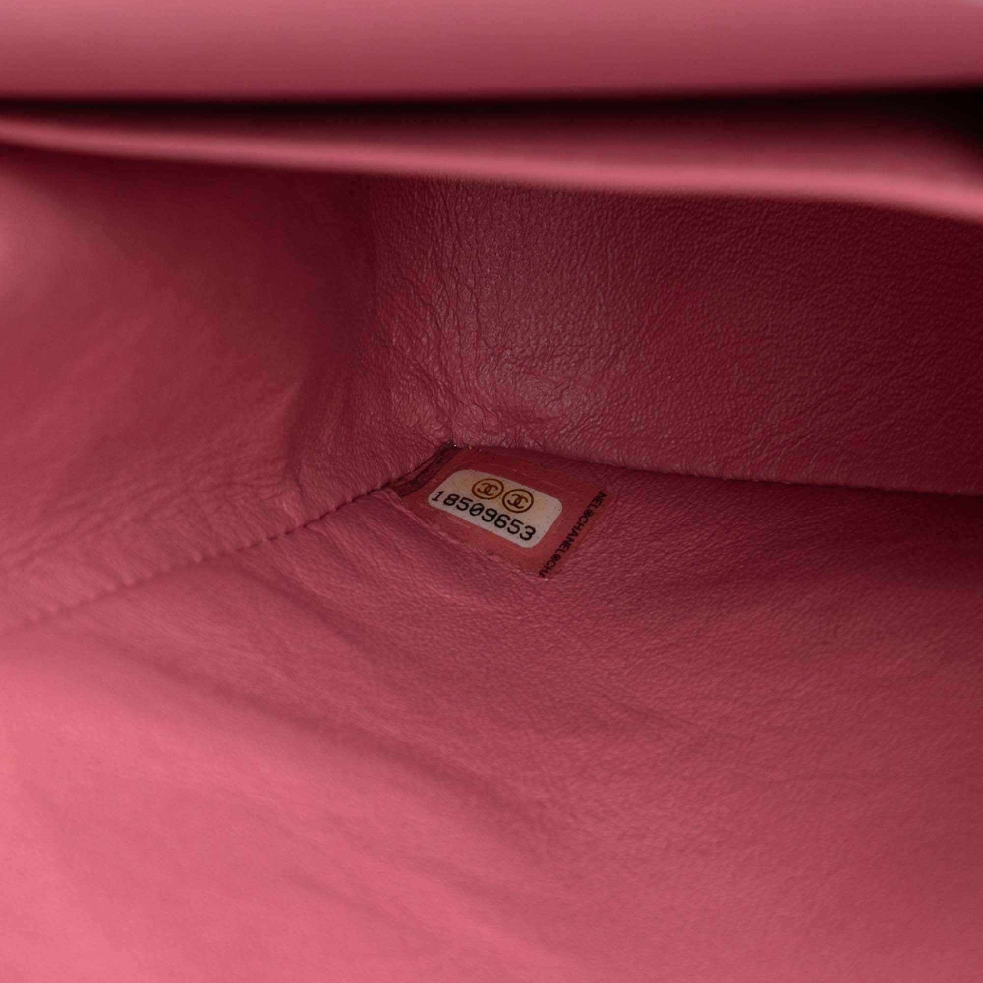 This shoulder bag features a quilted lambskin leather body, leather-woven chain straps, double front flaps with CC turnlock closure, an exterior back slip pocket, and interior slip pockets. Retail Price: 11700.00