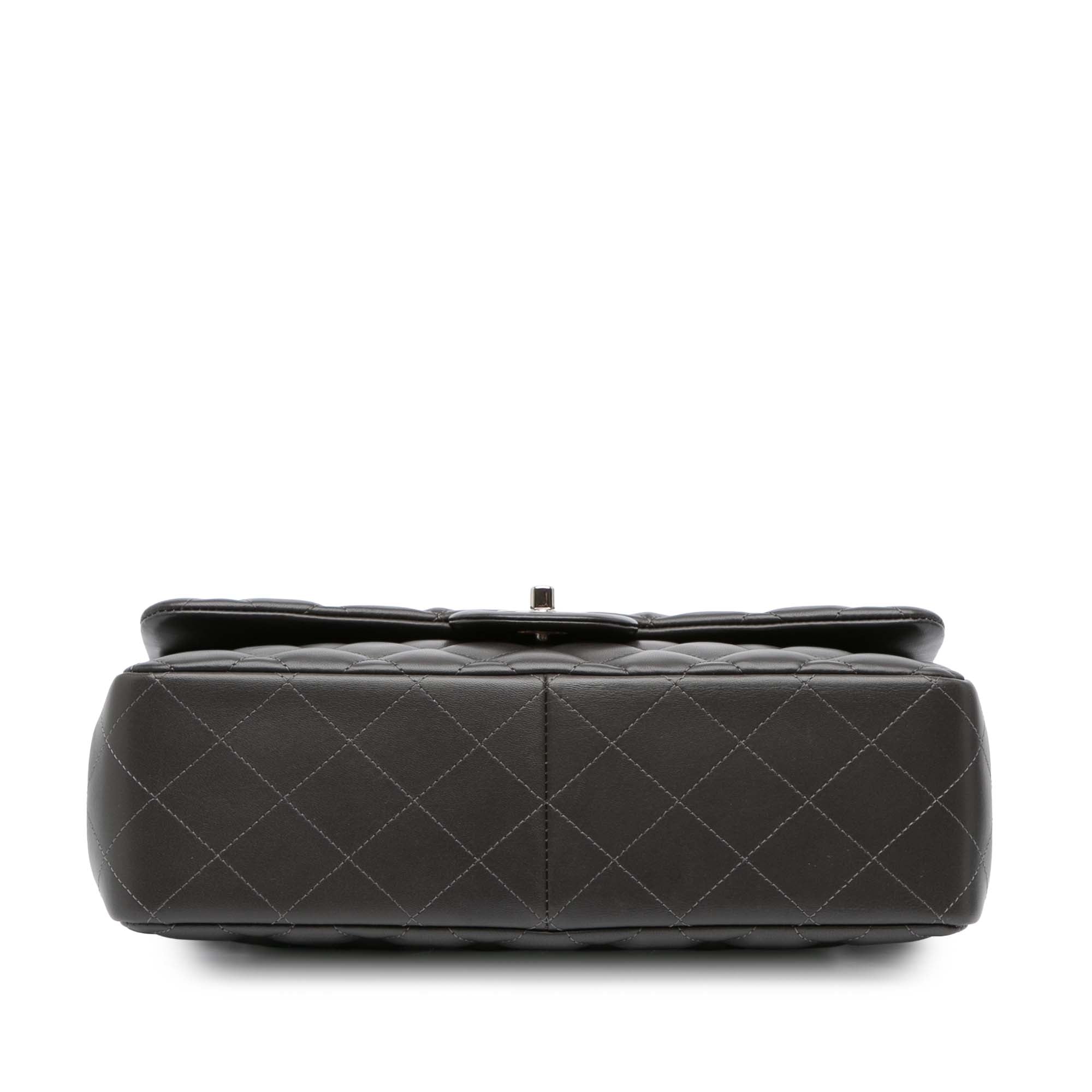 This shoulder bag features a quilted lambskin leather body, leather-woven chain straps, double front flaps with CC turn-lock closure, an exterior back slip pocket, and interior zip and slip pockets. Retail Price: 11431.00