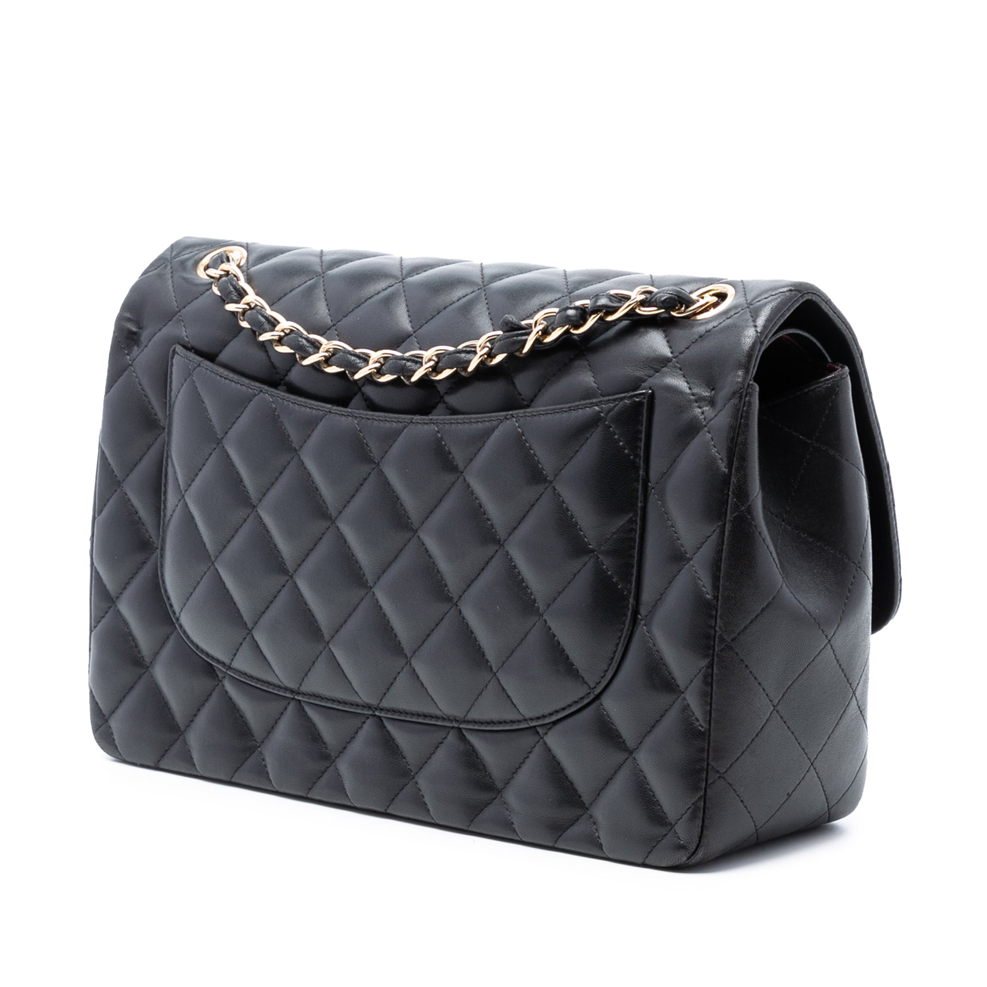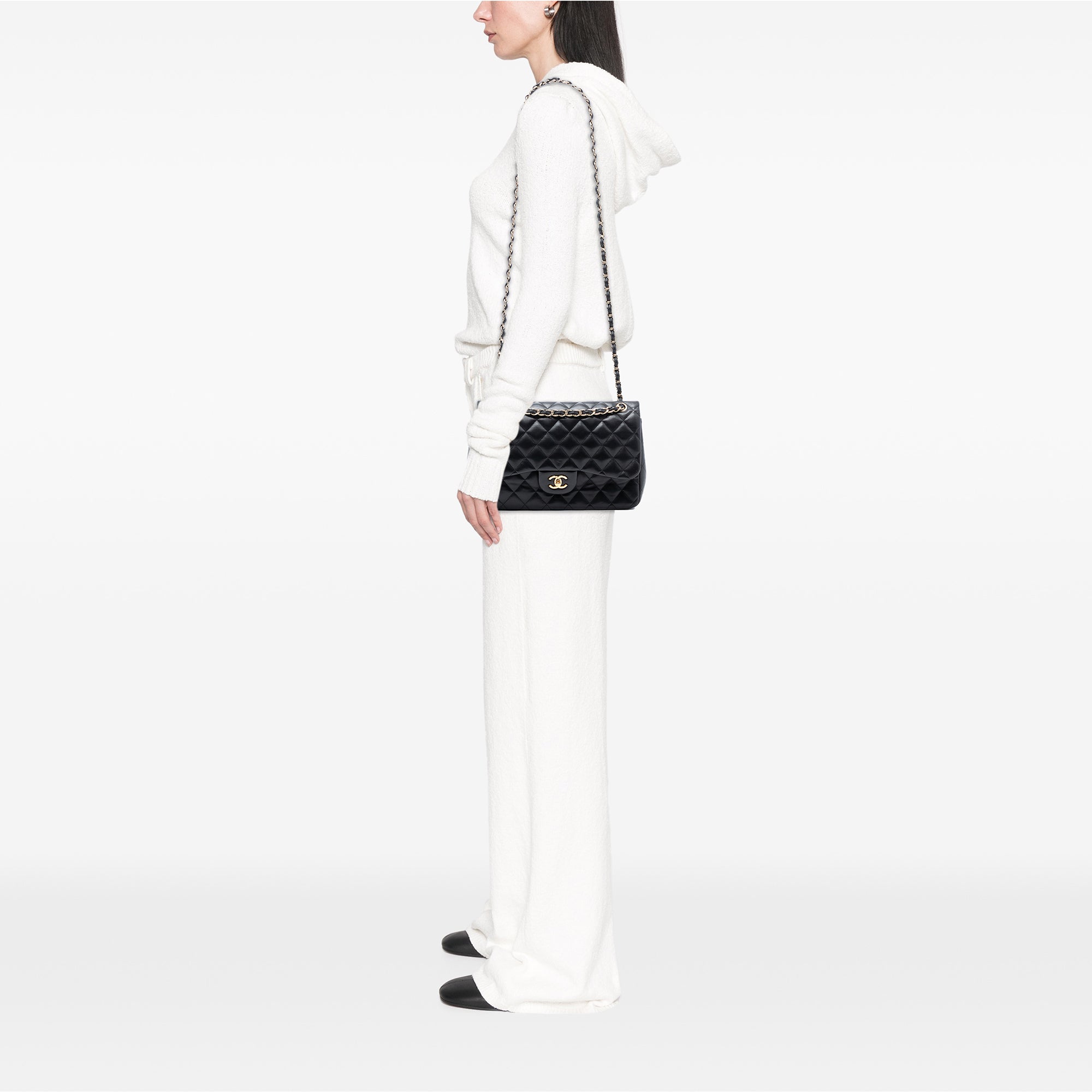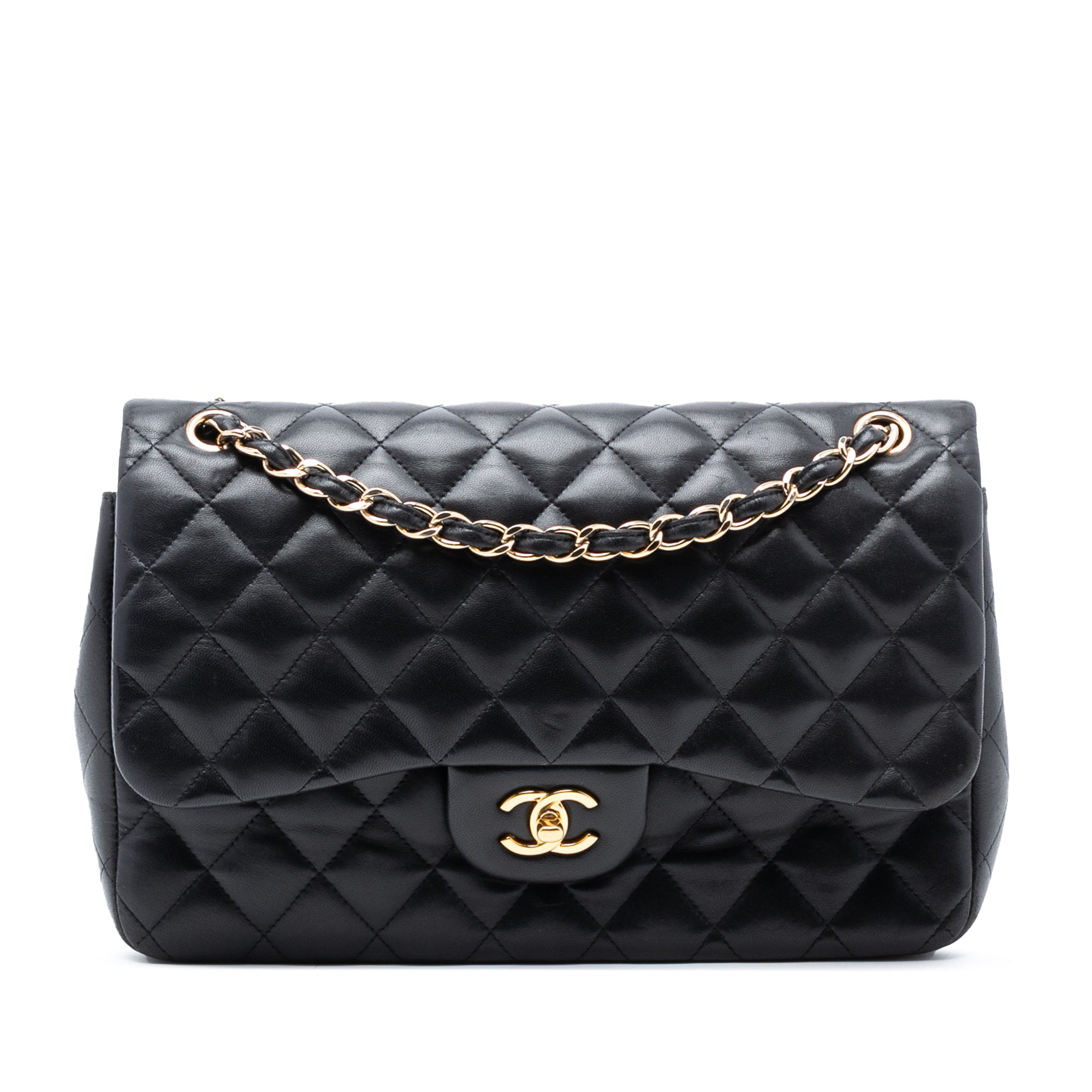 This shoulder bag features a quilted lambskin leather body, leather woven chain-link straps, double front flaps with CC turn-lock closure, an exterior back slip pocket, and interior zip and slip pockets. Retail Price: 11218.00
