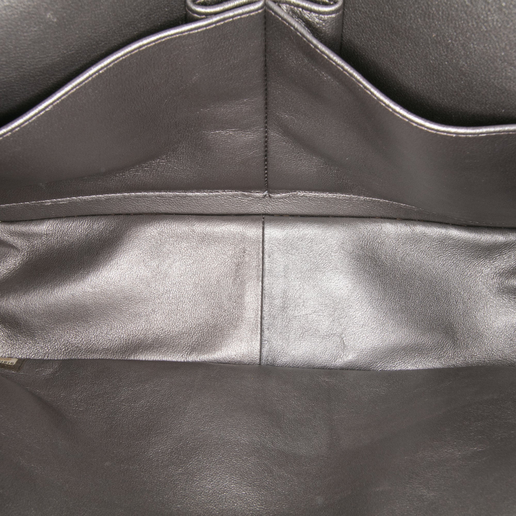This shoulder bag features a quilted lambskin leather body, leather-woven chain straps, double front flaps with CC turn-lock closure, an exterior back slip pocket, and interior zip and slip pockets. Retail Price: 11216.00