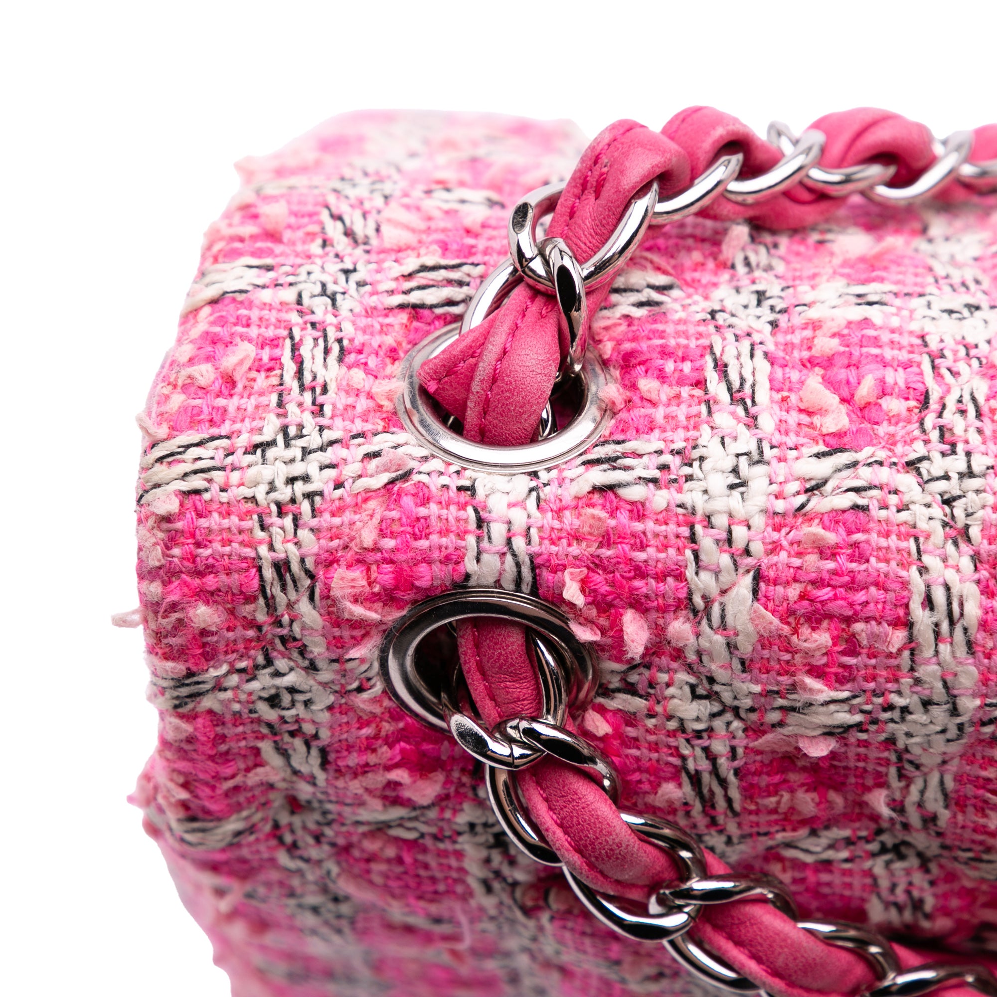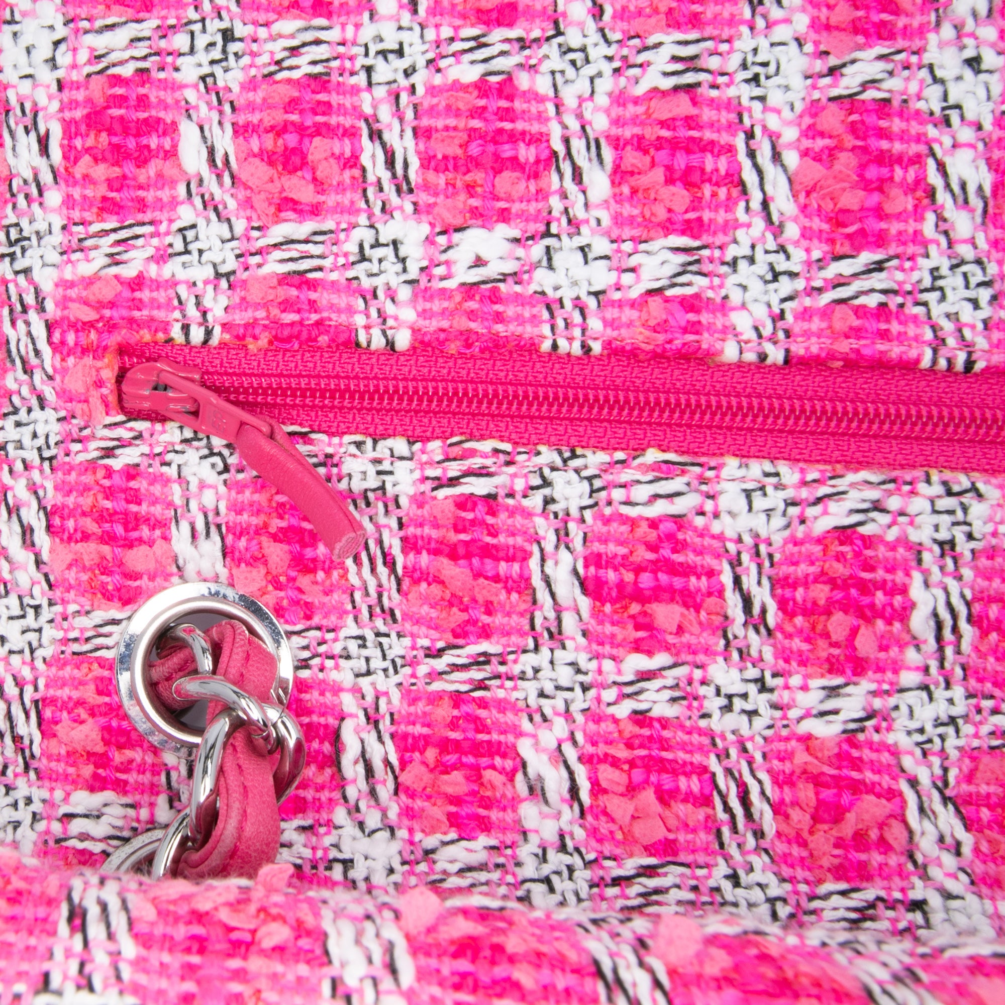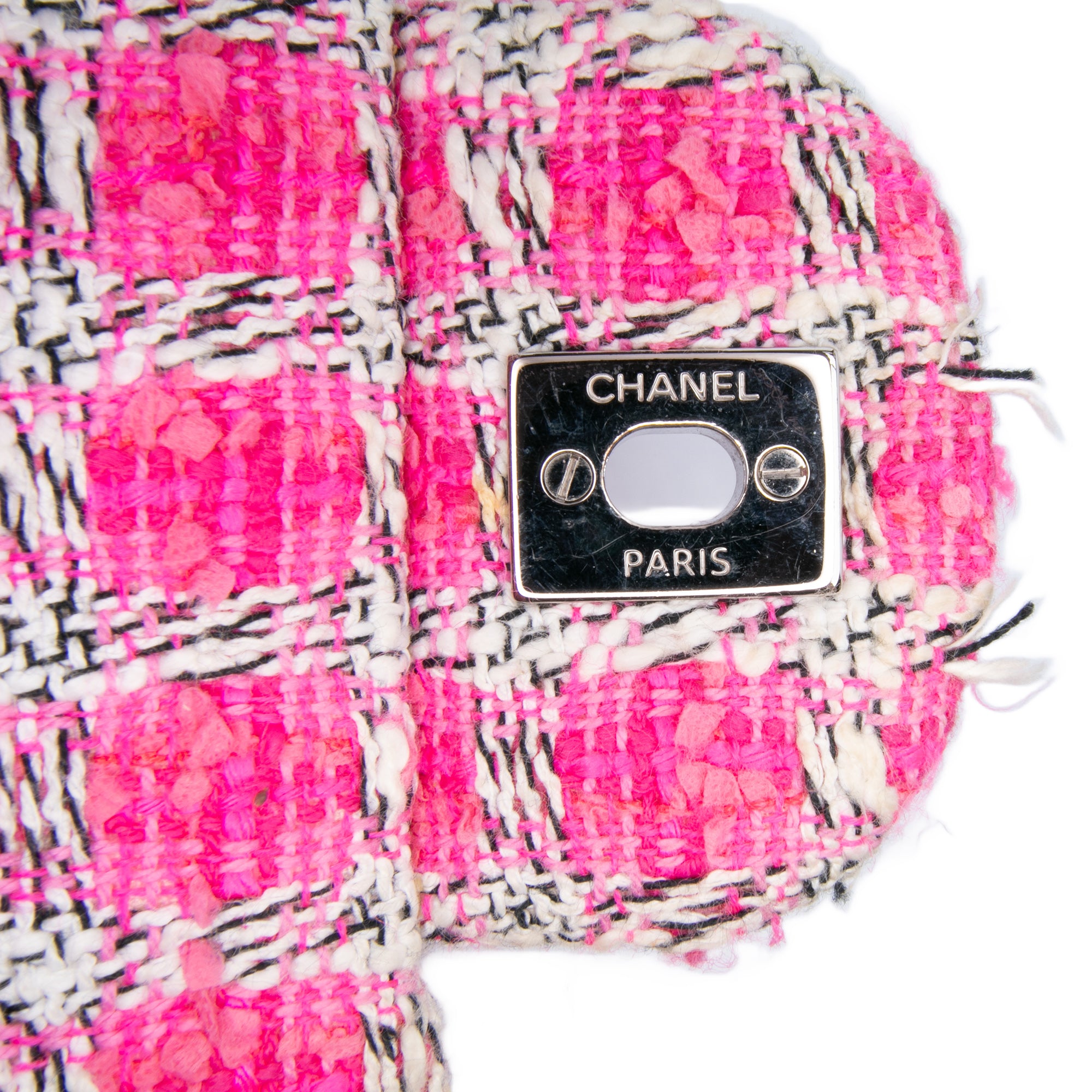 The Jumbo Classic Flap features a quilted tweed body, leather-woven chain straps, double front flaps with interlocking Cs and twist lock closure, an exterior back slip pocket, and interior zip and slip pockets. Inclusion: authenticity card. Retail Price: 6400.00