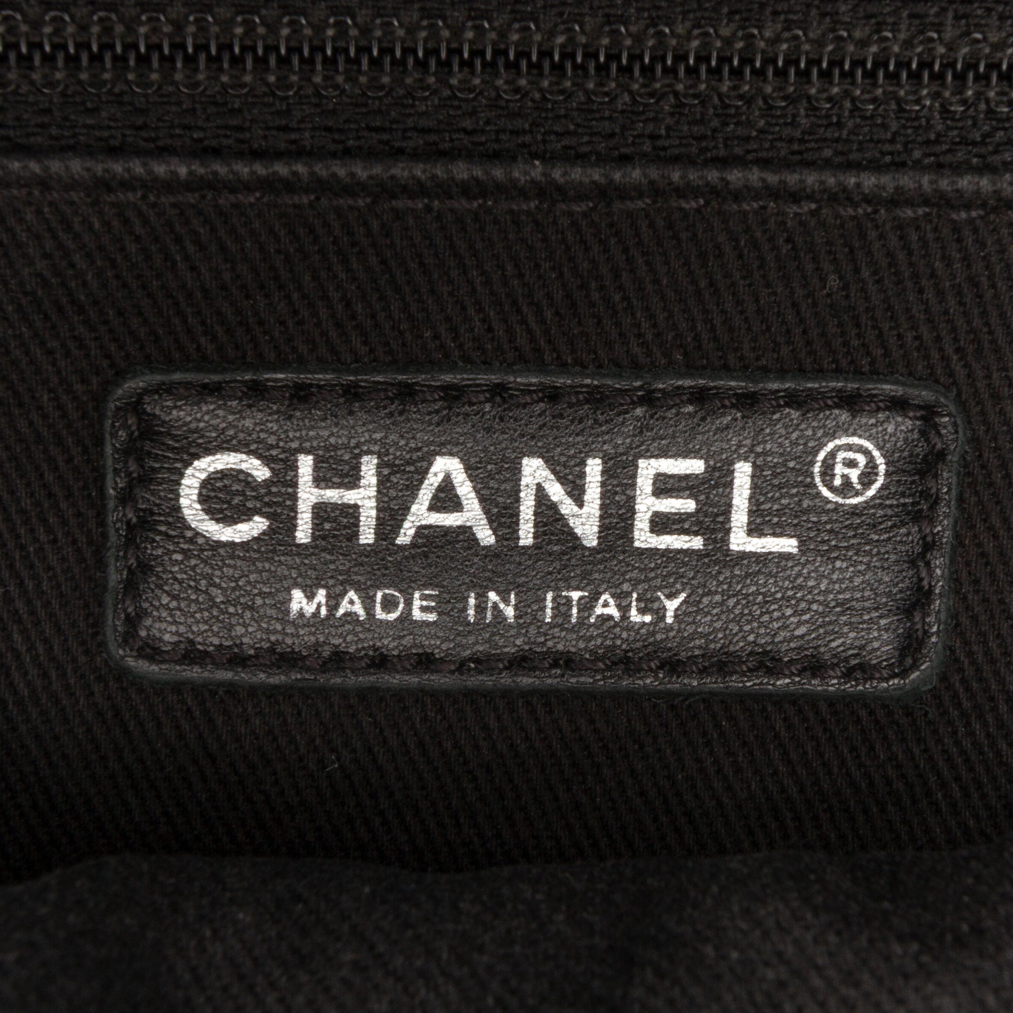 The Easy Flap features an iridescent quilted caviar leather body, a leather woven chain strap with leather guard, a front flap with double Cs and twist lock closure, a top zip closure, and an interior zip pocket. Retail Price: 3400.00