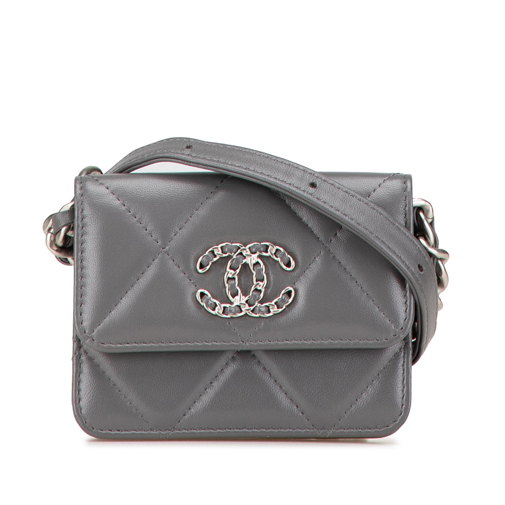 Chanel Lambskin 19 Flap Coin Purse With Chain