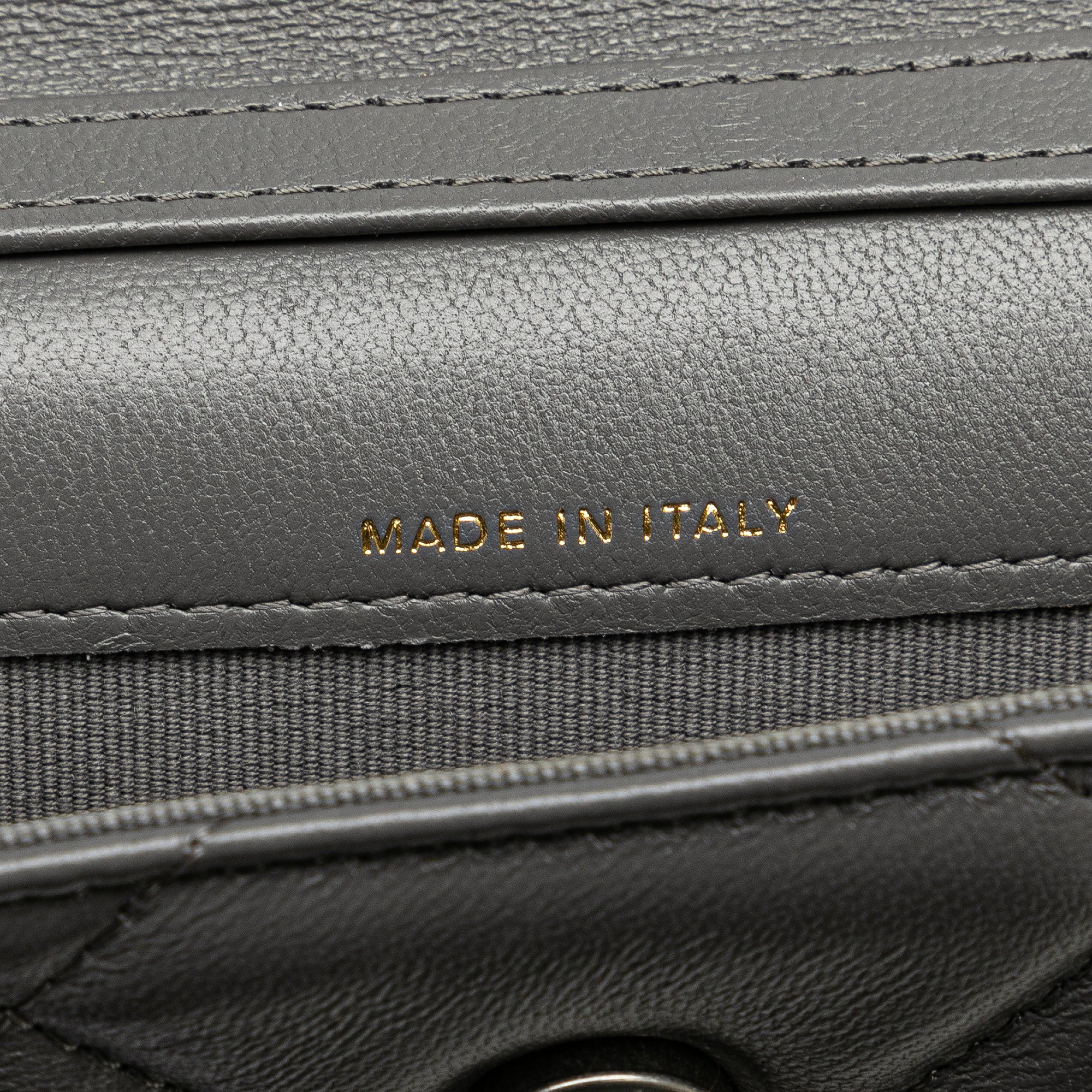 This crossbody bag features a quilted lambskin leather body, a leather-woven chain strap with leather shoulder guard, and a flap with snap button closure. Inclusion: Dust bag, box. Retail Price: 3120.00