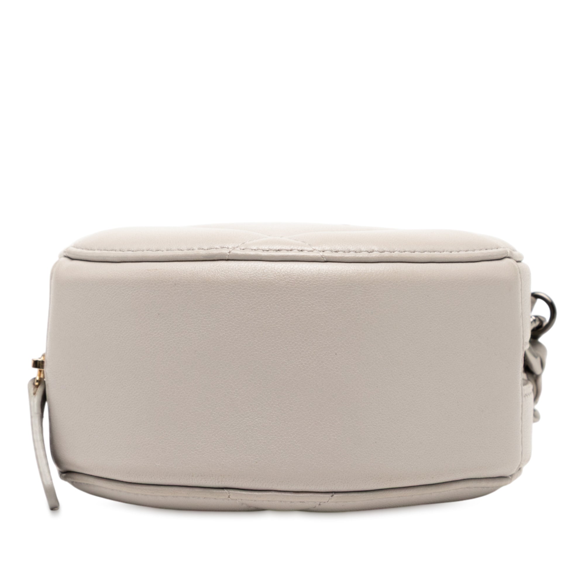 This satchel features a quilted lambskin leather body, a gold-tone curb chain-link handle, a leather-woven chain link strap, a top zip closure, and interior slip pocket. Retail Price: 3445.00