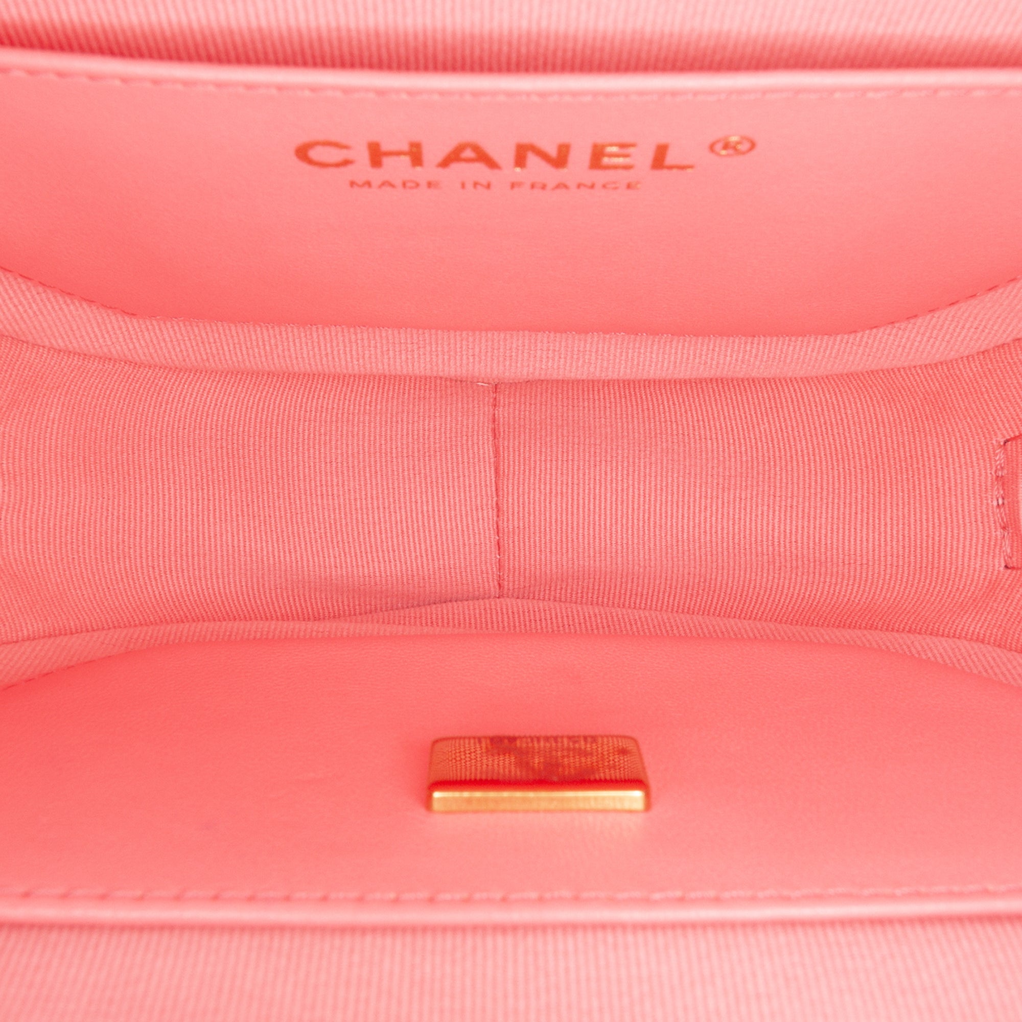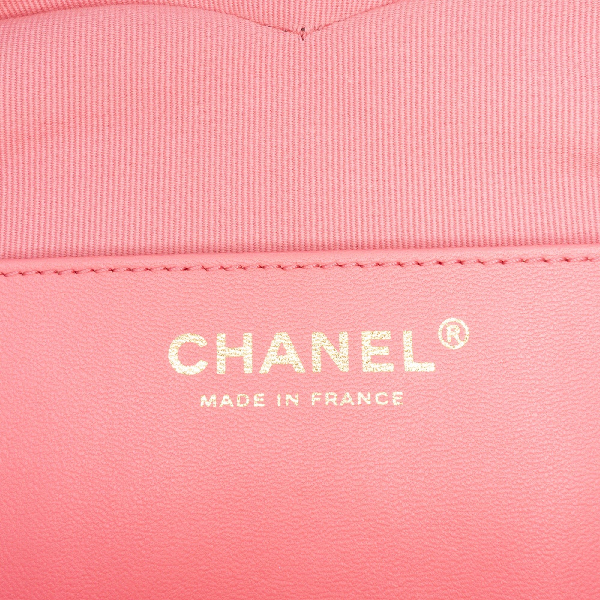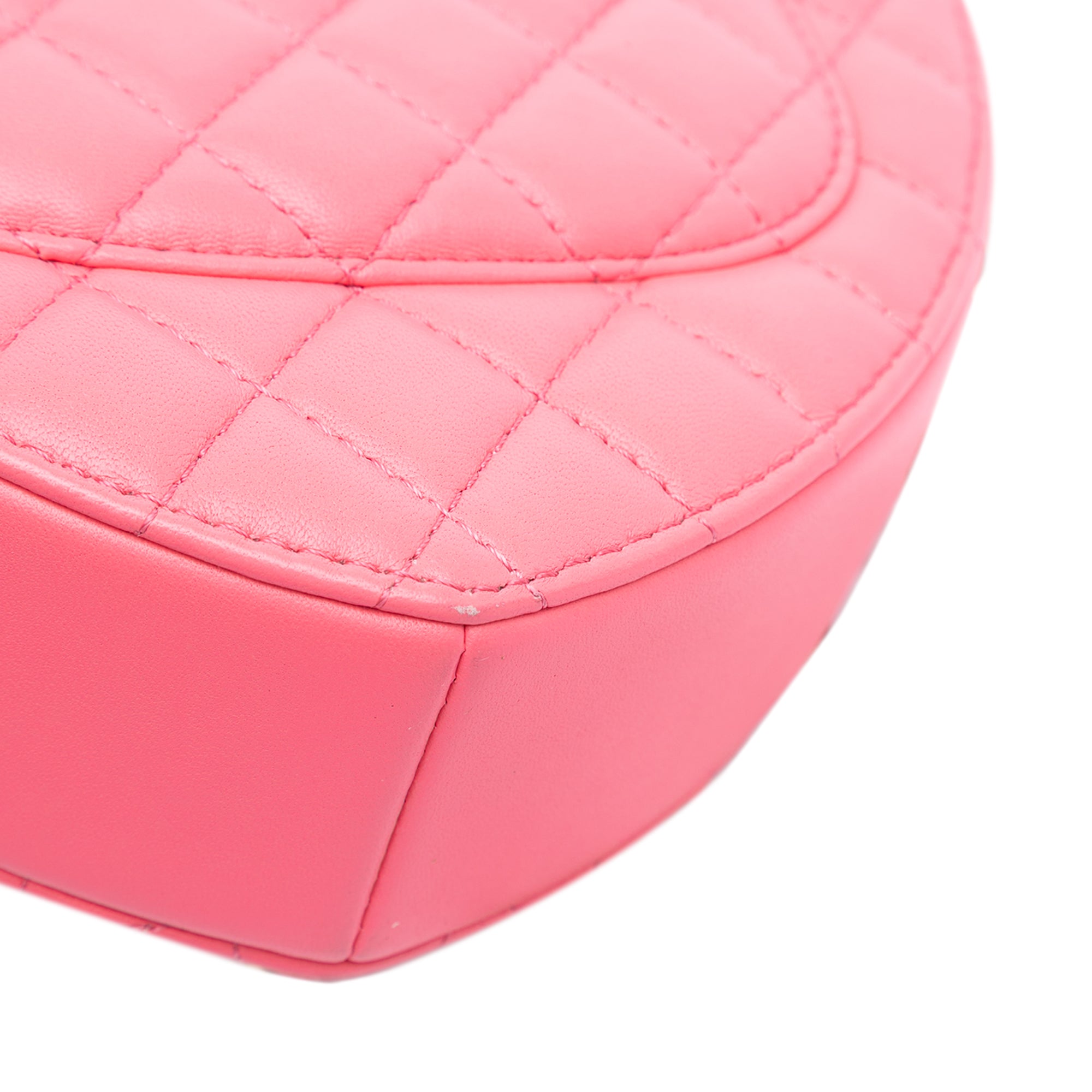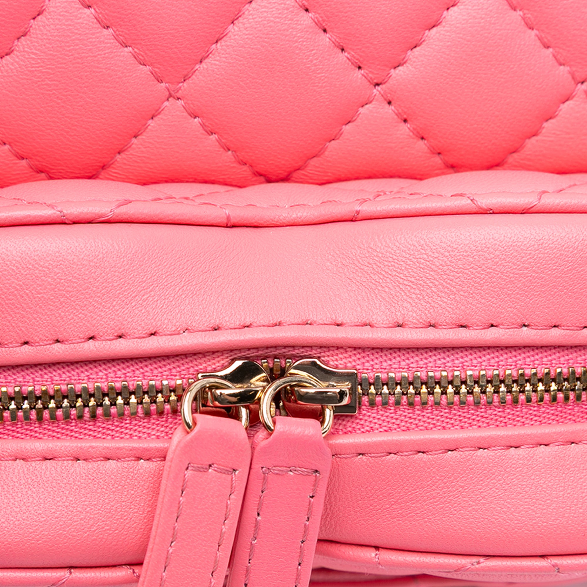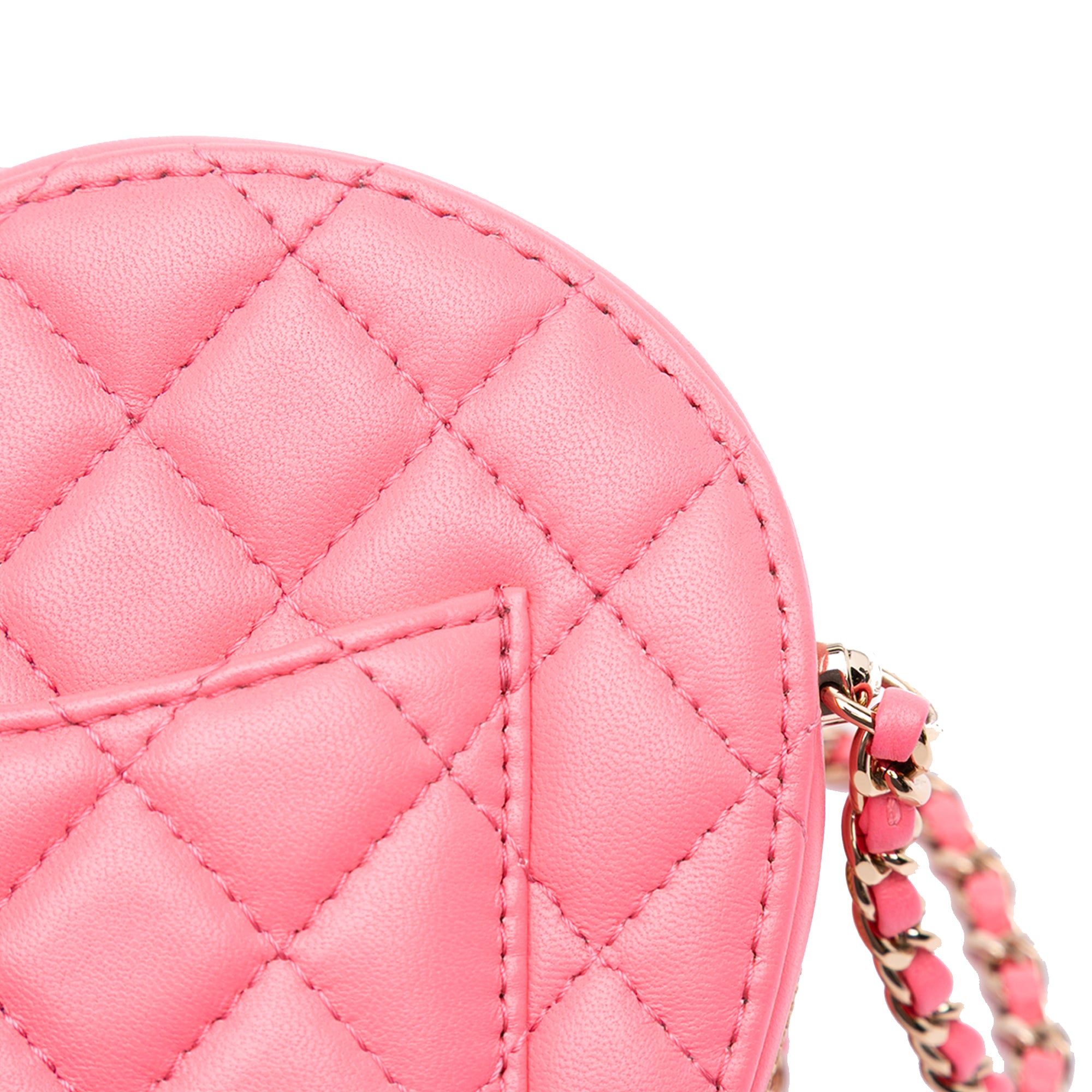 This crossbody bag features a quilted lambskin leather body, a leather woven chain shoulder strap, a top zip closure, an exterior front flap pocket with CC turn-lock closure, an exterior back slip pocket, and interior slip pockets. Retail Price: 9500.00
