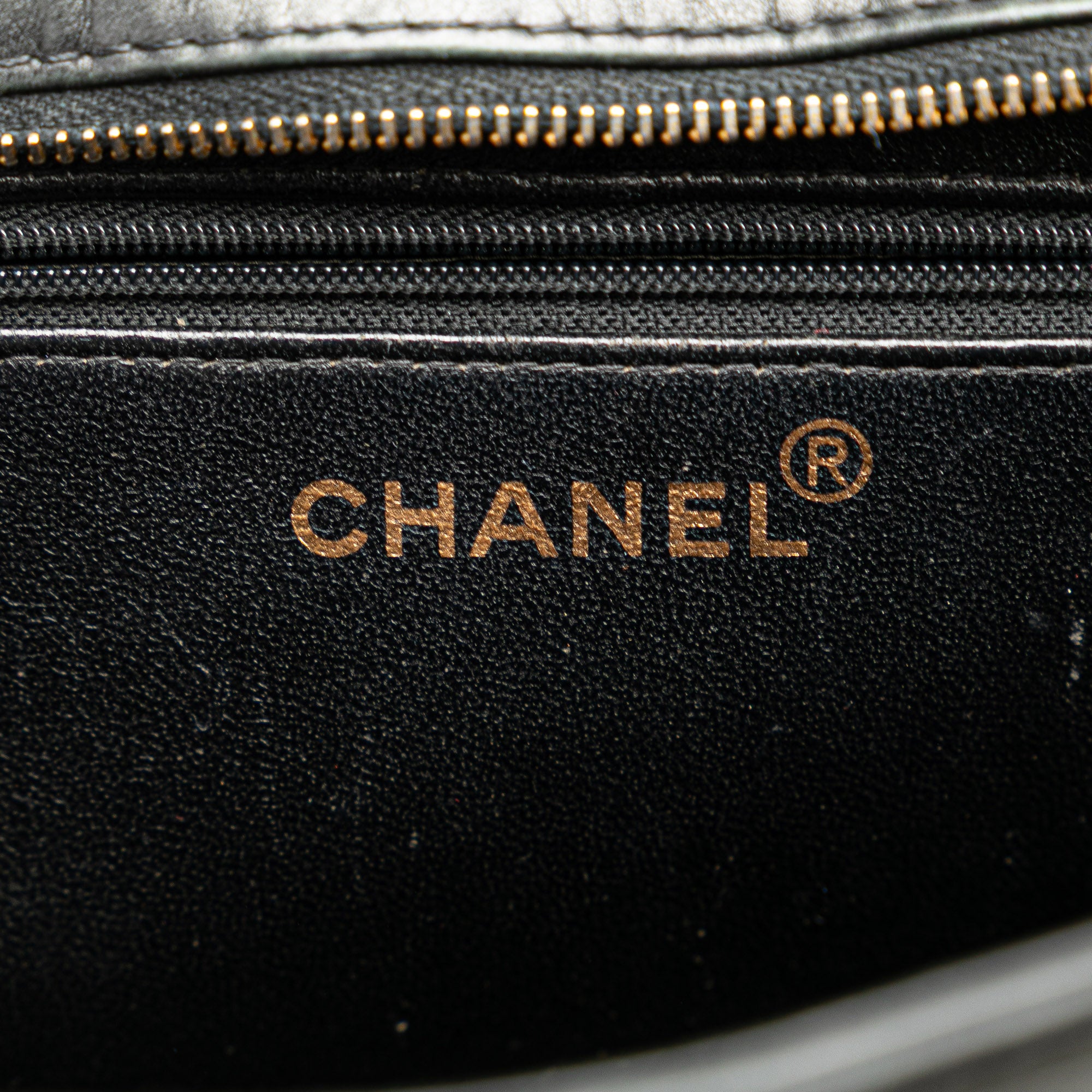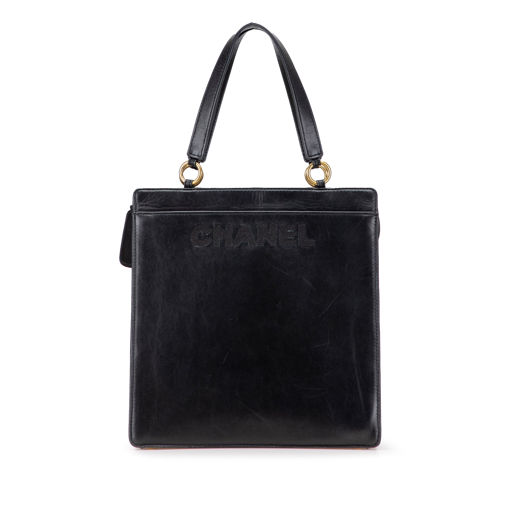 This tote features a lambskin leather body with embroidered logo, flat leather straps, a top zip closure, an exterior slip pocket, and interior zip and slip pockets. Retail Price: 1725.00