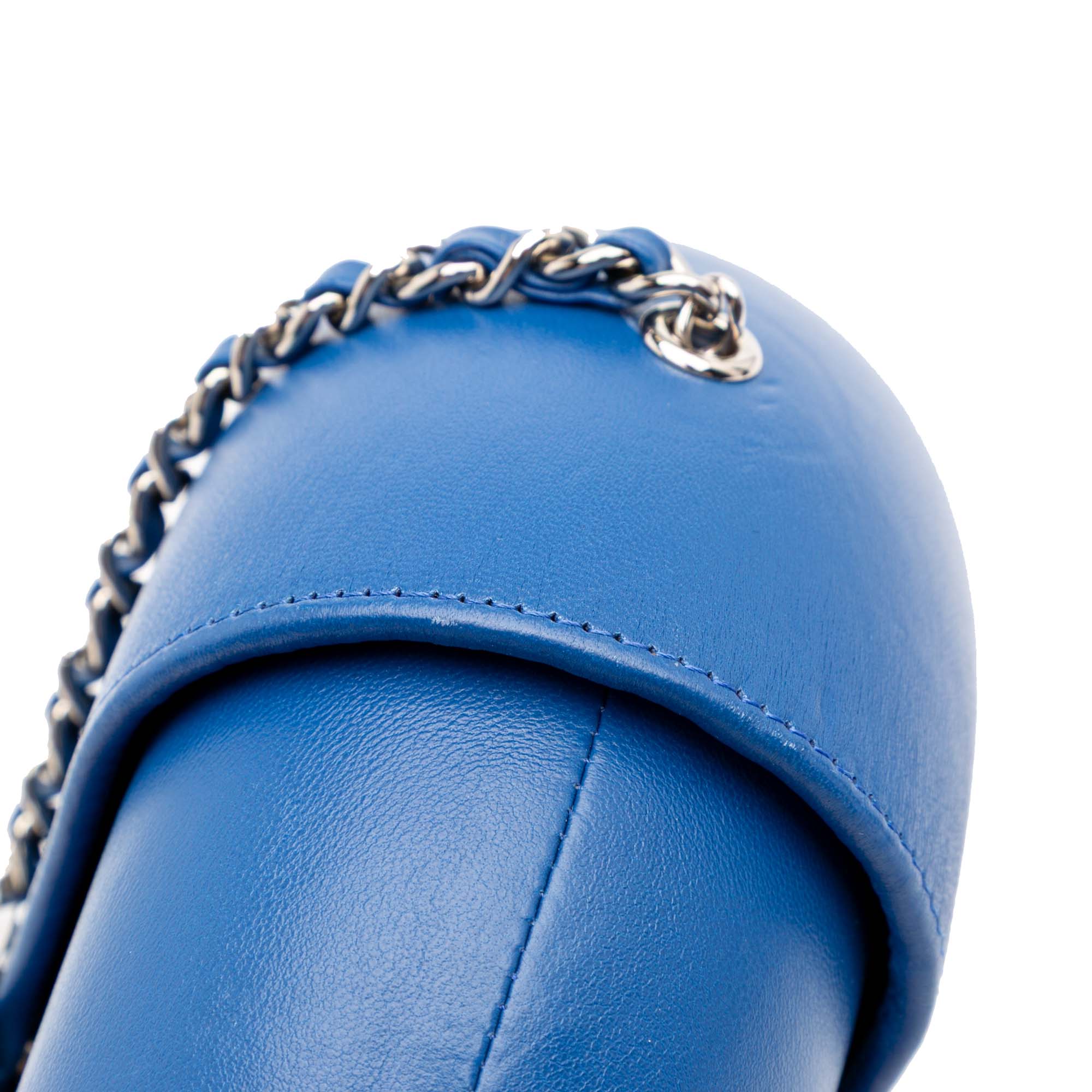 This crossbody bag features a leather body, a leather woven chain link strap, and a top sliding magnetic closure. Retail Price: 3500.00