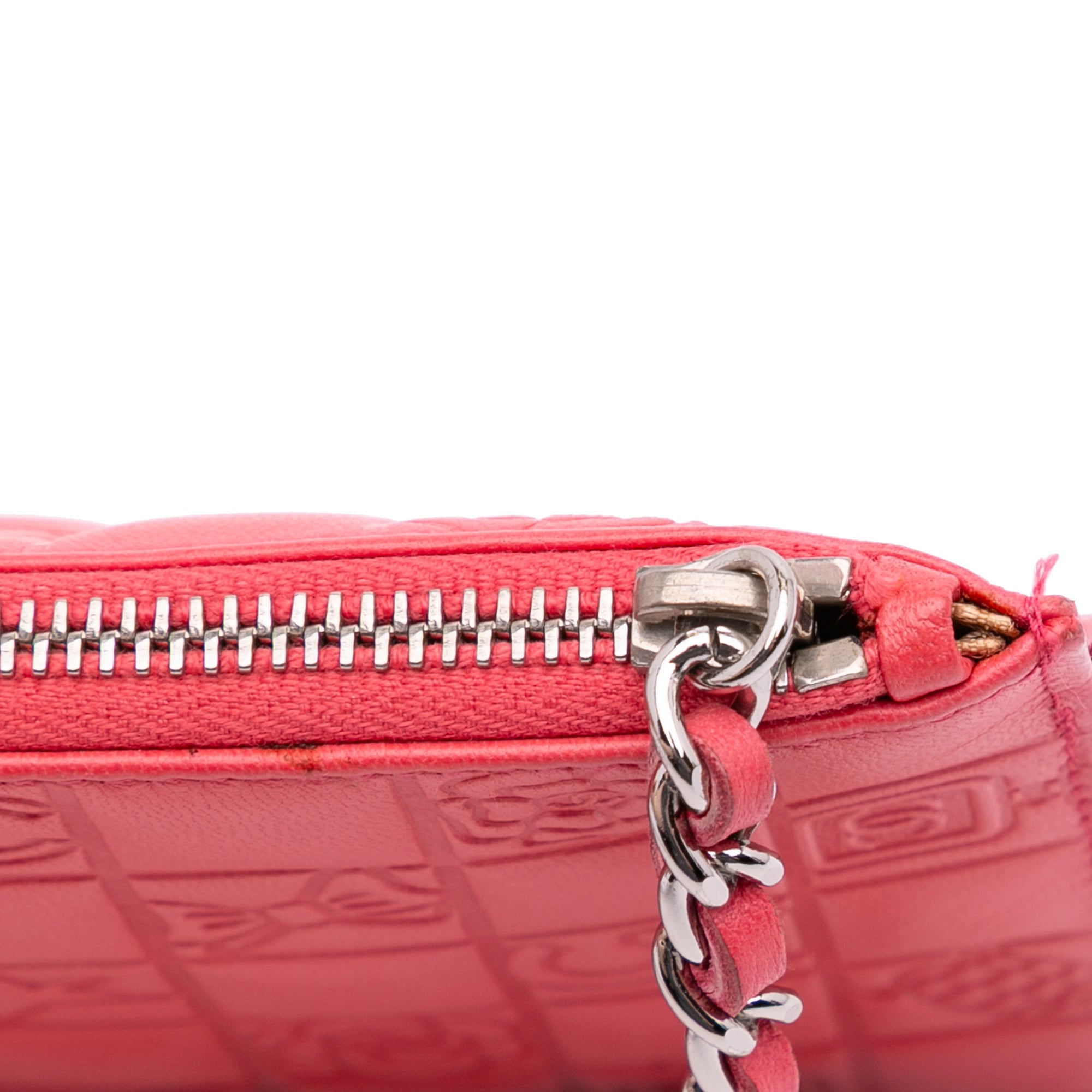The Precious Symbols Pochette features a leather body, a leather woven chain link strap, and a top zip closure. Retail Price: 1195.00