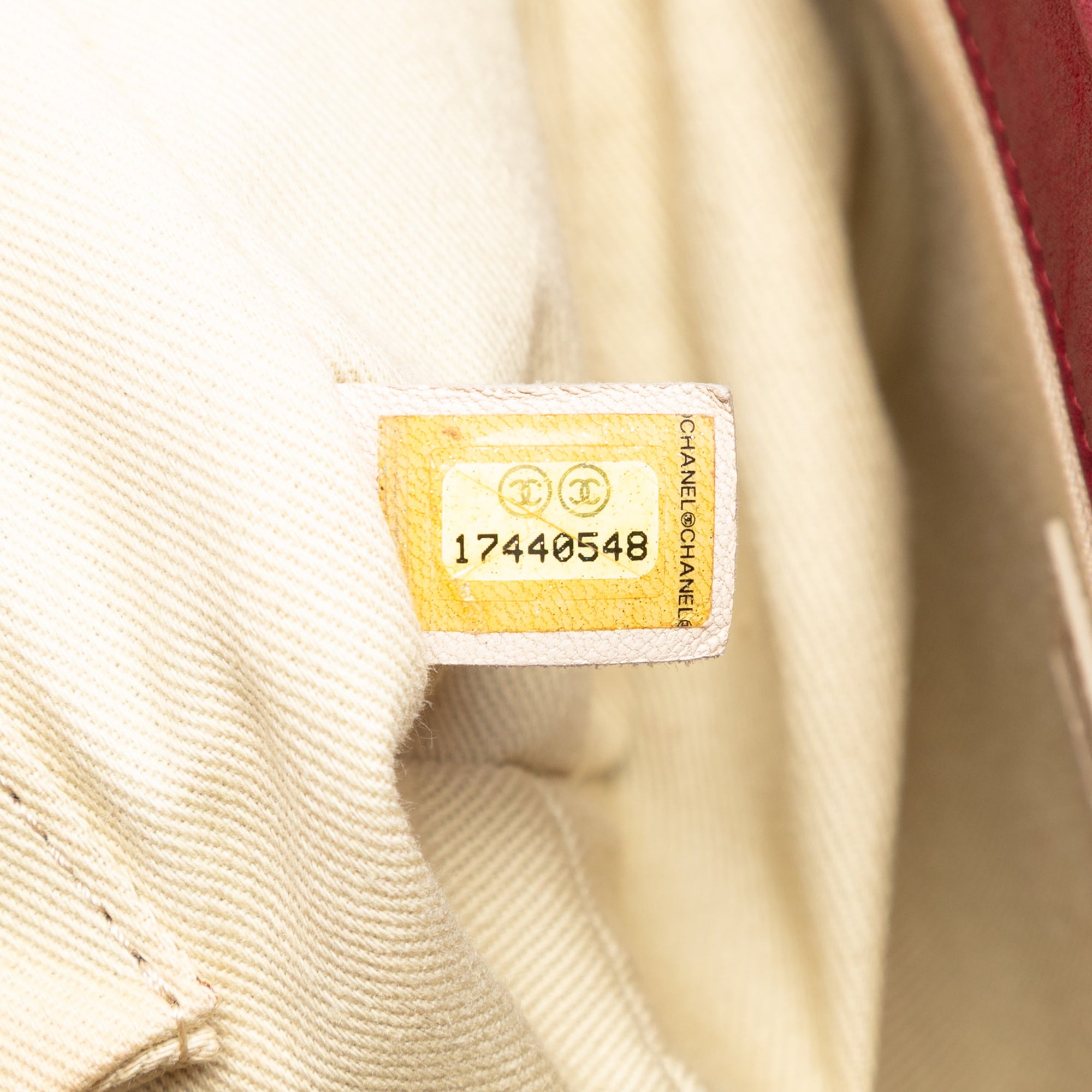 This shoulder bag features a quilted calfskin leather body, leather woven chain link shoulder straps with leather shoulder guards, a front flap with interlocking Cs and a turn-lock closure, and interior zip and slip pockets. Retail Price: 3200.00
