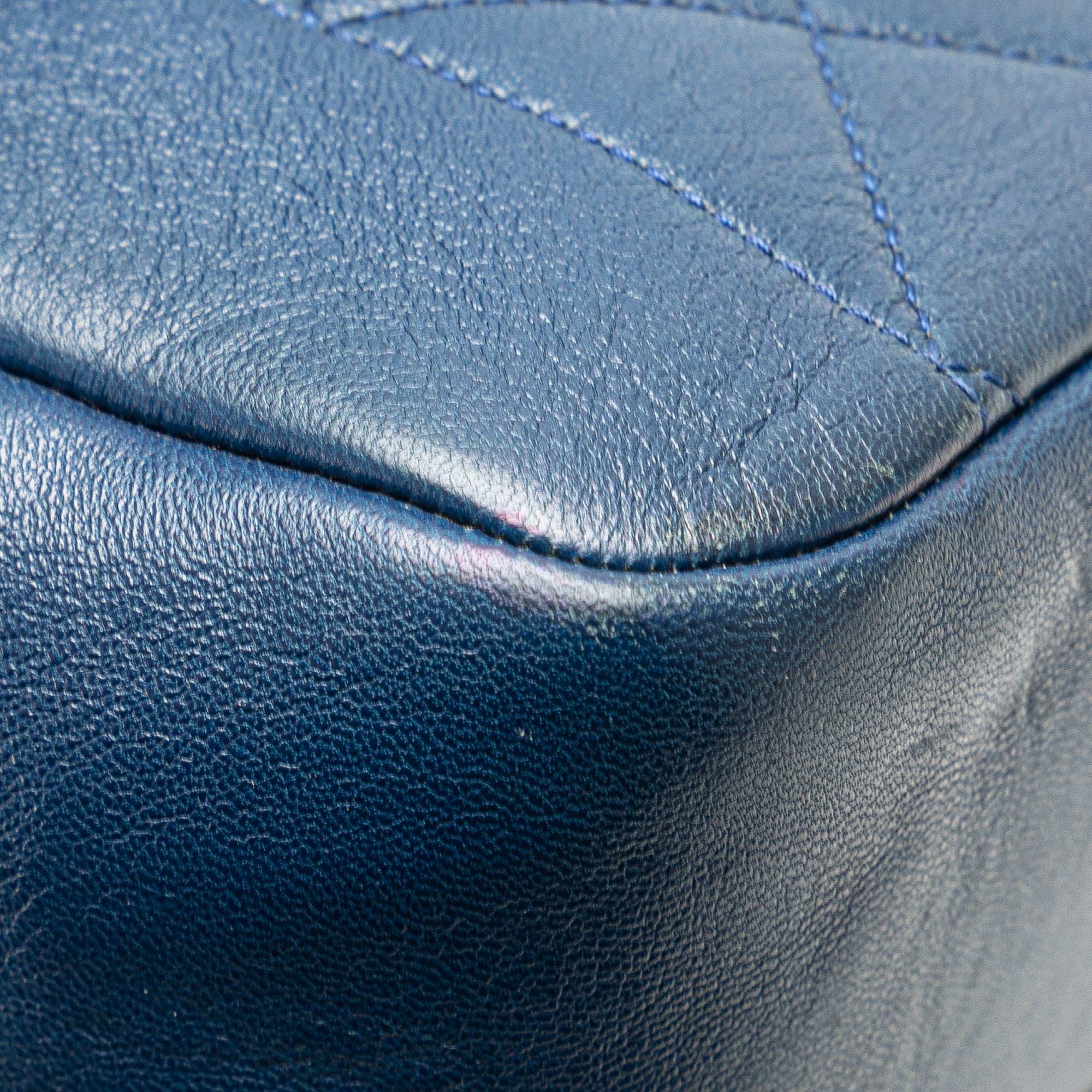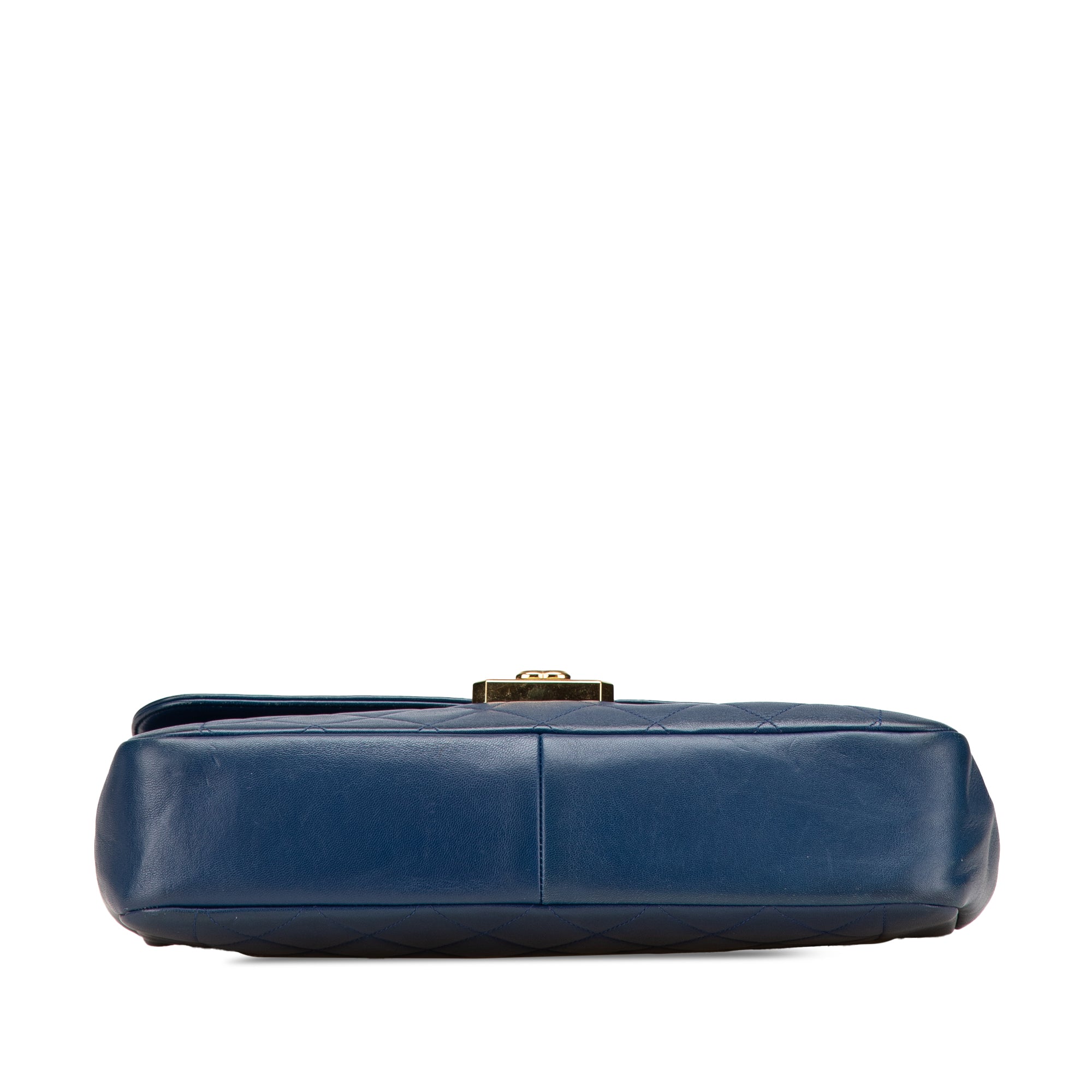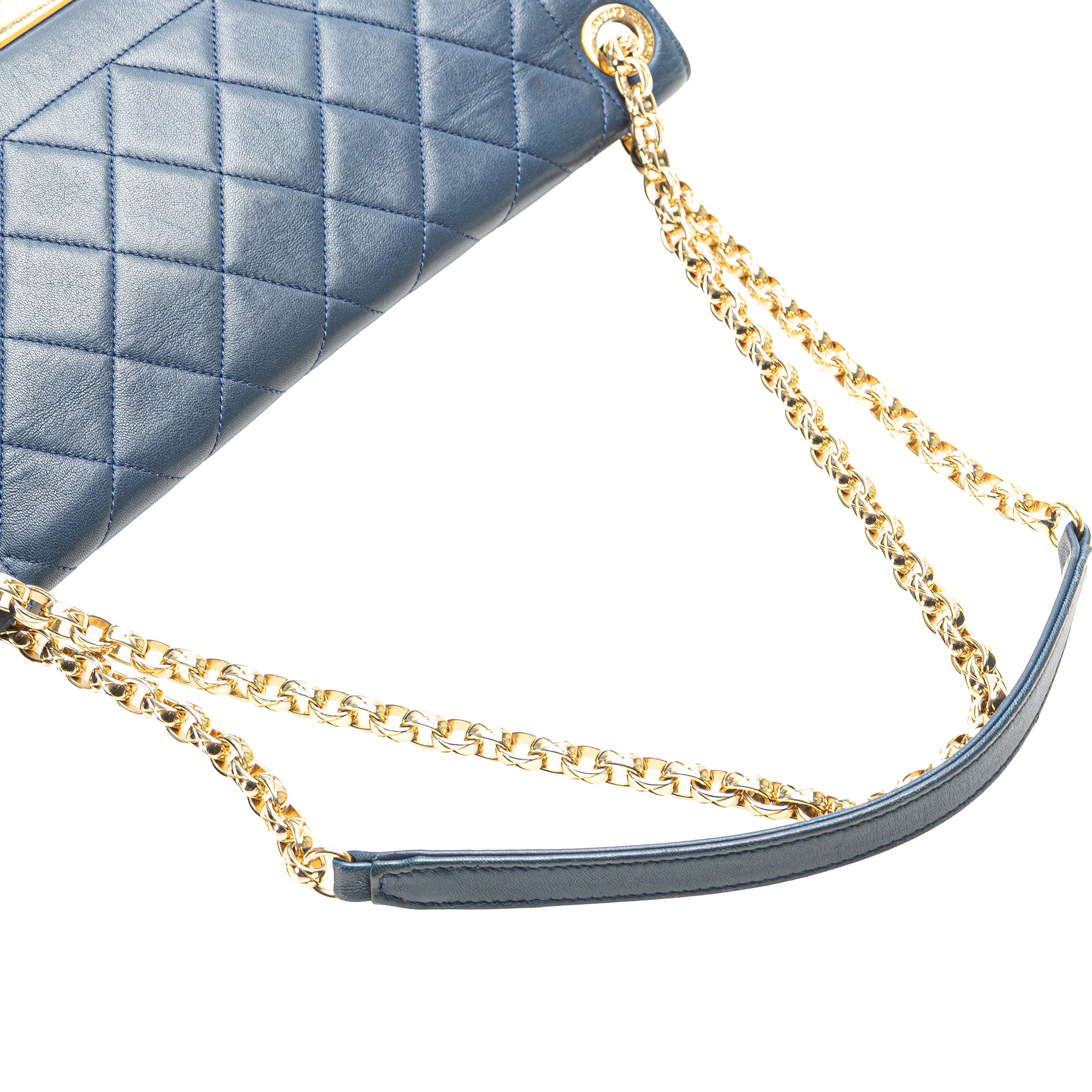 This crossbody bag features a quilted lambskin leather body, a chain link shoulder strap with a leather shoulder guard, a front flap with interlocking Cs and a push lock closure, and interior zip and slip pockets. Inclusion: authenticity card. Retail Price: 4200.00