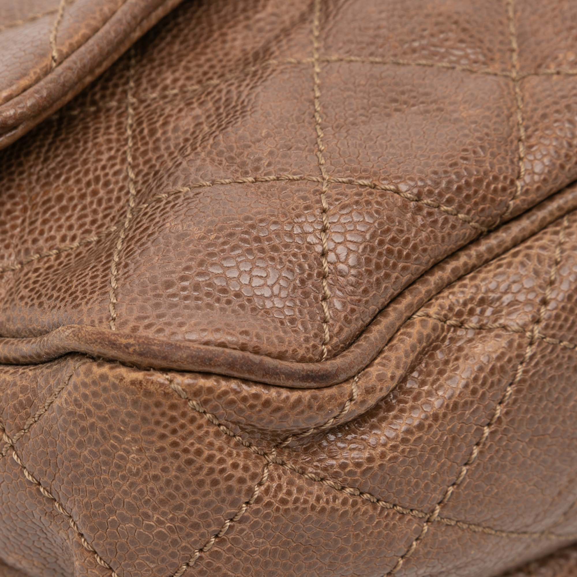 This flap bag features a quilted caviar leather body, a leather-woven chain link strap with leather shoulder guard, a flap with CC turn-lock closure, a top zip closure, and an interior zip pocket. Inclusion: authenticity card. Retail Price: 4800.00