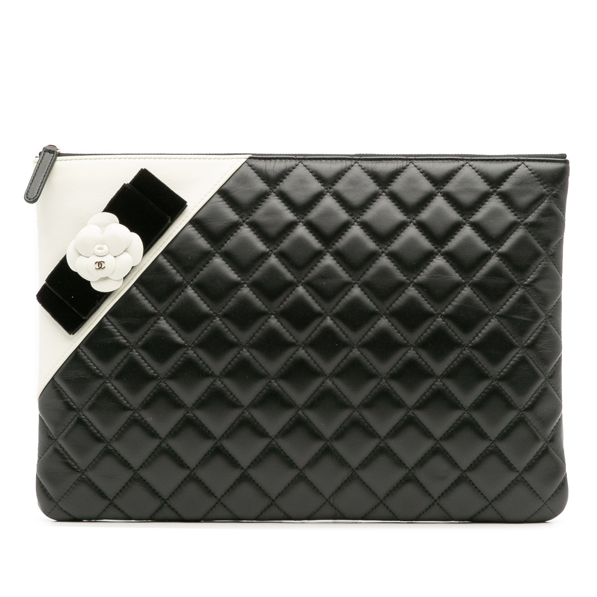 Chanel Large Quilted Lambskin Camellia O Case Clutch