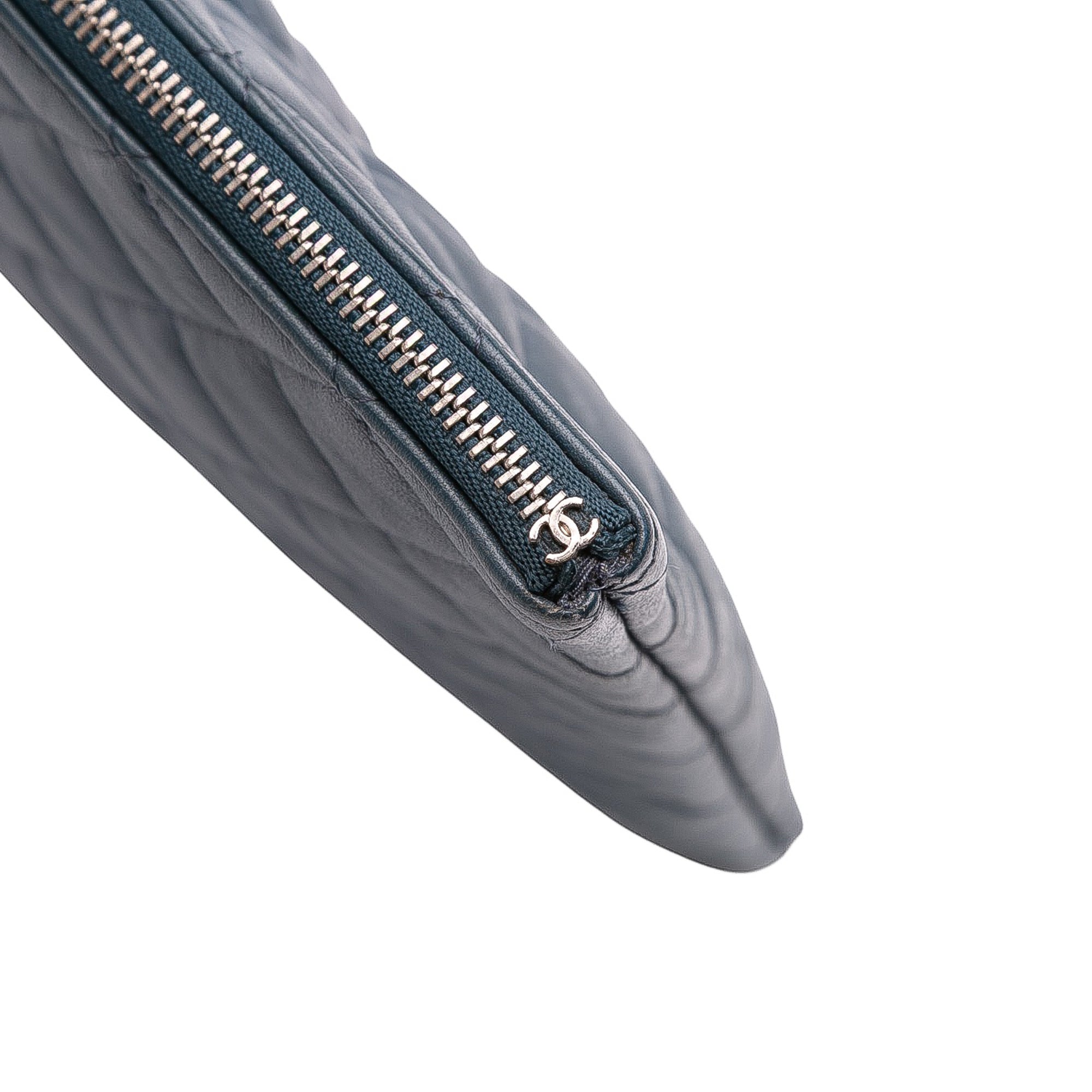 This clutch features a quilted lambskin leather body and a top zip closure. Retail Price: 1670.00
