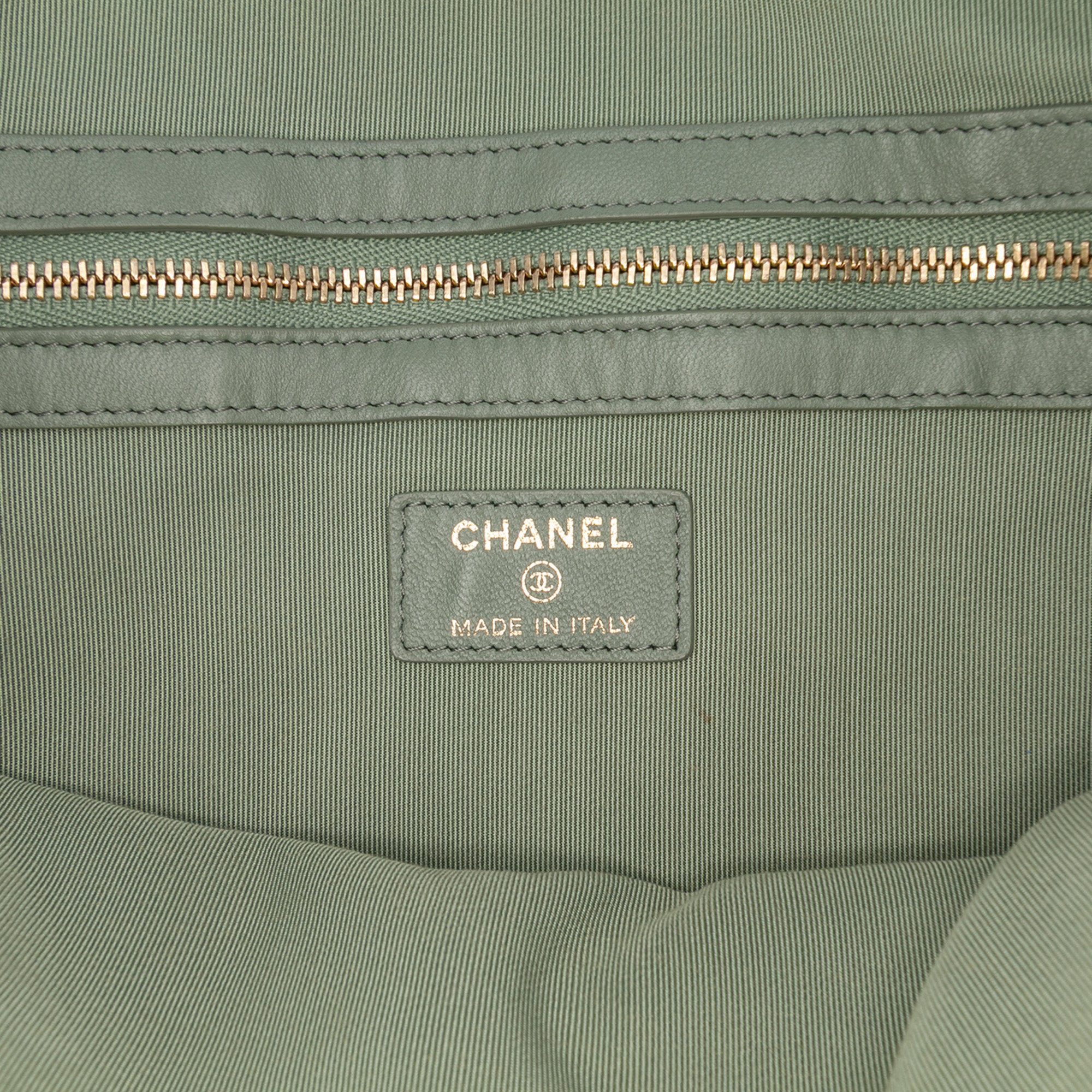 This clutch features a quilted lambskin leather body, a top zip closure, an exterior back slip pocket, and an interior zip pocket. Retail Price: 1670.00
