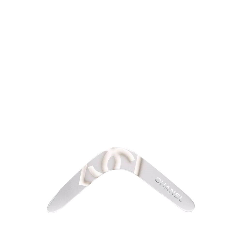 Chanel silver-tone and white plastic 2000s boomerang decorated with a frontal logo print. - Year: 2017