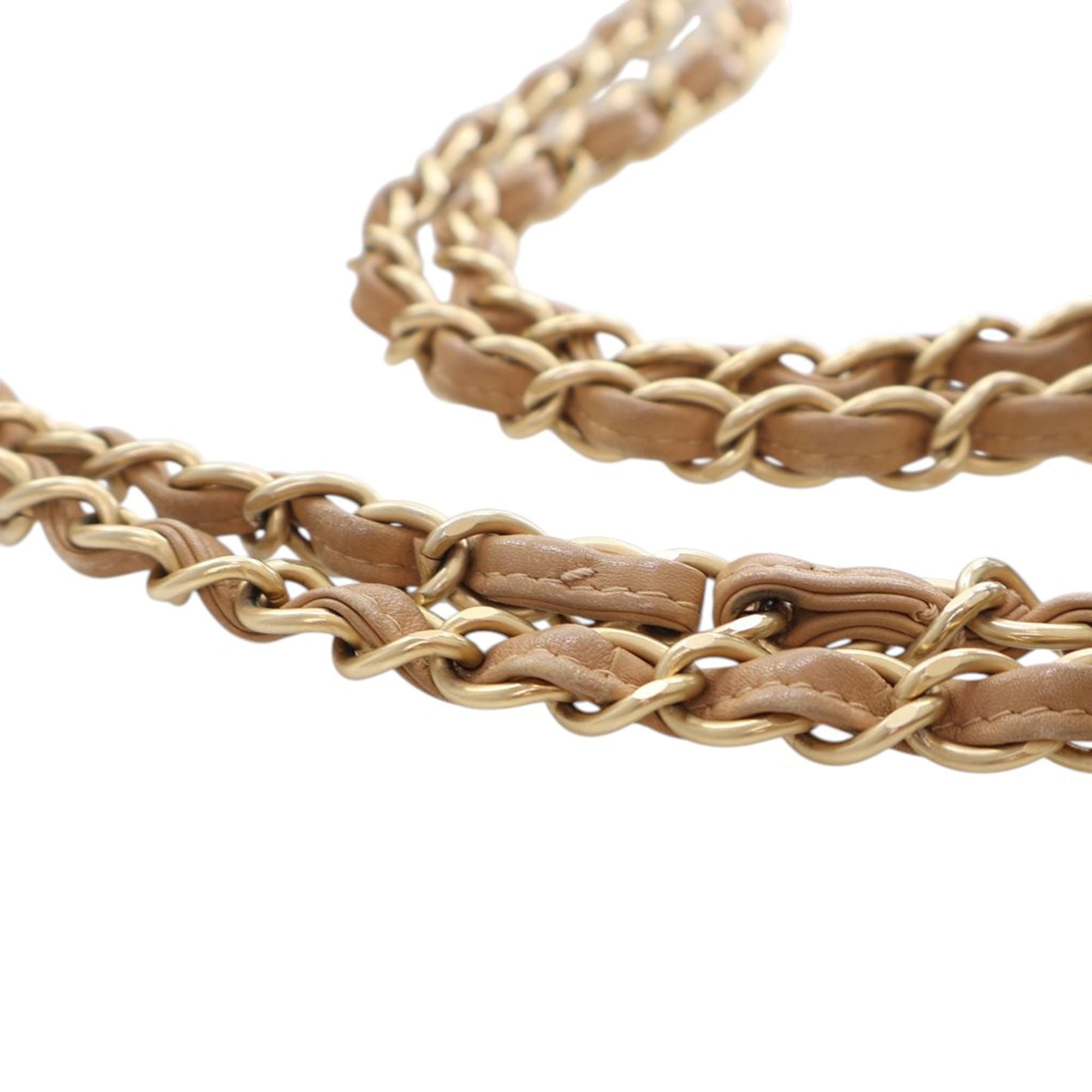 This shoulder bag features a quilted leather body, leather-woven chain shoulder straps, a front flap with CC turnlock closure, an exterior back slip pocket, and interior zip and slip pockets. Inclusion: Dust bag. Retail Price: 4900.00