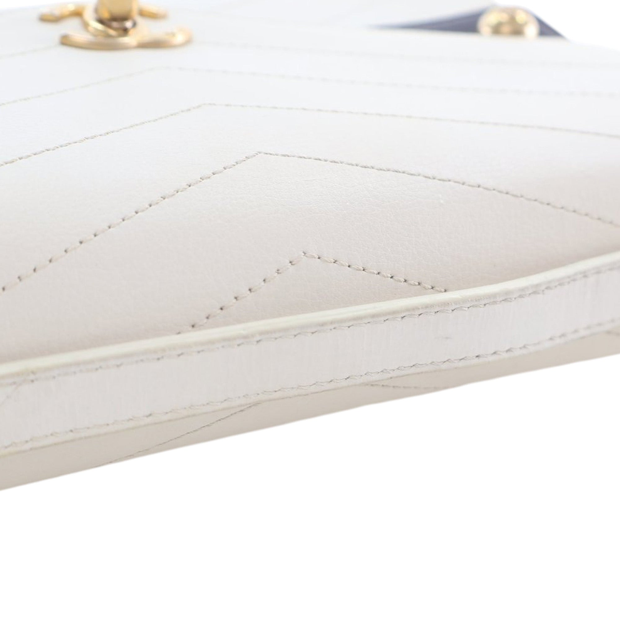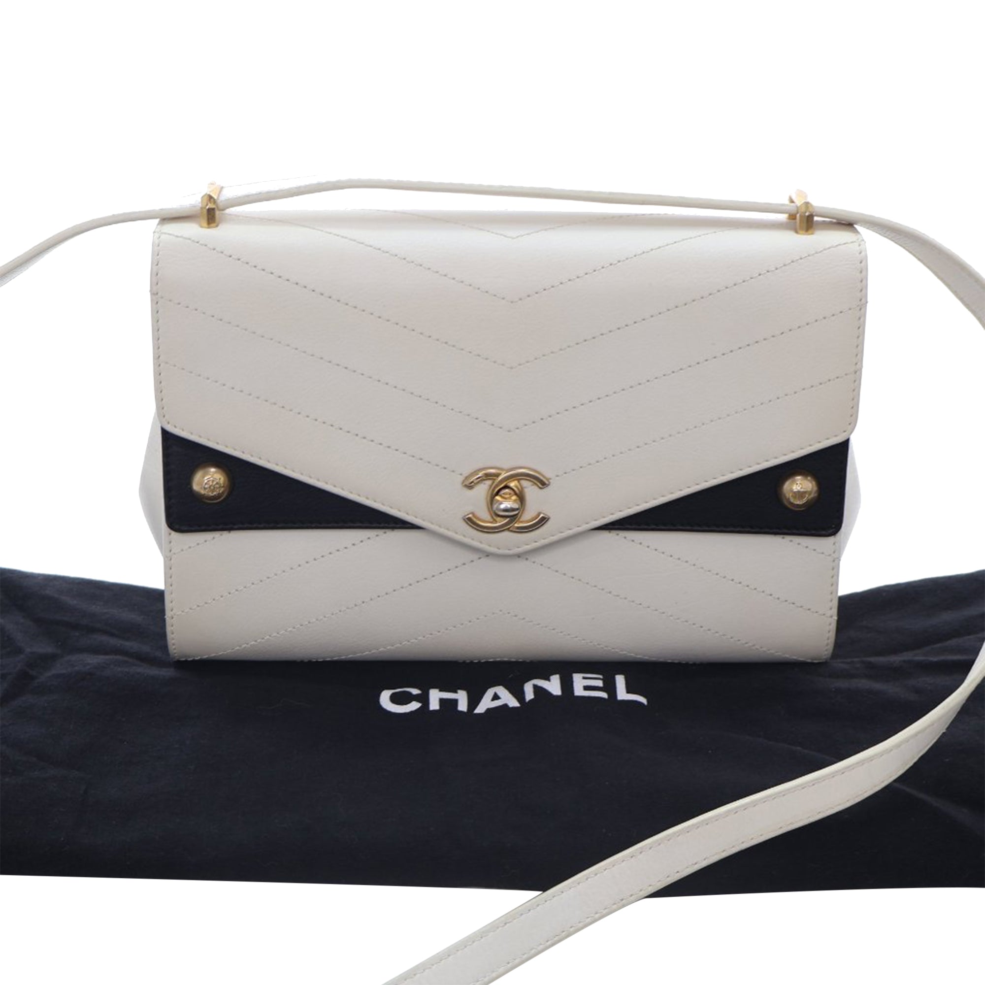This crossbody bag features a calf leather body, a leather threaded chain link strap, a front flap with interlocking Cs and twist lock closure, and an interior zip pocket. Inclusion: Dust bag, authenticity card. Retail Price: 4400.00