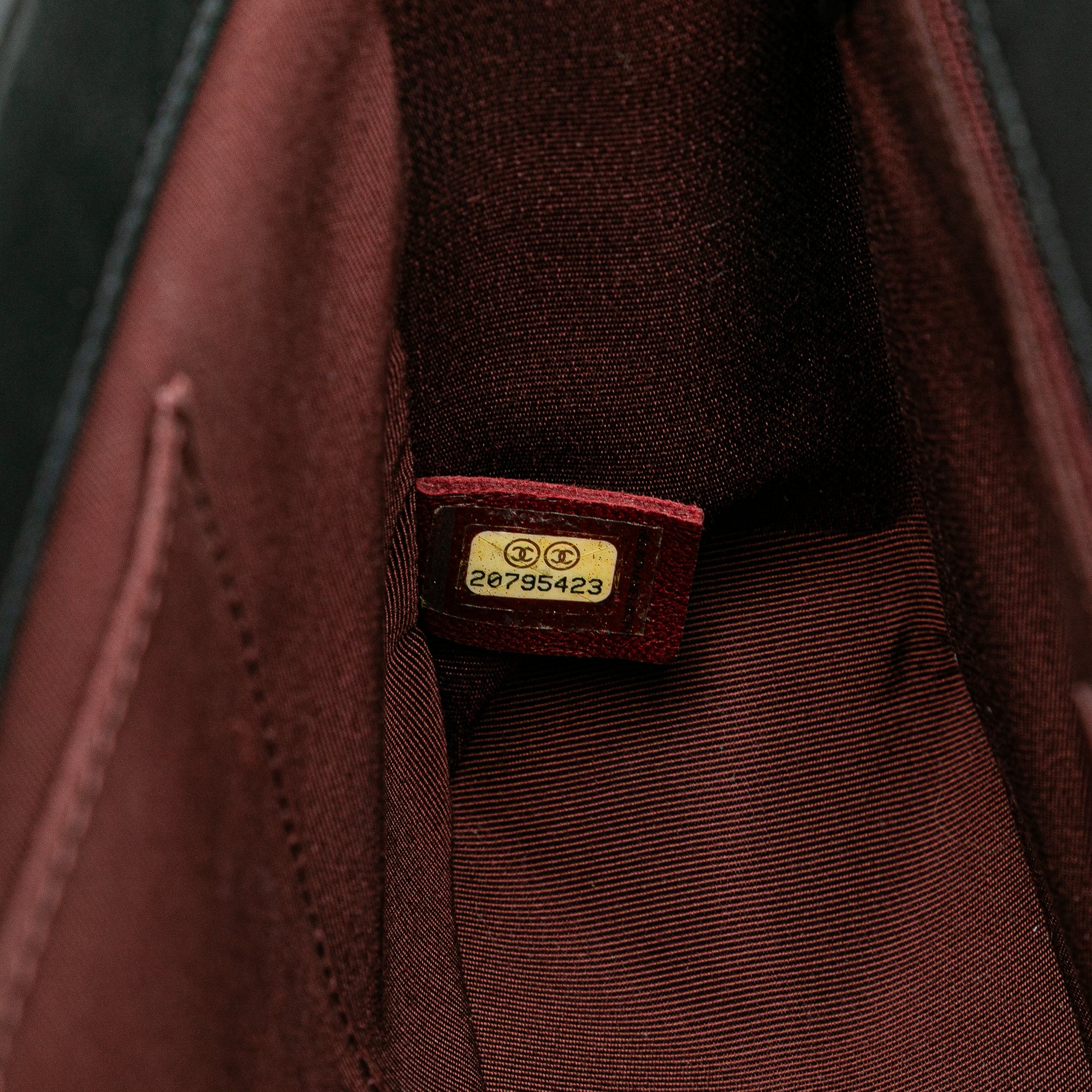 The Boy Flap features a quilted lambskin leather body, a curb chain shoulder strap with leather guard, a front flap with interlocking Cs and push lock closure, and an interior zip pocket. Inclusion: authenticity card. Retail Price: 6200.00