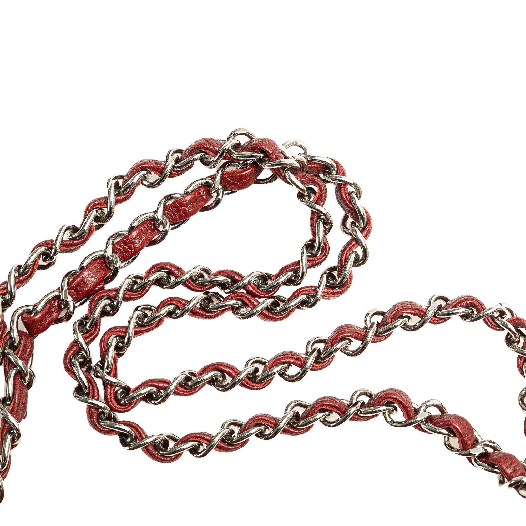 This Flap bag features a quilted caviar leather body, leather woven chain straps, double front flaps with CC turn lock closure, an exterior back slip pocket, and interior zip and slip pockets. Strap is repaired. Retail Price: 11700.00