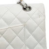 This shoulder bag features a quilted caviar body, leather woven chain straps, double front flaps with interlocking Cs and a twist lock closure, an exterior back slip pocket, and interior slip pockets. Retail Price: 10500.00
