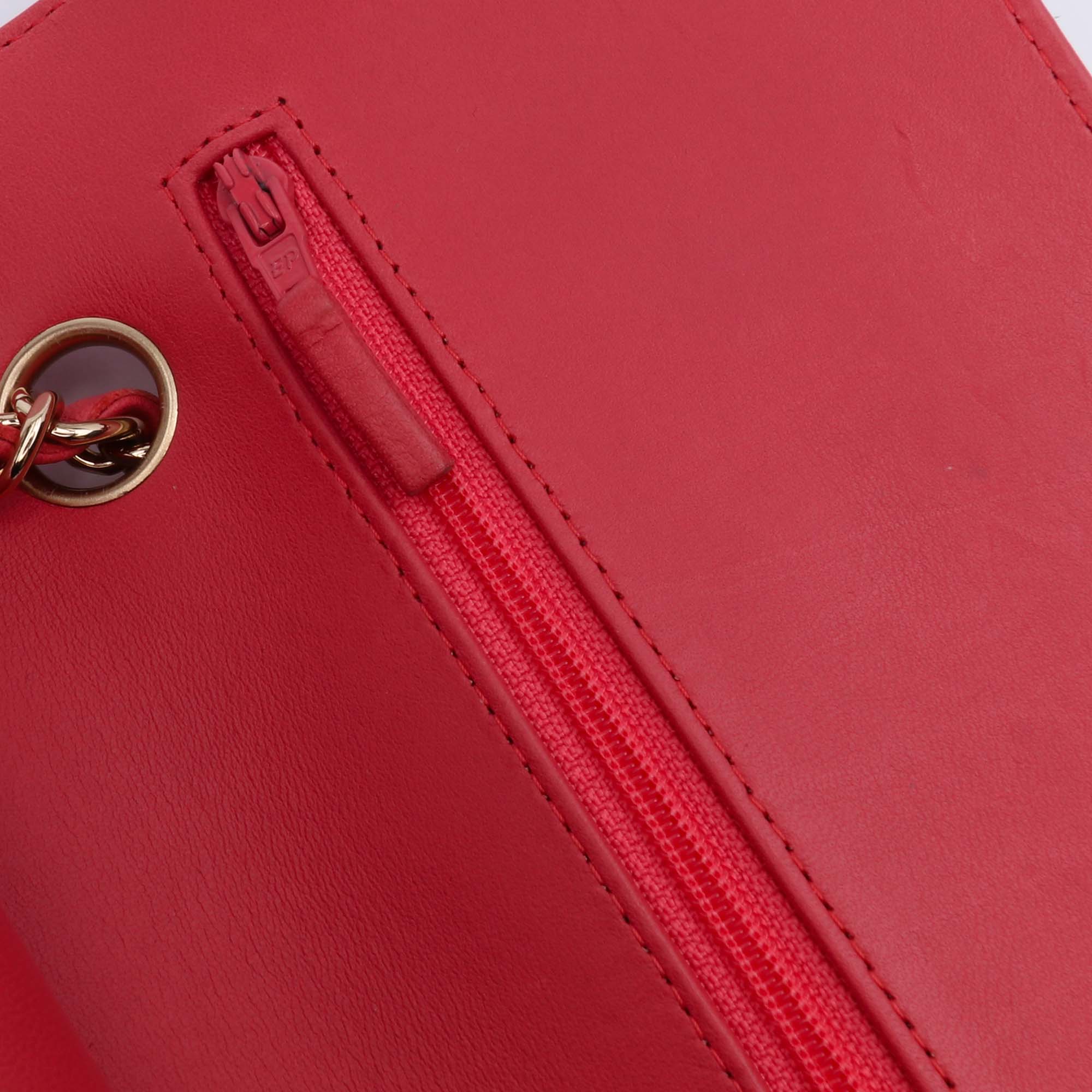This shoulder bag features a quilted lambskin leather body, a leather woven chain shoulder strap, front flaps with interlocking Cs and twist lock closure, an exterior back slip pocket, and interior zip and slip pockets. Retail Price: 8800.00
