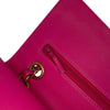 This shoulder bag features a quilted lambskin leather body, a leather woven chain shoulder strap, front flaps with interlocking Cs and twist lock closure, an exterior back slip pocket, and interior zip and slip pockets. Retail Price: 8800.00