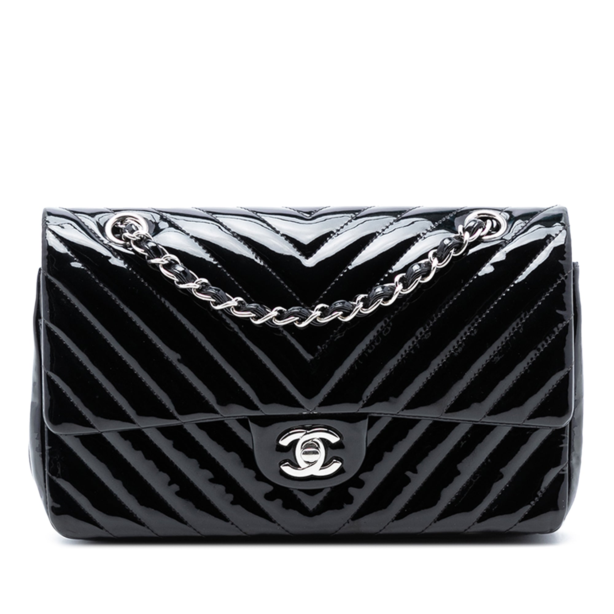 Chanel Medium Classic Chevron Patent Double Flap