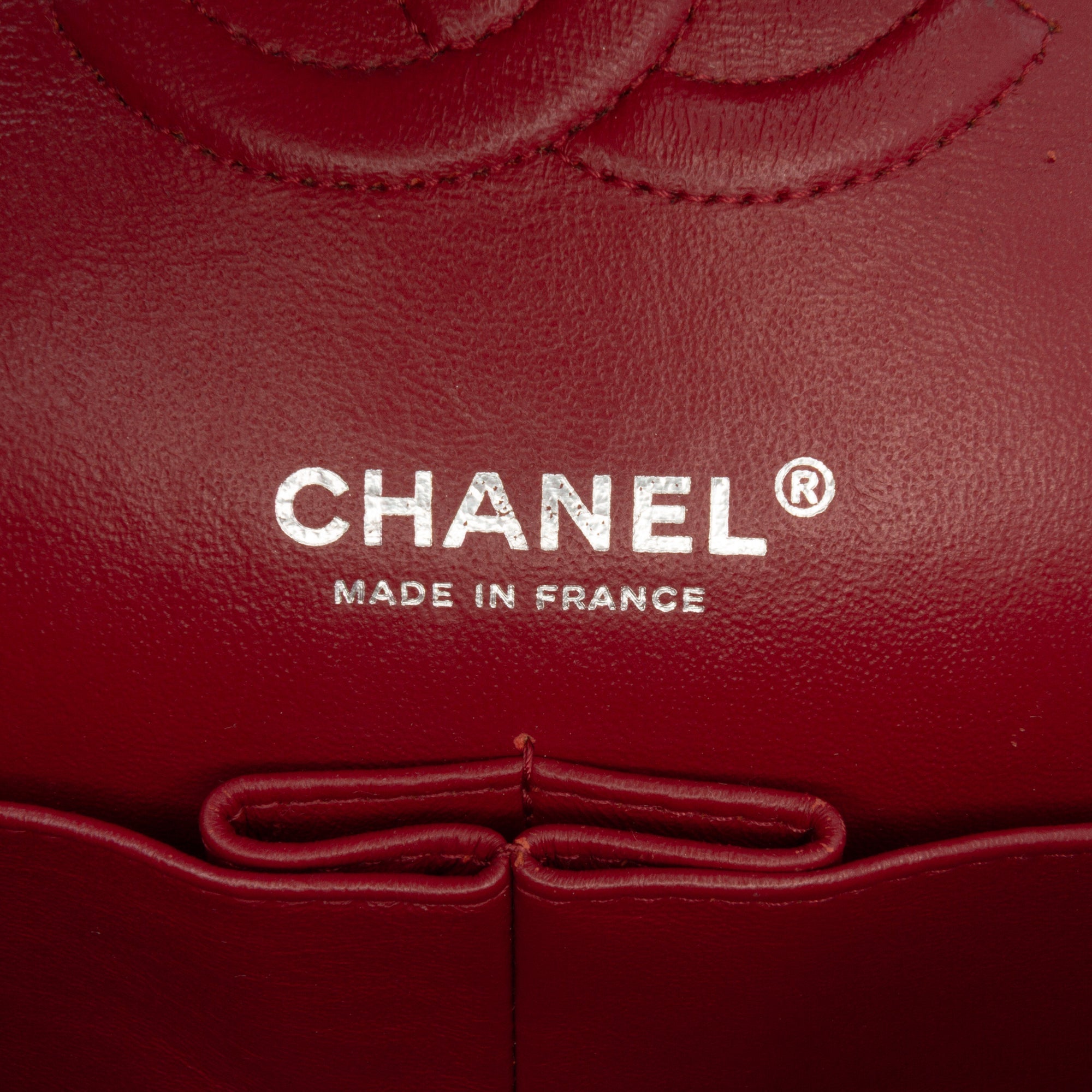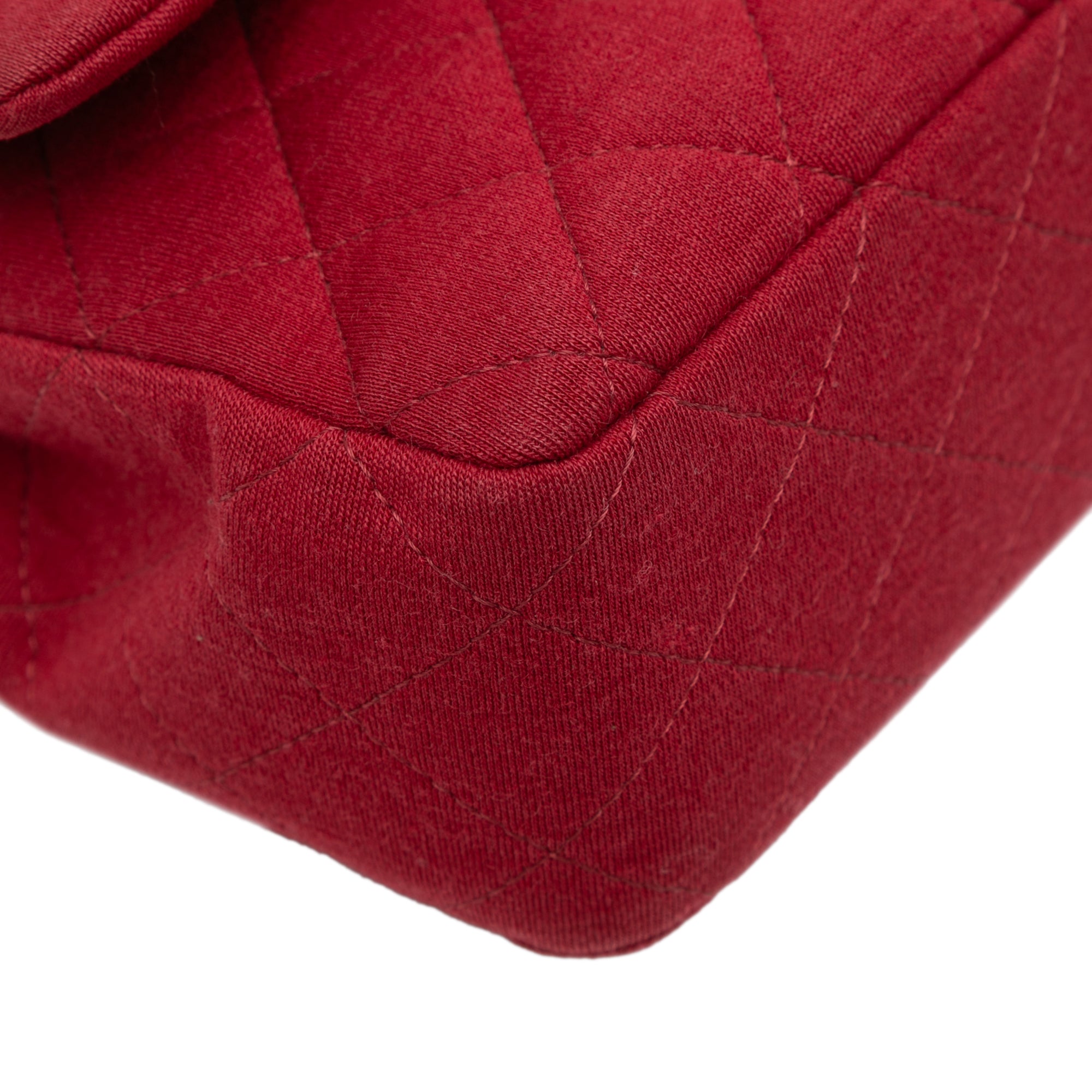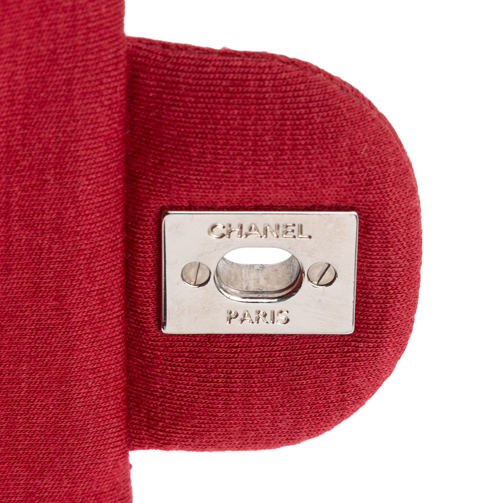 This shoulder bag features a quilted jersey body, cotton-woven chain shoulder straps, double front flaps with CC turn-lock closure, an exterior back slip pocket, and interior zip and slip pockets. Retail Price: 10800.00
