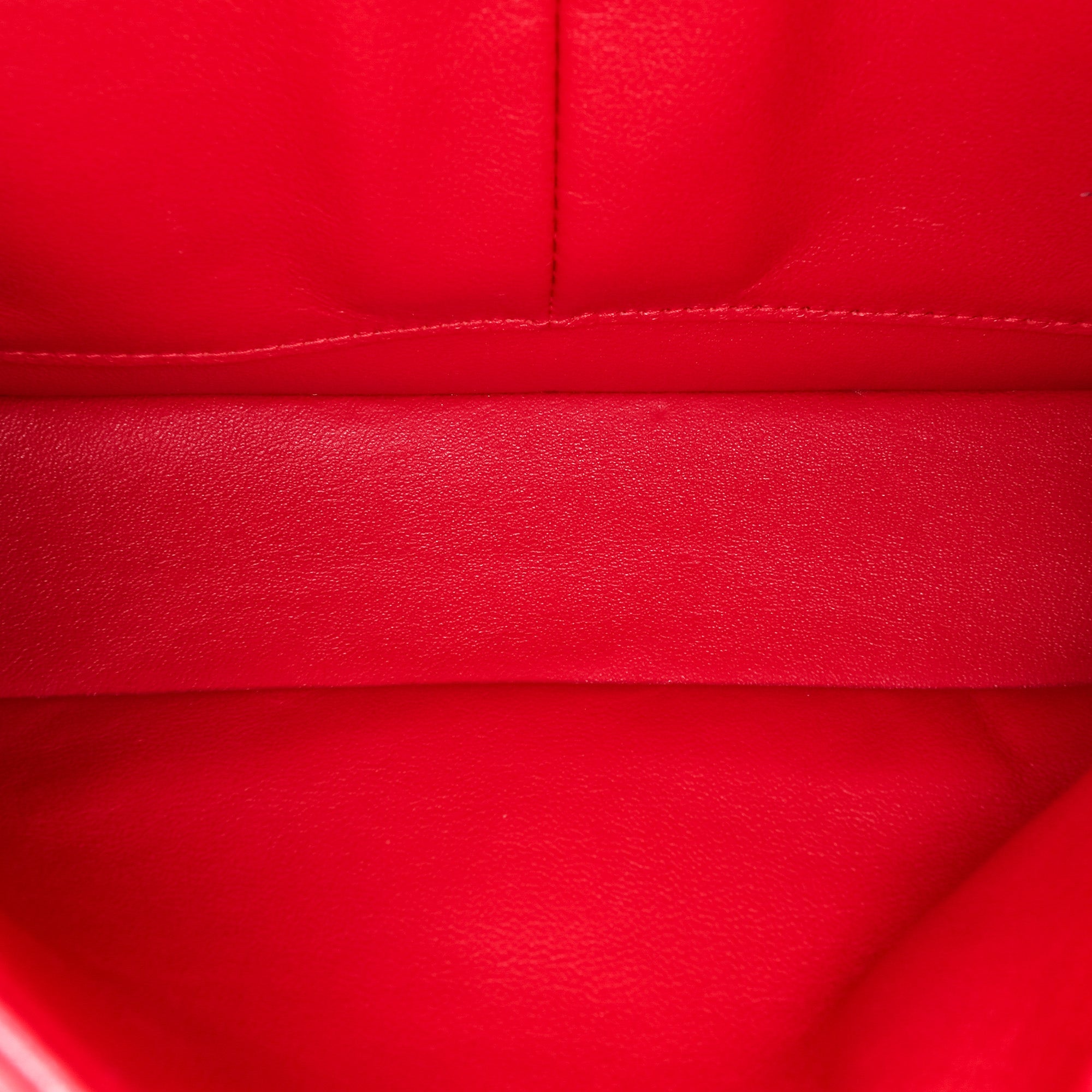 This shoulder bag features a quilted lambskin body, leather woven chain link straps, double front flaps with interlocking Cs and a twist lock closure, an exterior back slip pocket, and interior zip and slip pockets. Retail Price: 10450.00