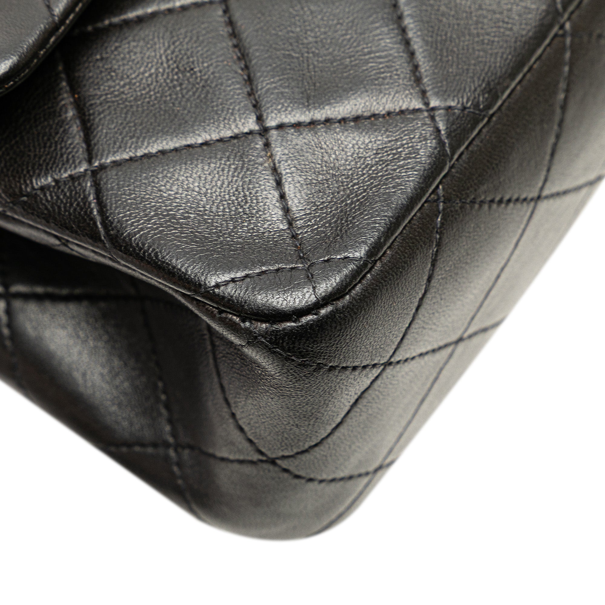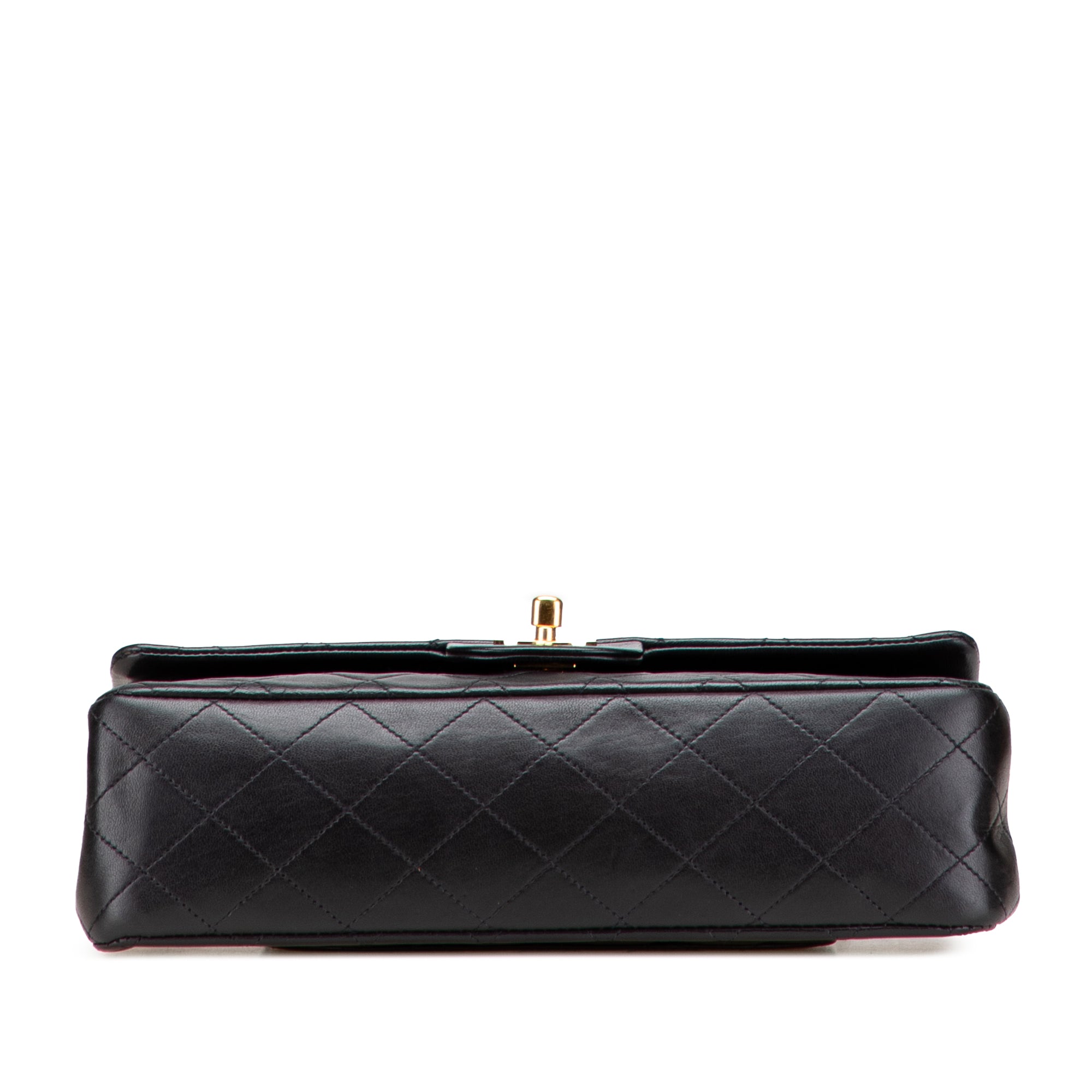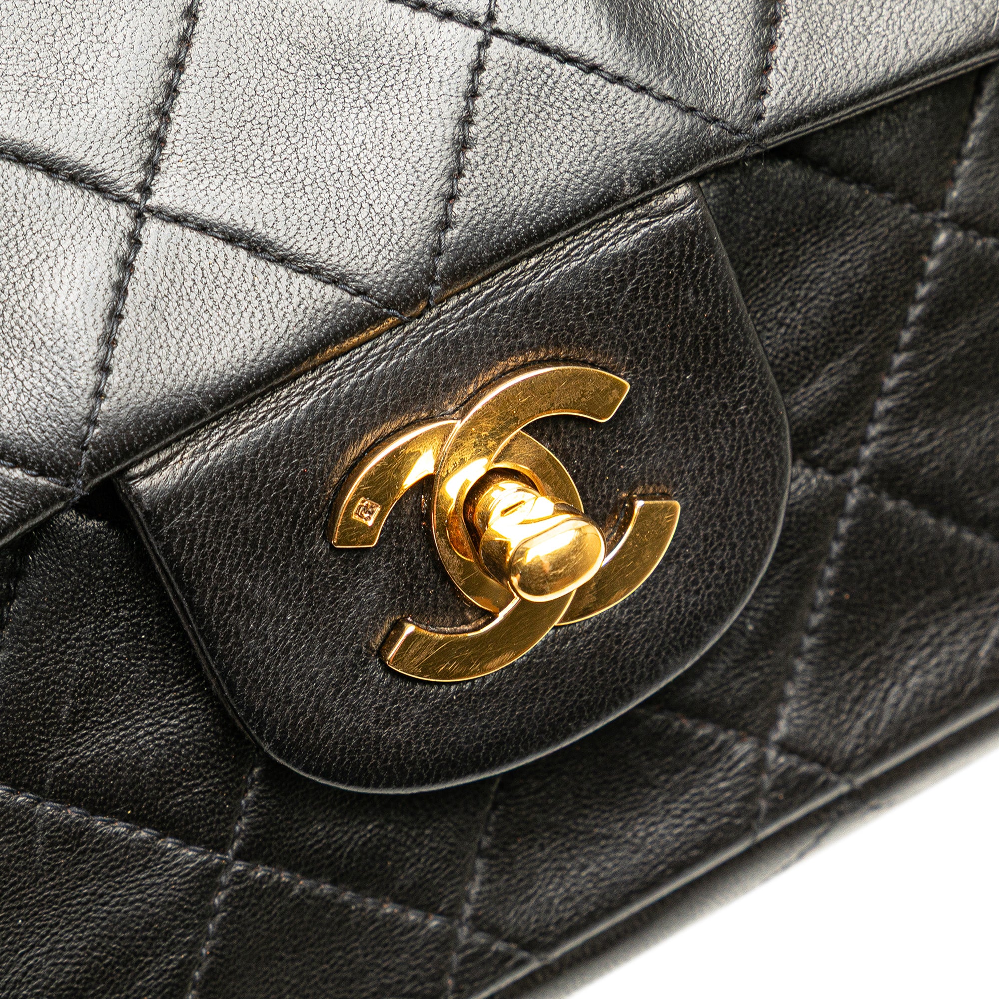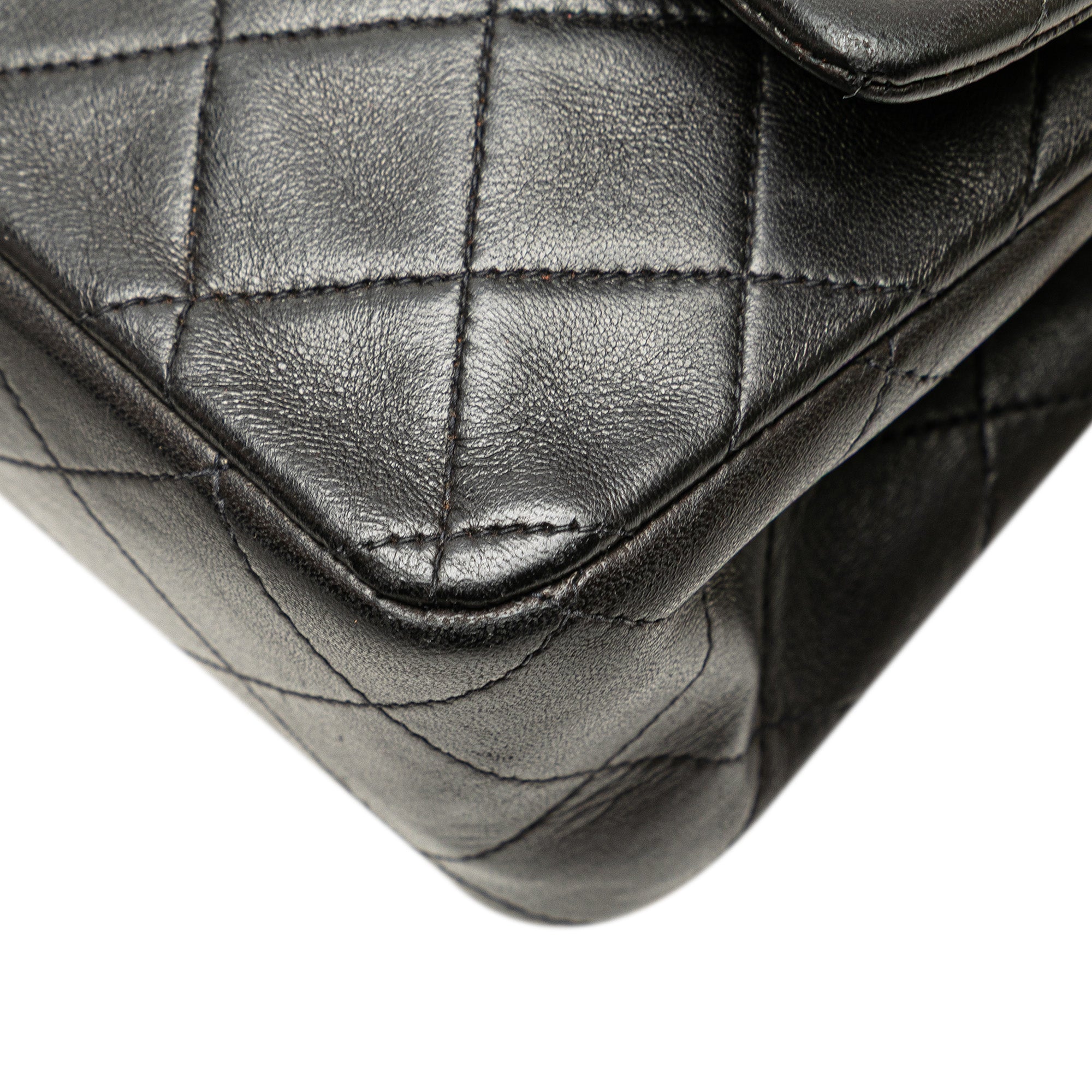 This shoulder bag features a quilted lambskin body, leather woven chain straps, double front flaps with interlocking Cs and a twist lock closure, an exterior back slip pocket, and interior zip and slip pockets. Retail Price: 10200.00
