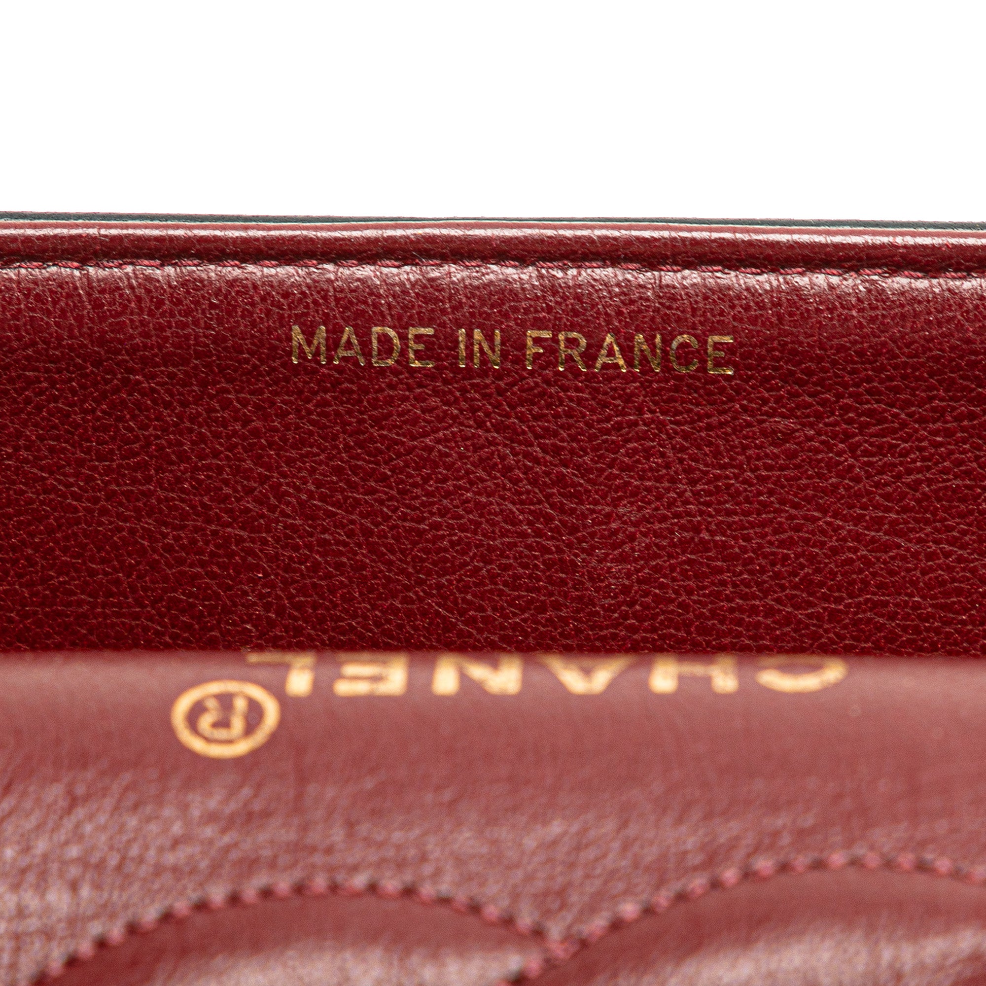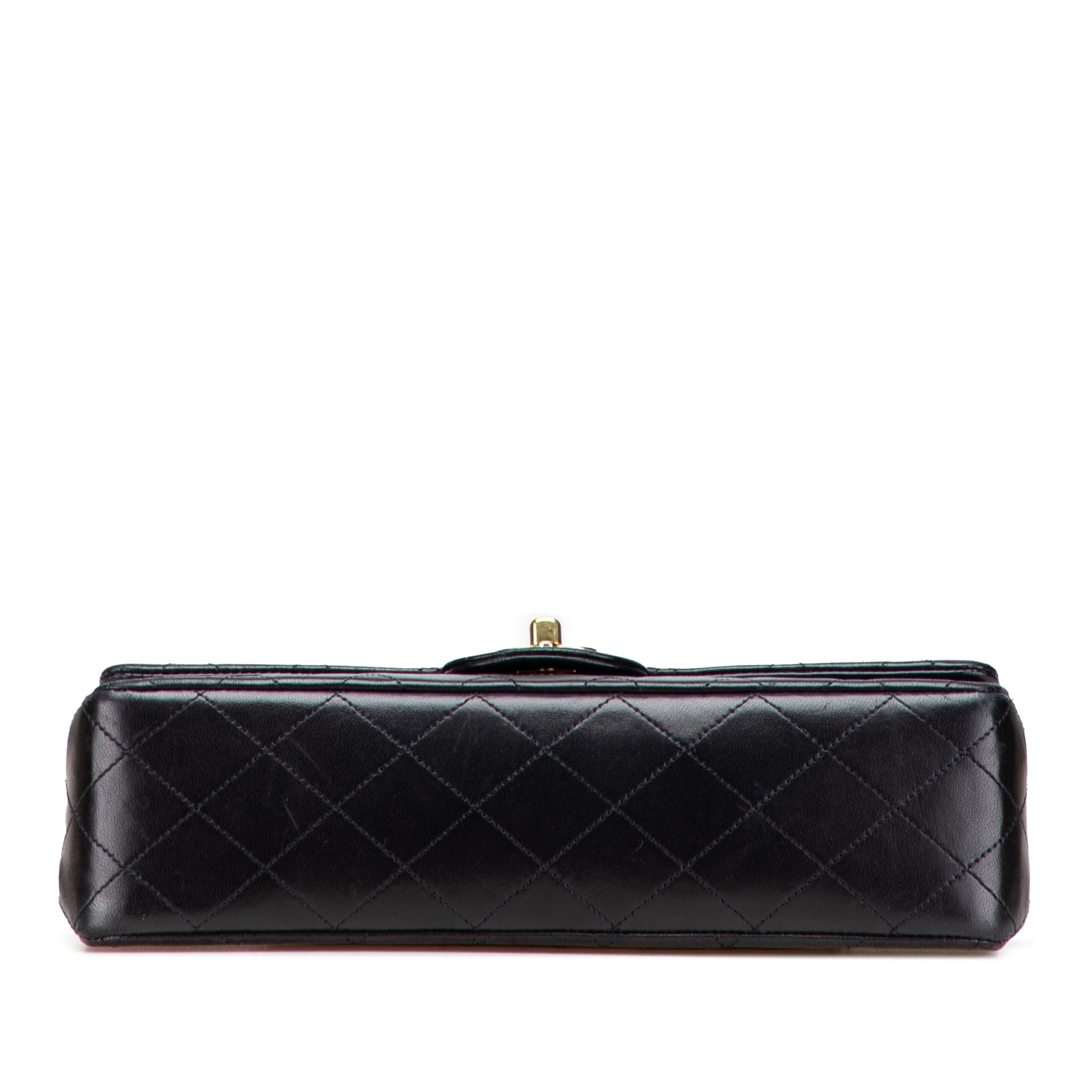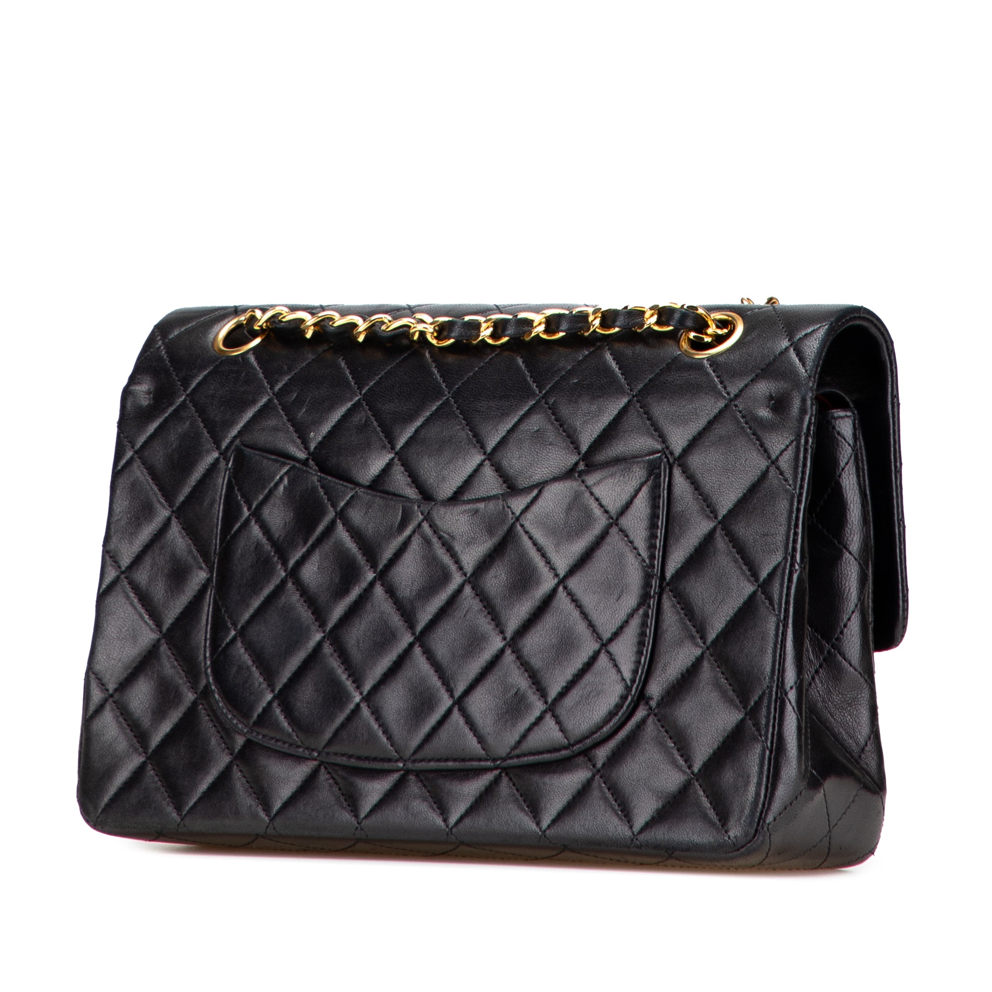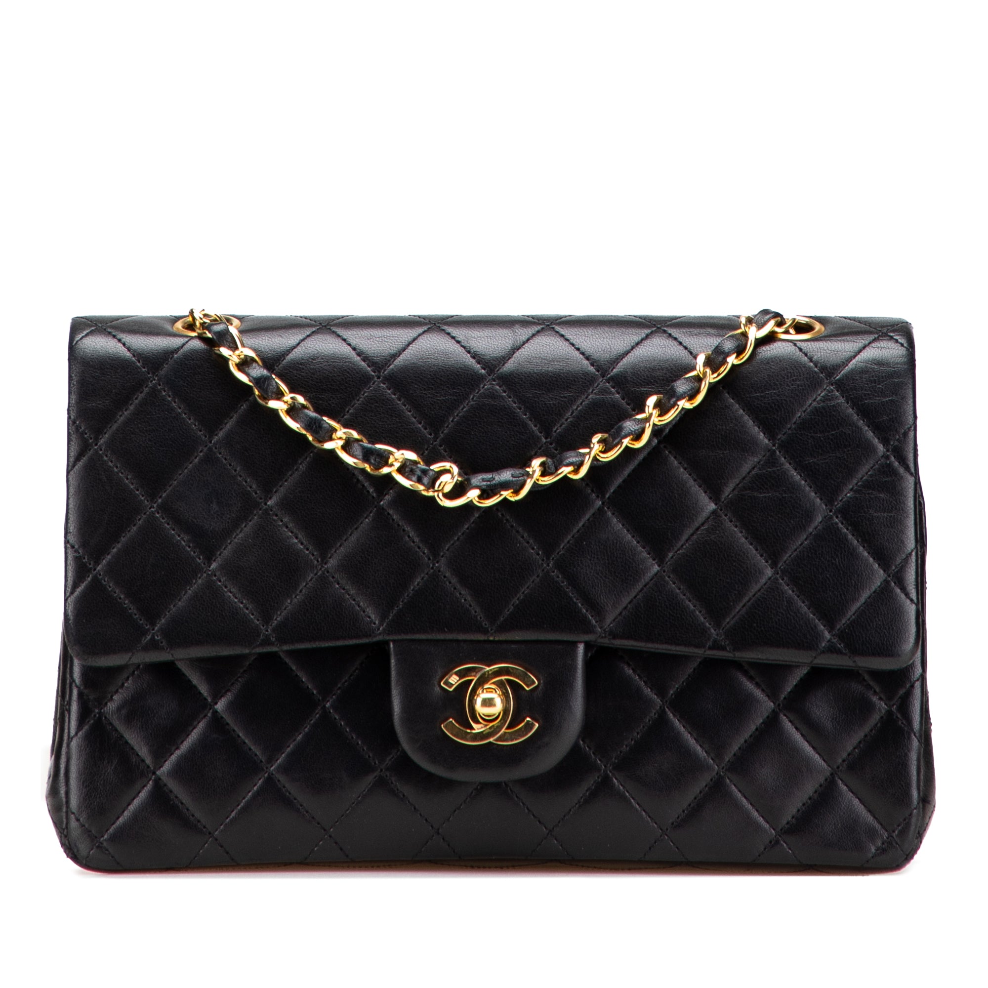 This shoulder bag features a quilted lambskin body, an exterior back slip pocket, leather woven chain straps, double front flaps with interlocking Cs and a twist lock closure, and interior zip and slip pockets. Inclusion: Dust bag, authenticity card. Retail Price: 10800.00