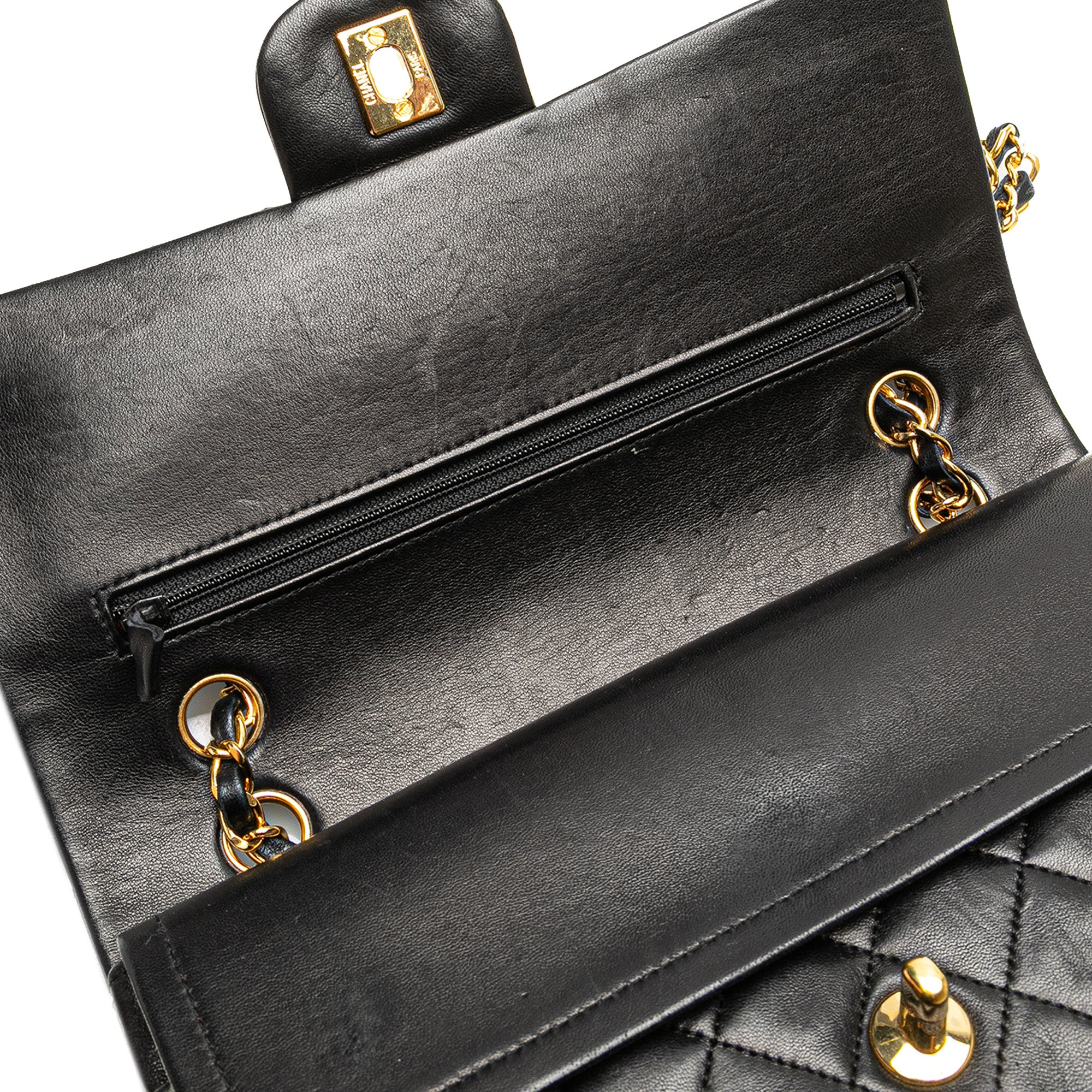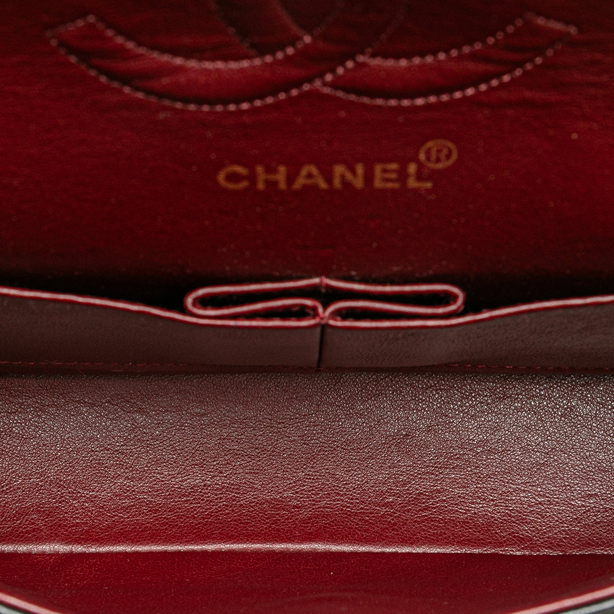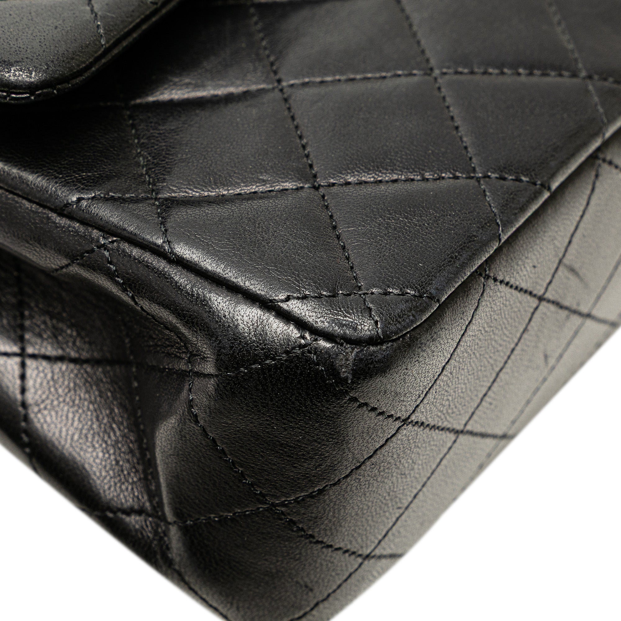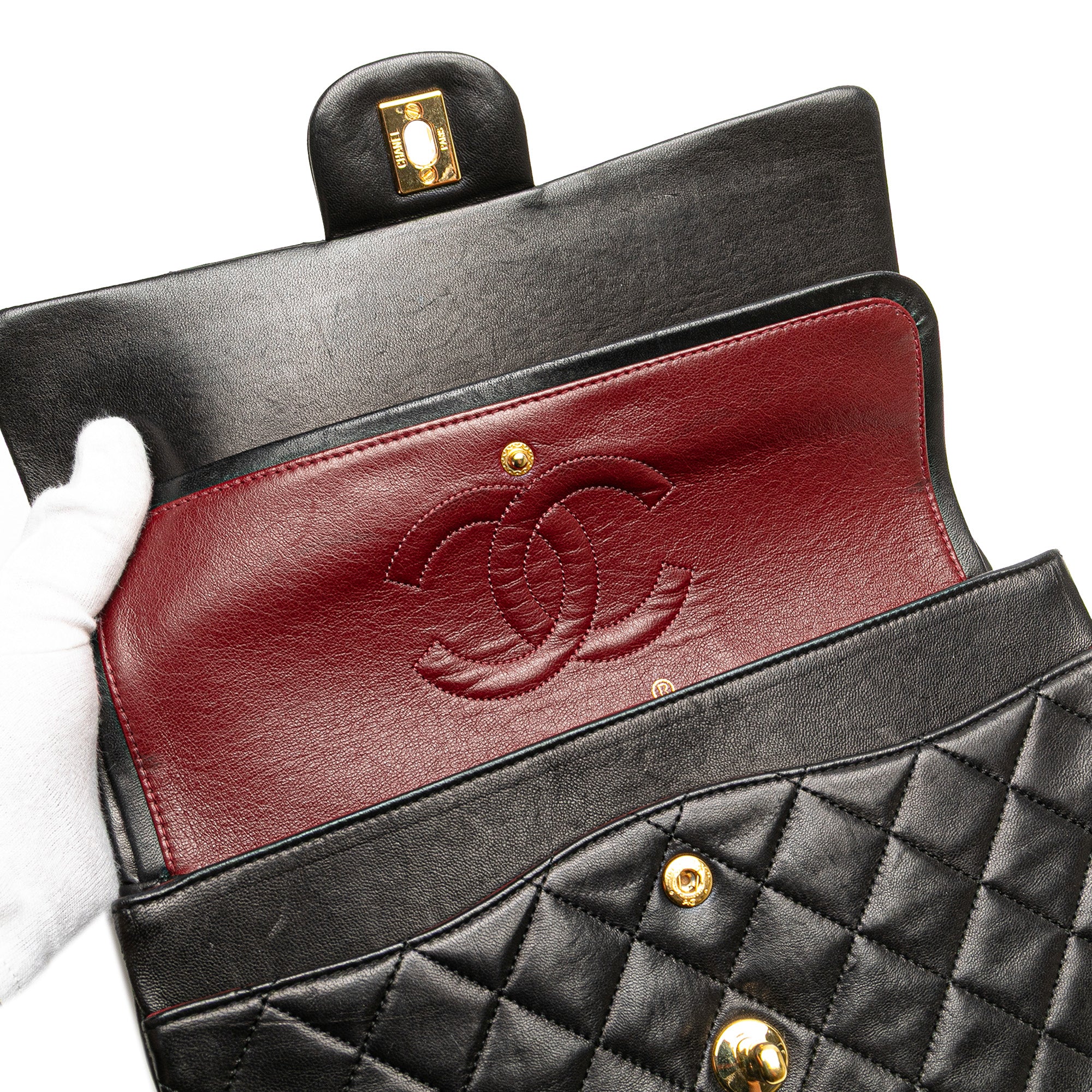 This shoulder bag features a quilted lambskin body, an exterior back slip pocket, leather woven chain straps, double front flaps with interlocking Cs and a twist lock closure, and interior zip and slip pockets. Inclusion: Dust bag, authenticity card. Retail Price: 10800.00