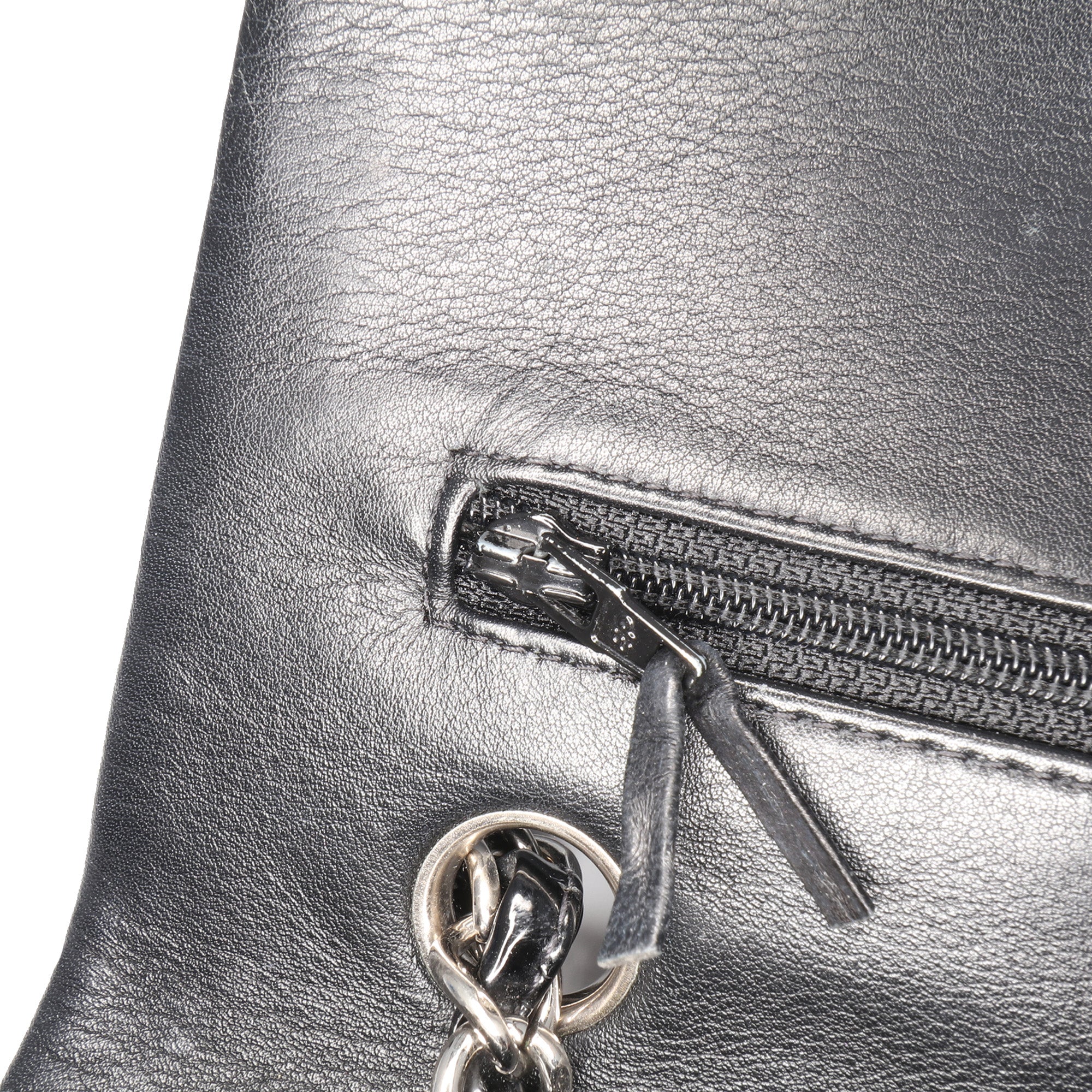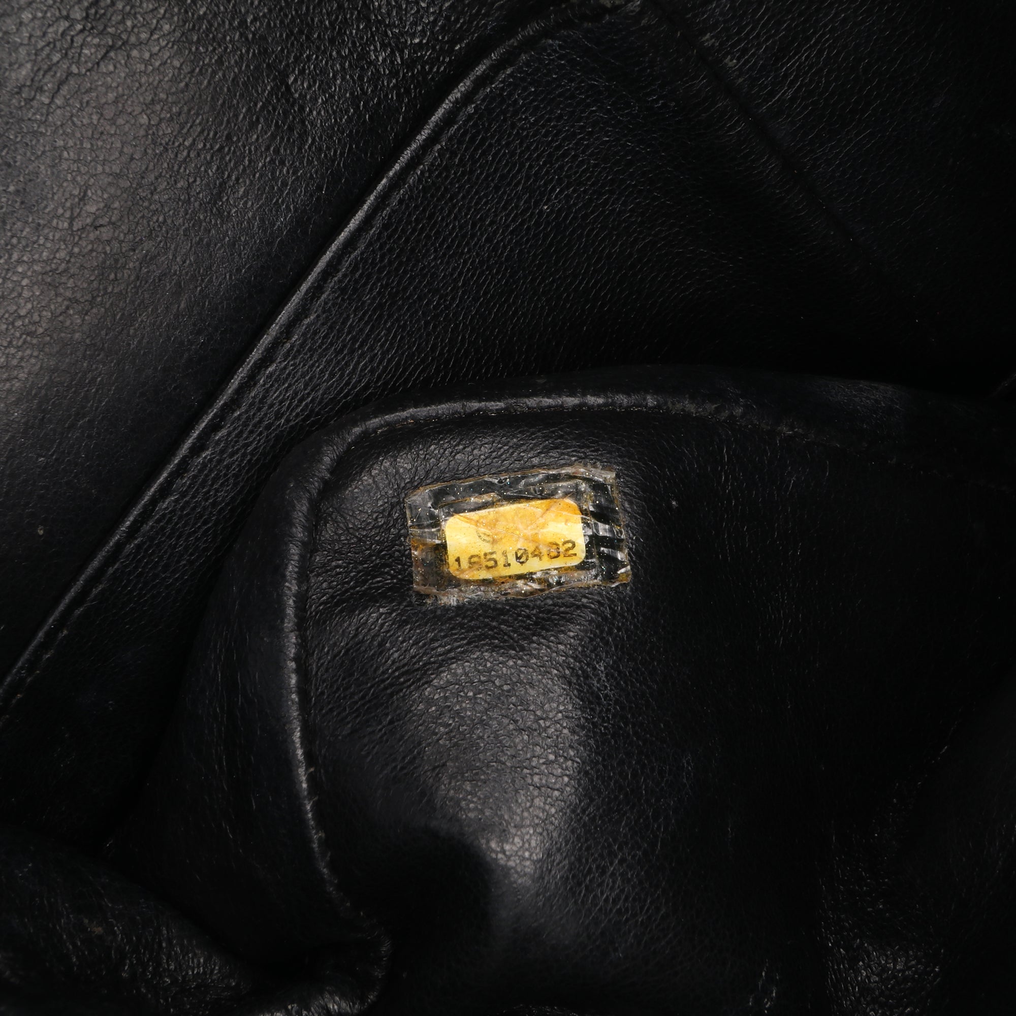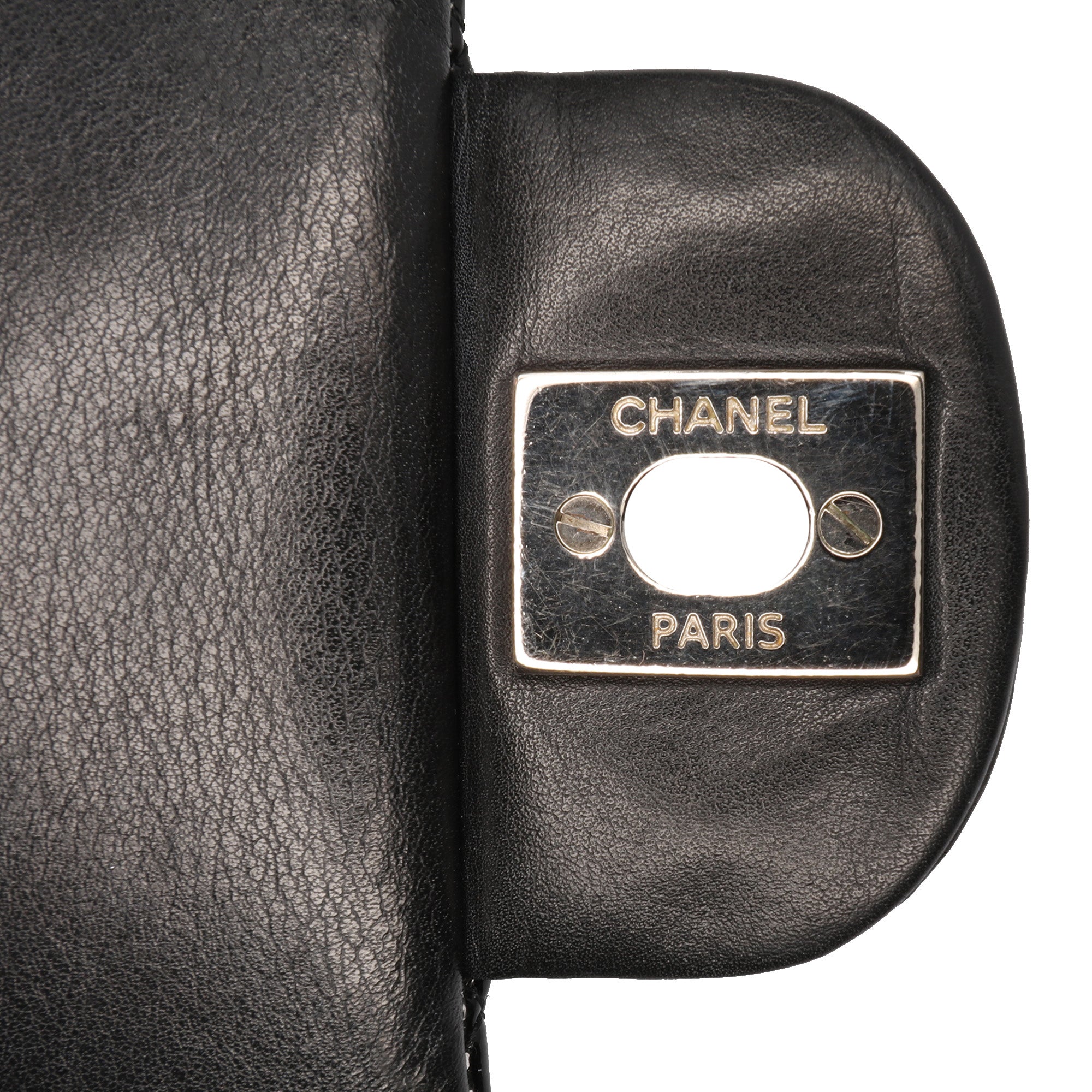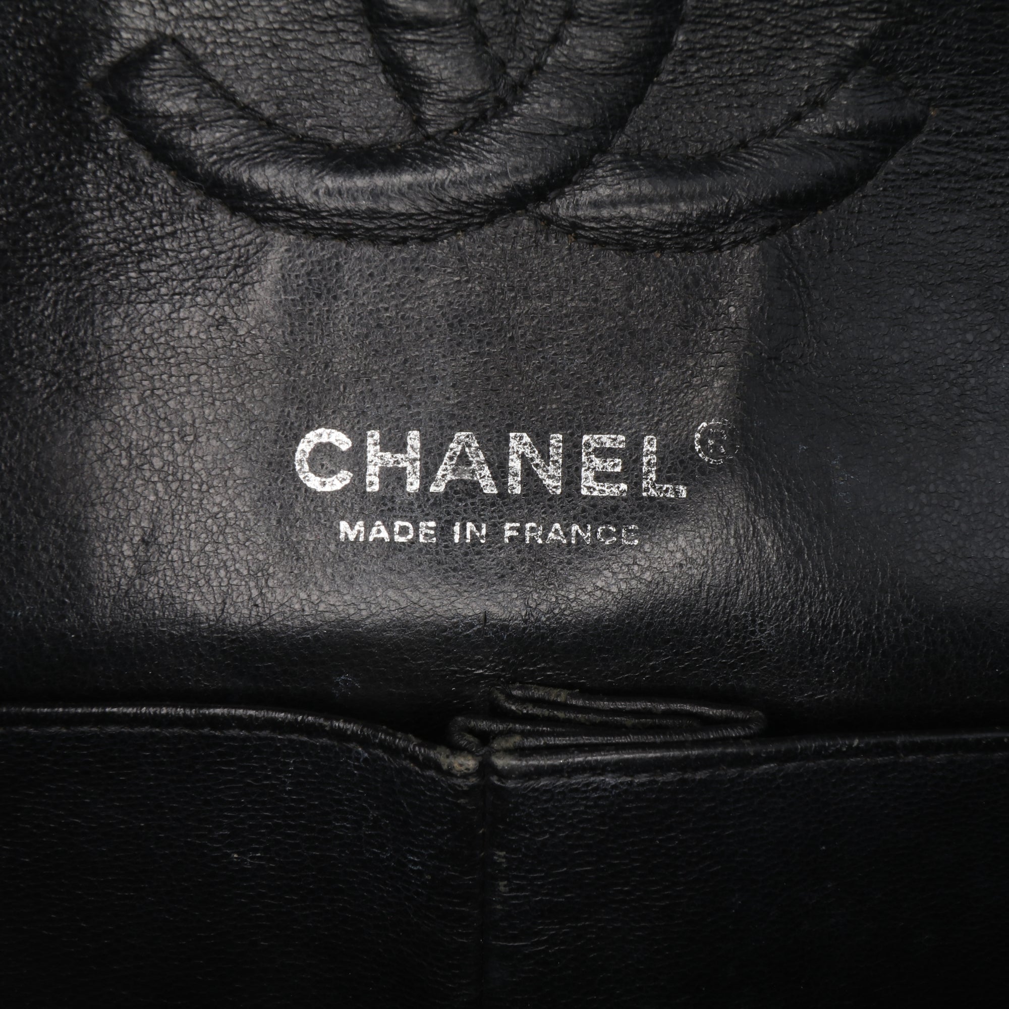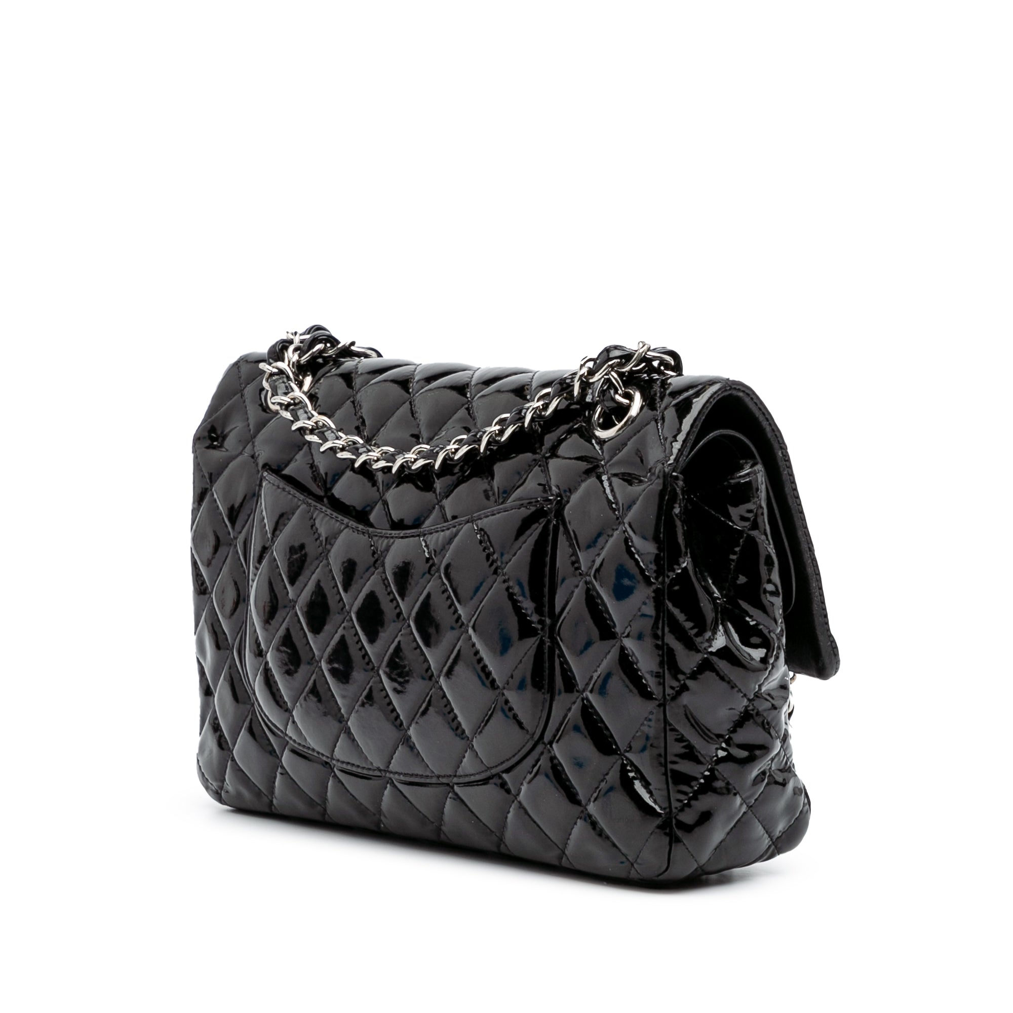 This shoulder bag features a quilted patent leather body, leather woven chain shoulder straps, double front flaps with CC turn-lock closure, an exterior back slip pocket, and interior zip and slip pockets. Retail Price: 10200.00