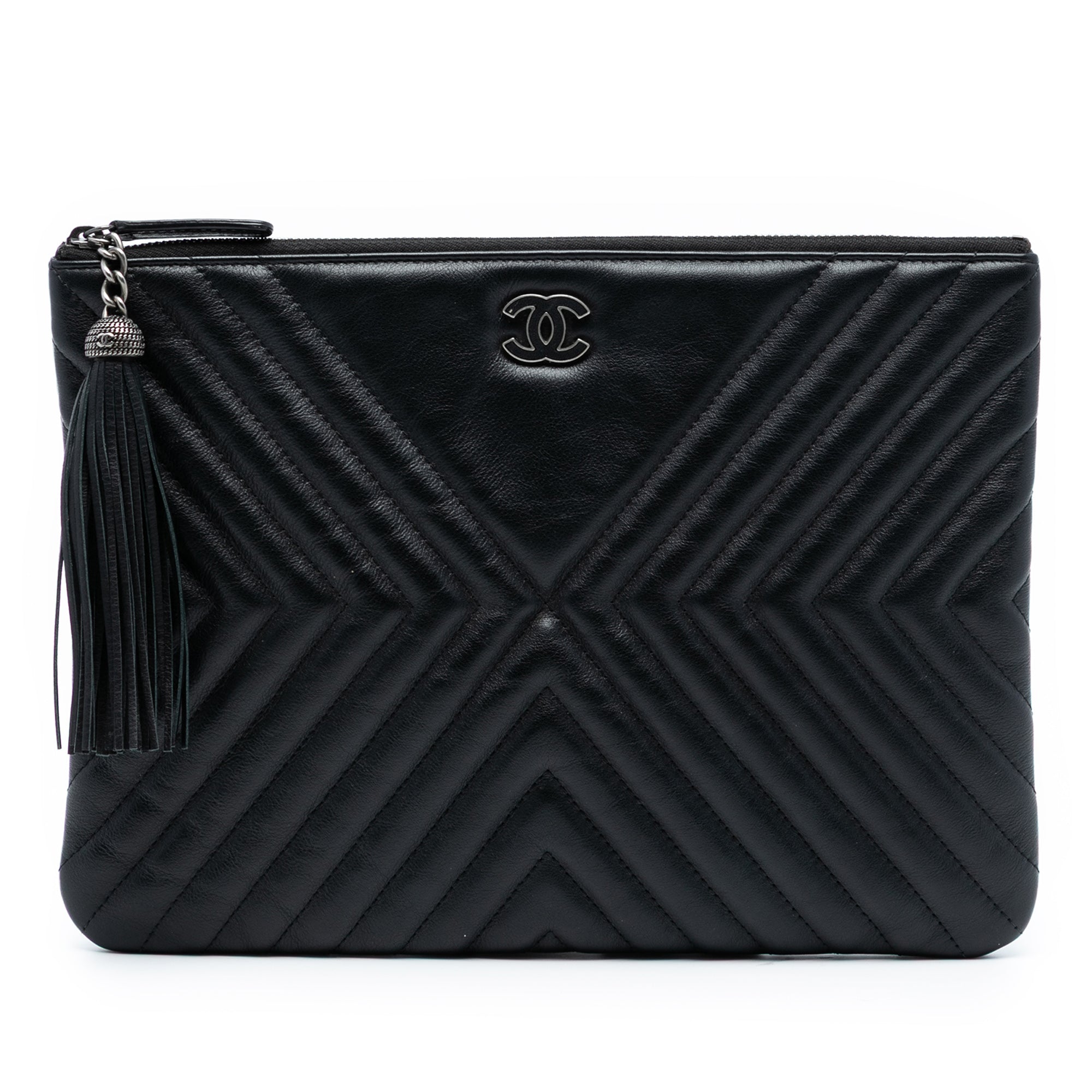 Chanel Medium Diagonal Chevron Calfskin Tassel O Case Clutch