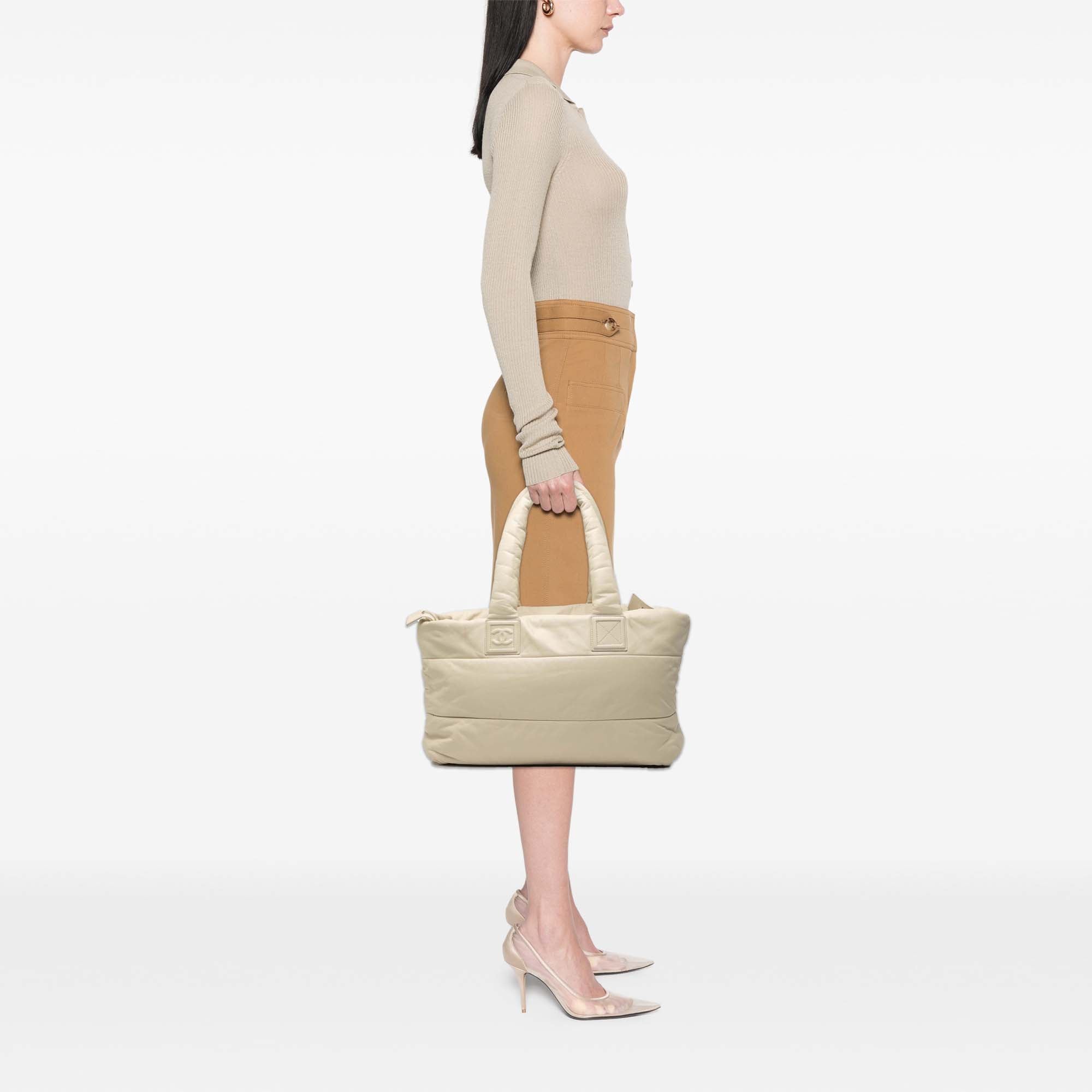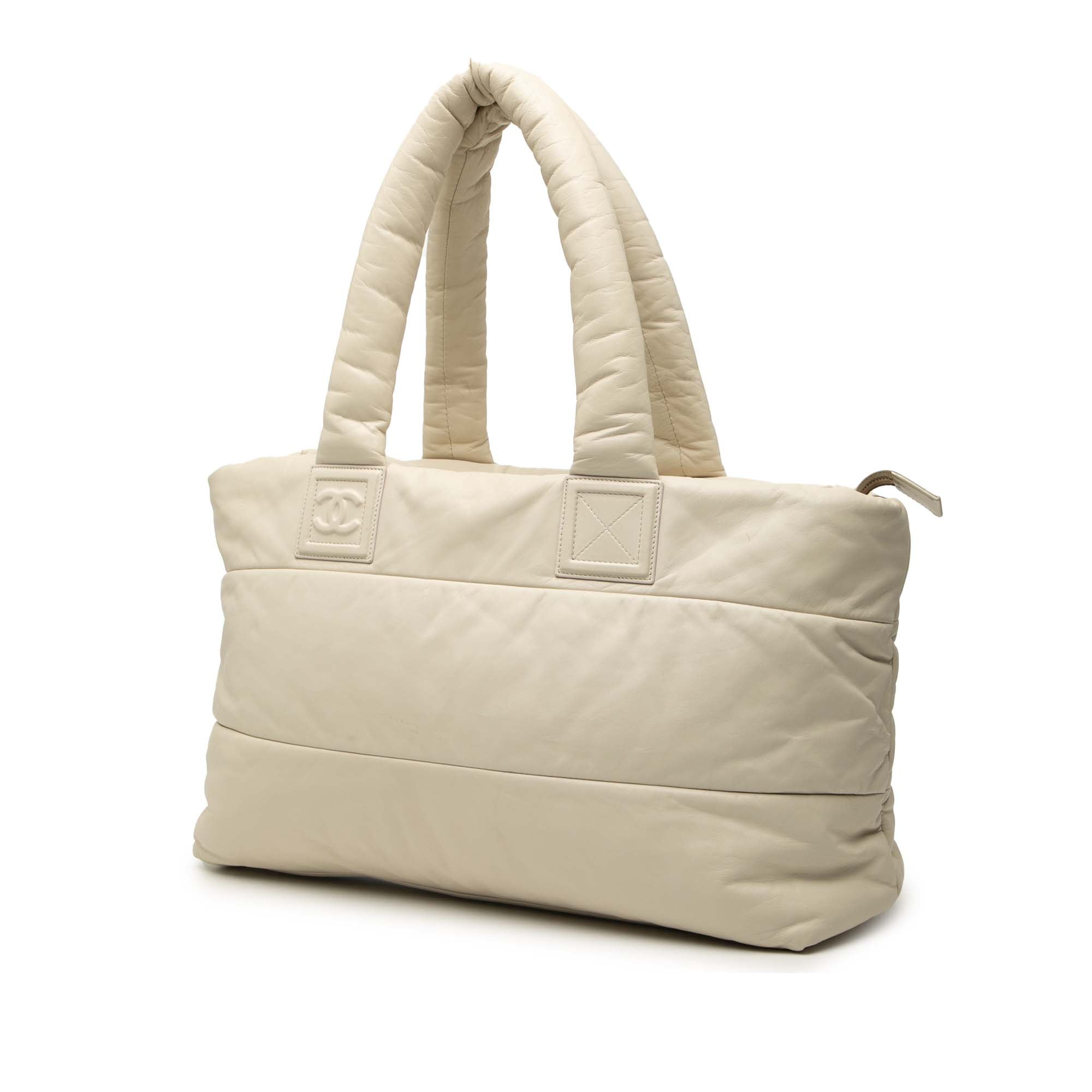 The Coco Cocoon features a lambskin leather body, rolled handles, an open top with a lobster claw closure, and an interior zip pocket. Inclusion: Dust bag, authenticity card. Retail Price: 2145.00