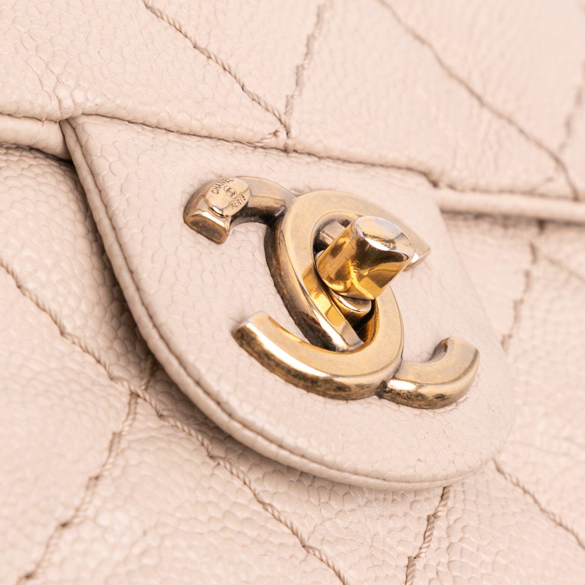 The Coco Pleats satchel features a caviar leather body with pleated front exterior, a curb chain link handle with leather guard, an adjustable and detachable flat leather strap, a front flap with interlocking Cs and a twist lock closure, and interior zip and slip pockets. Inclusion: authenticity card. Retail Price: 3800.00