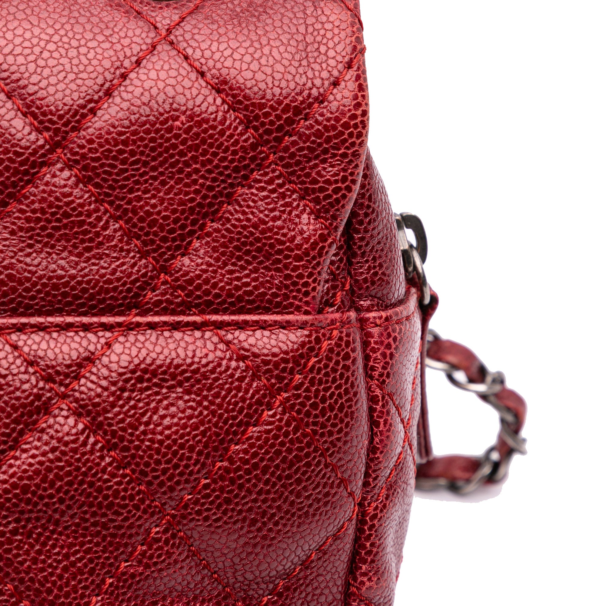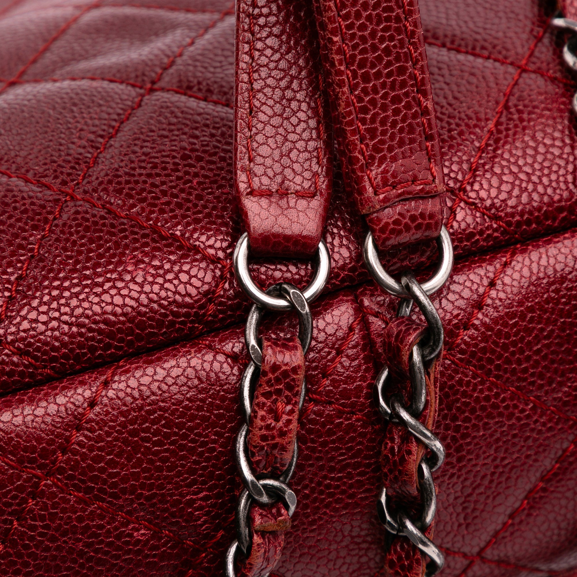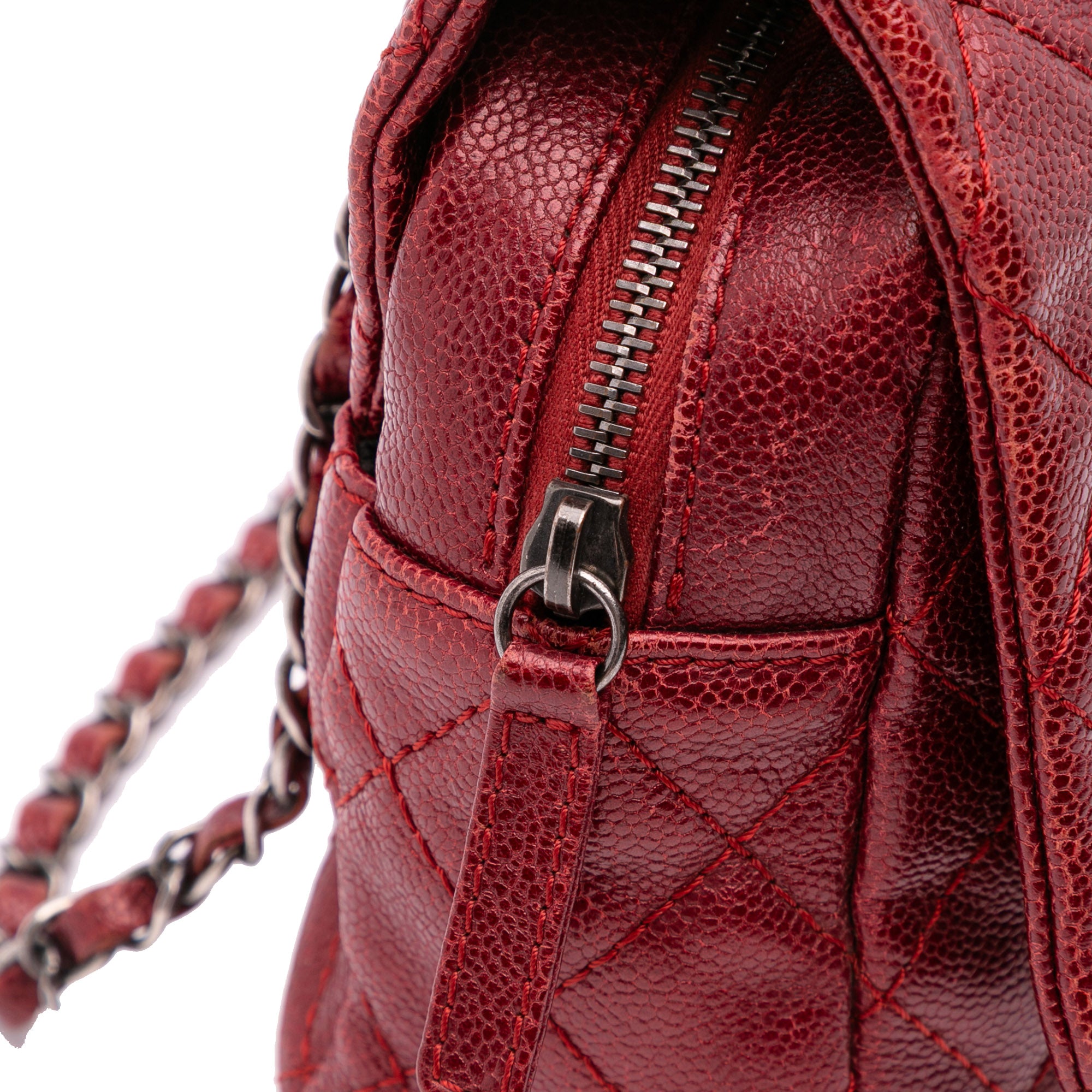 This crossbody bag features a quilted caviar leather body, a leather woven chain strap with leather shoulder guard, a flap with CC turn-lock closure, a top zip closure, and an interior zip pocket. Retail Price: 5200.00