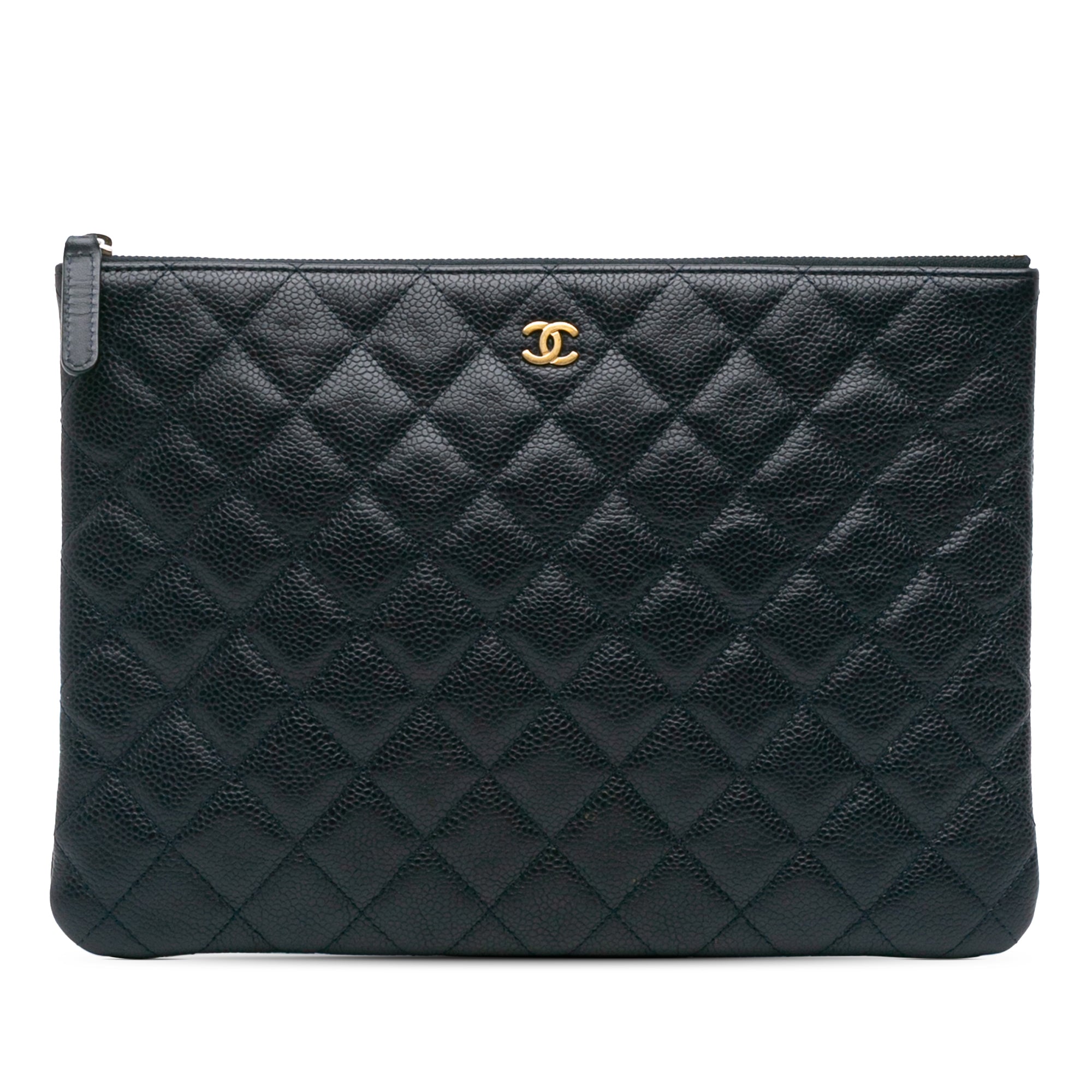 This clutch bag features a quilted caviar leather body, a top zip closure, an exterior back slip pocket, and an interior zip pocket. Inclusion: authenticity card. Retail Price: 1790.00