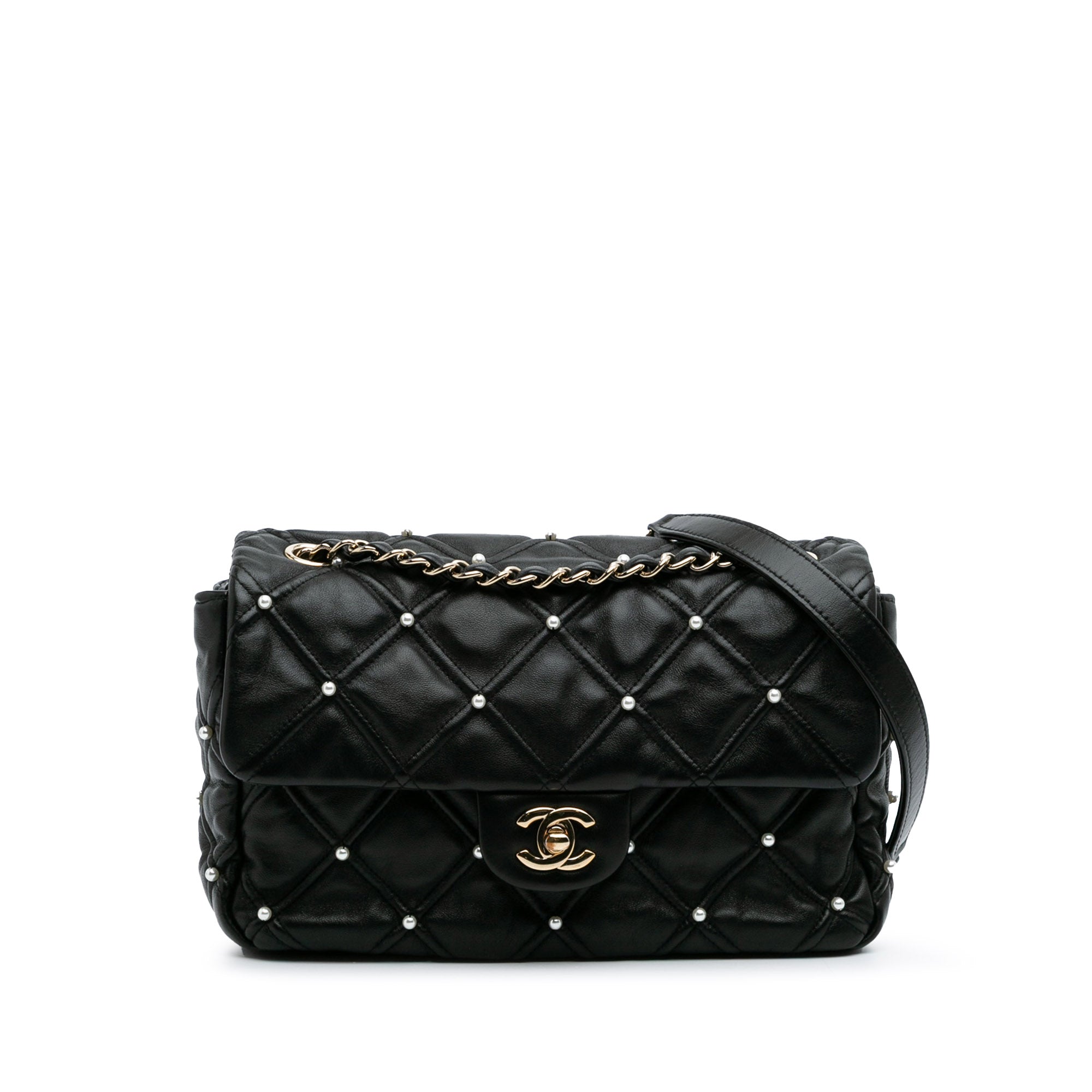 Chanel Medium Quilted Lambskin Pearl Studs Flap