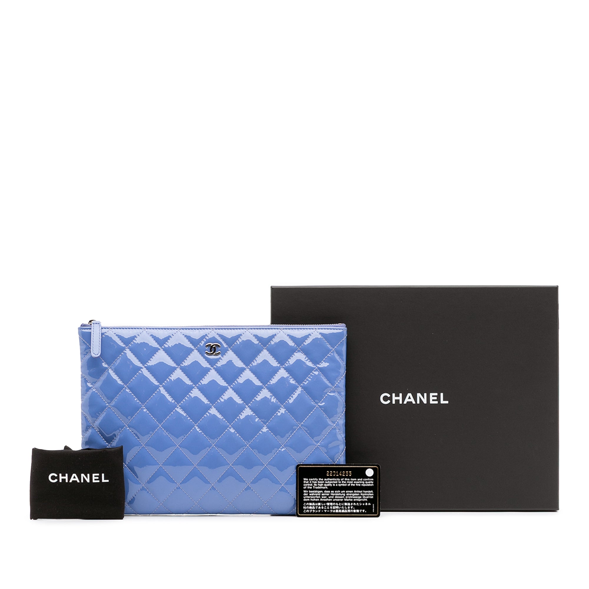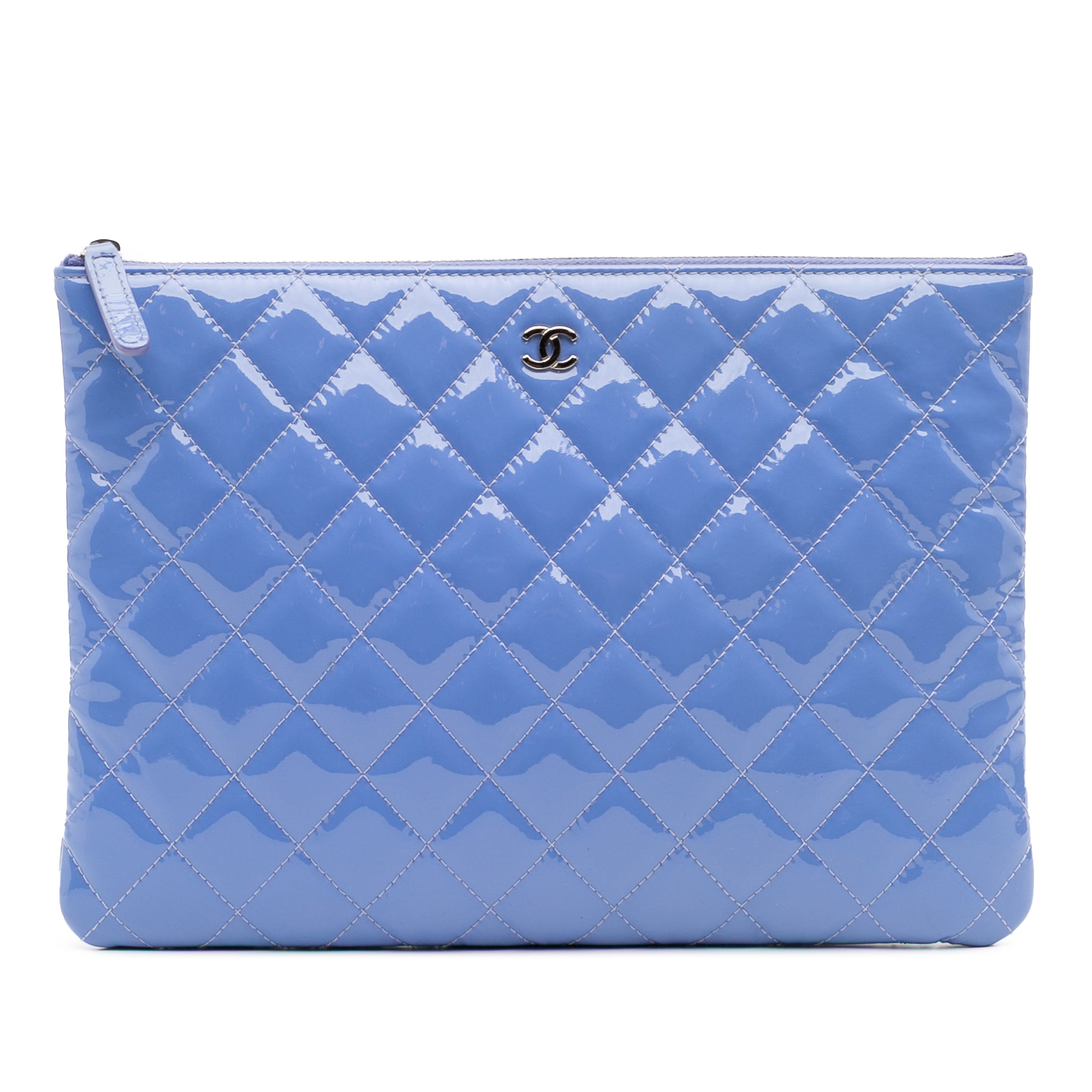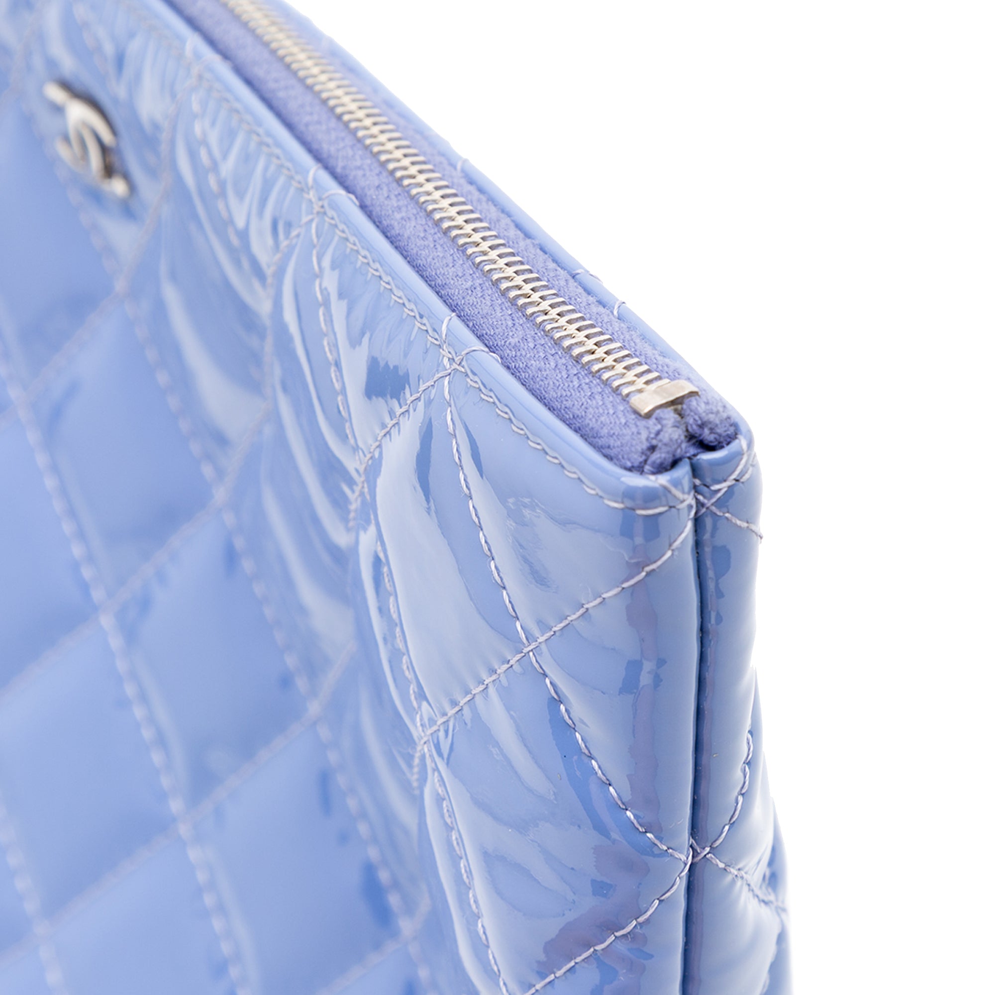 This clutch bag features a quilted patent leather body and a top zip closure. Inclusion: Dust bag, box, authenticity card. Retail Price: 2000.00