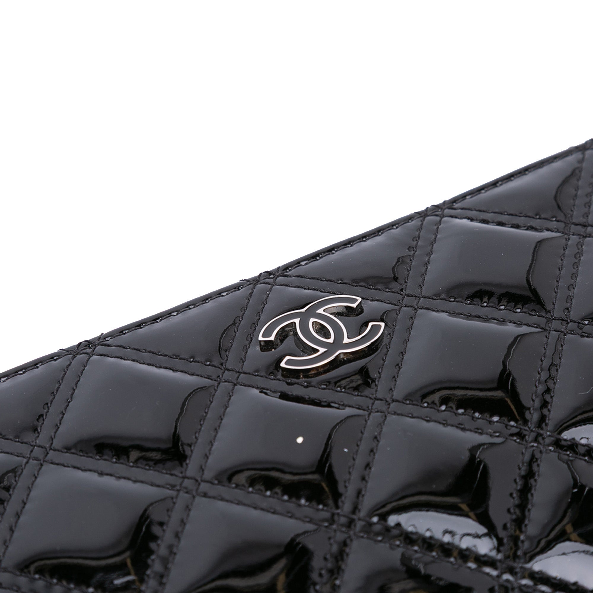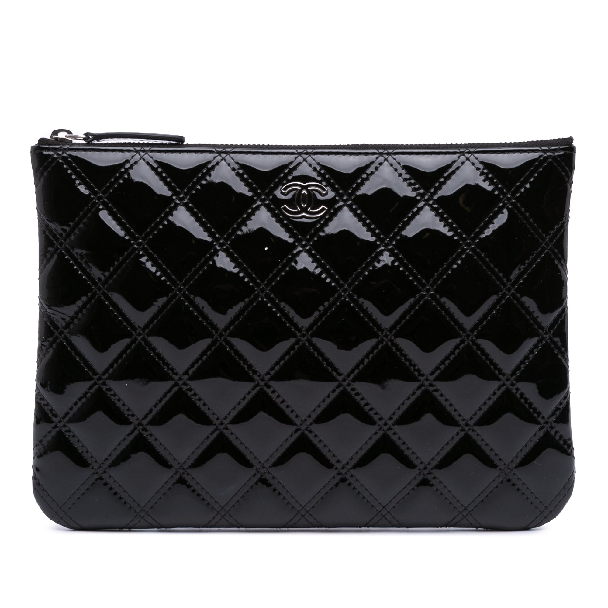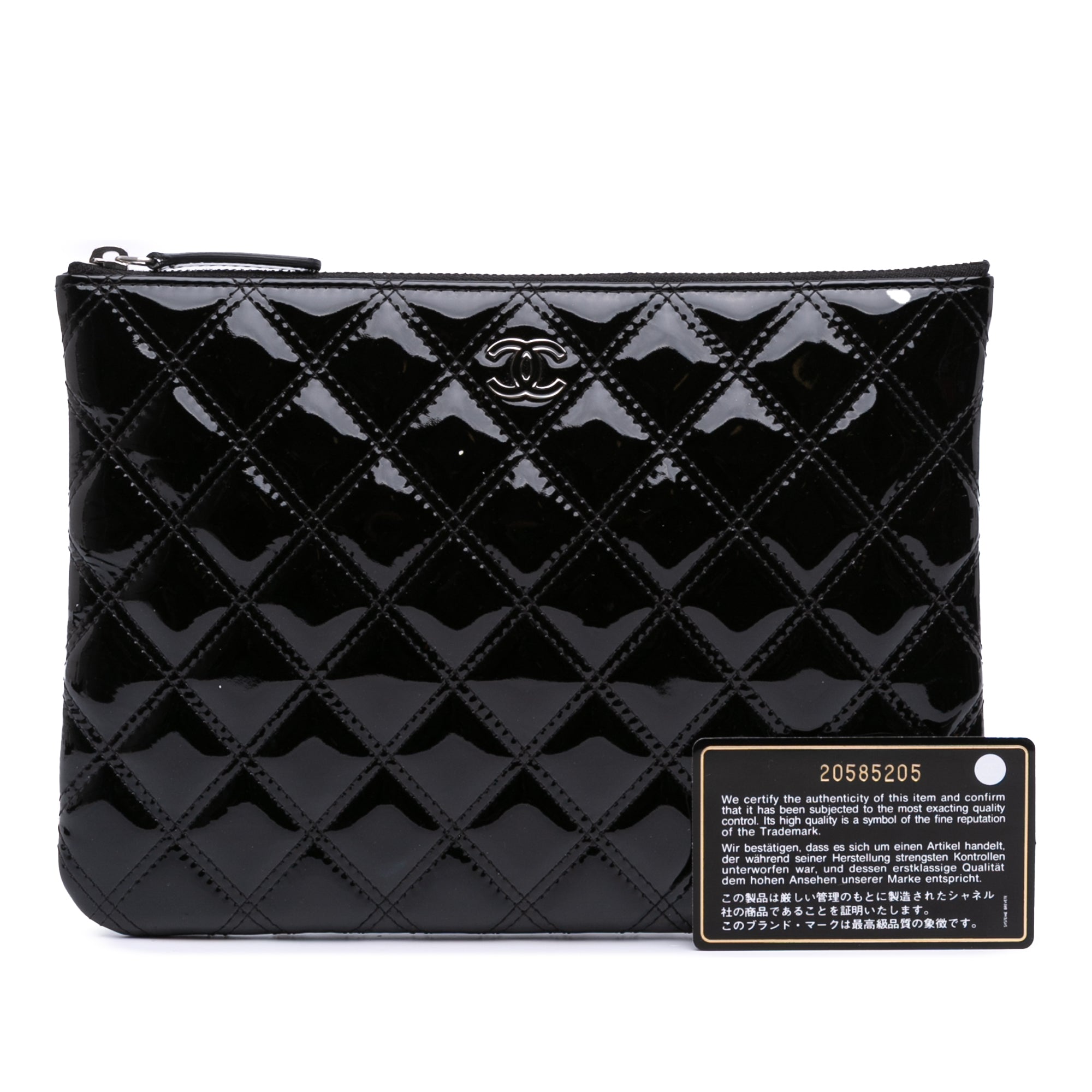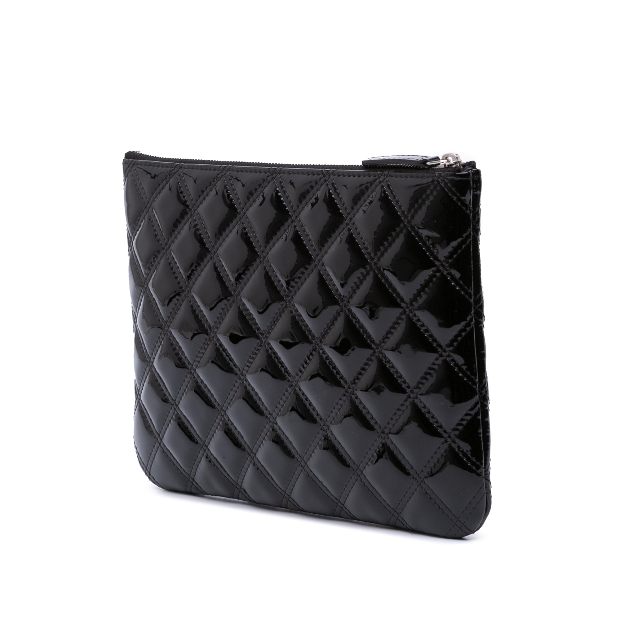 This clutch bag features a quilted patent leather body and a top zip closure. Inclusion: authenticity card. Retail Price: 2400.00