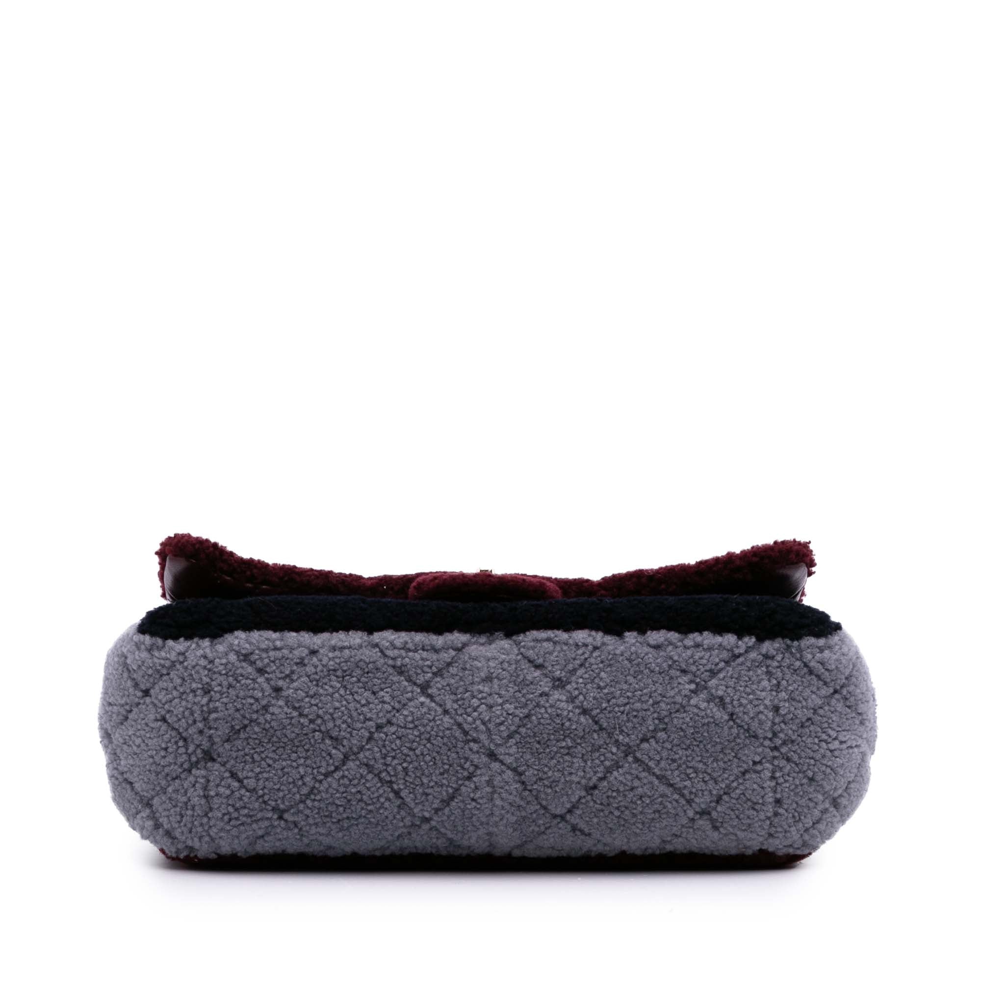 This flap bag features a shearling body with leather trim, leather woven chain straps, a front flap with CC turnlock closure, and an interior zip pocket. Retail Price: 4600.00