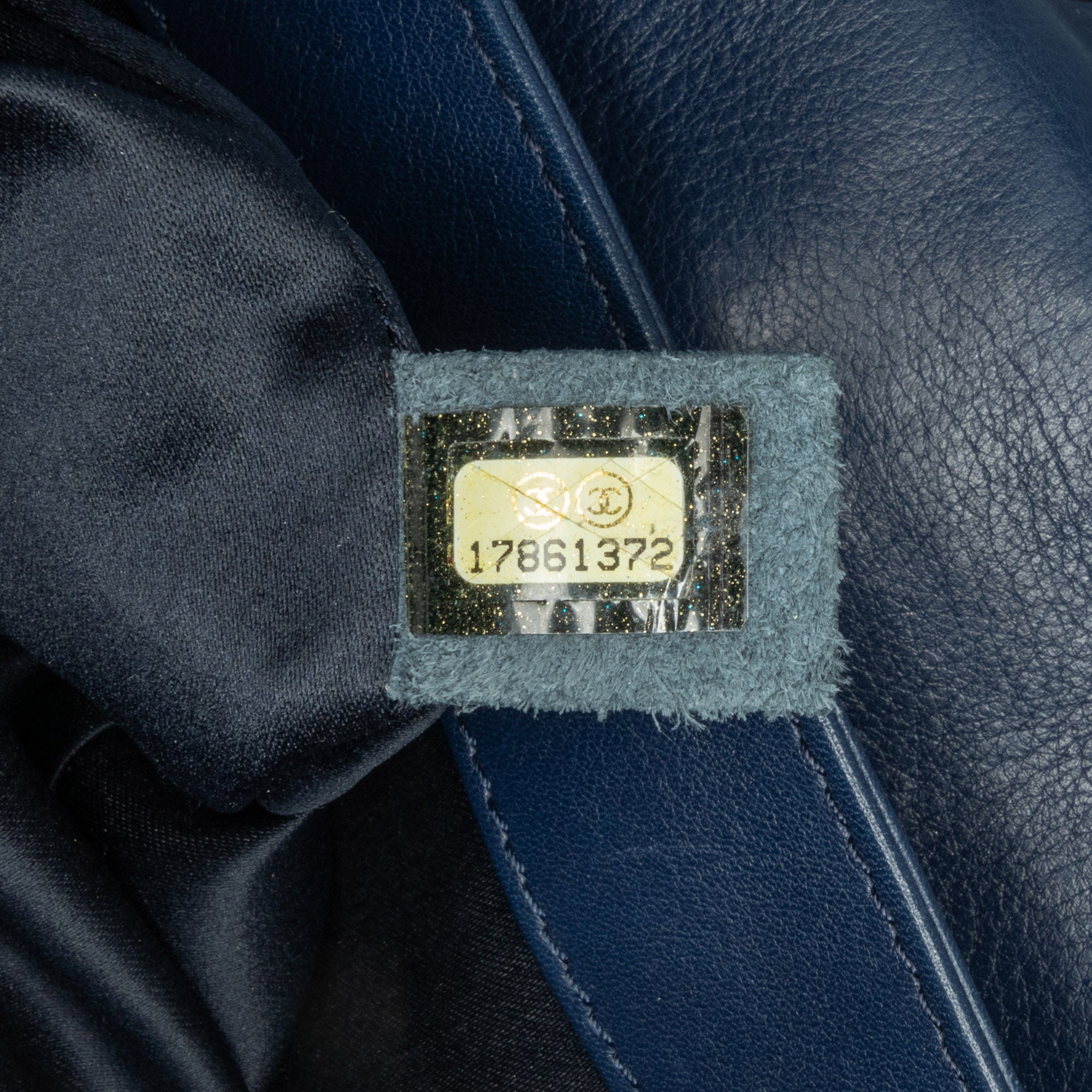 This flap bag features a stitched calfskin body, a leather-woven chain strap with leather shoulder guard, a front flap with interlocking CC twist lock closure, an exterior back slip pocket, and an interior zip pocket. Inclusion: Dust bag. Retail Price: 3500.00