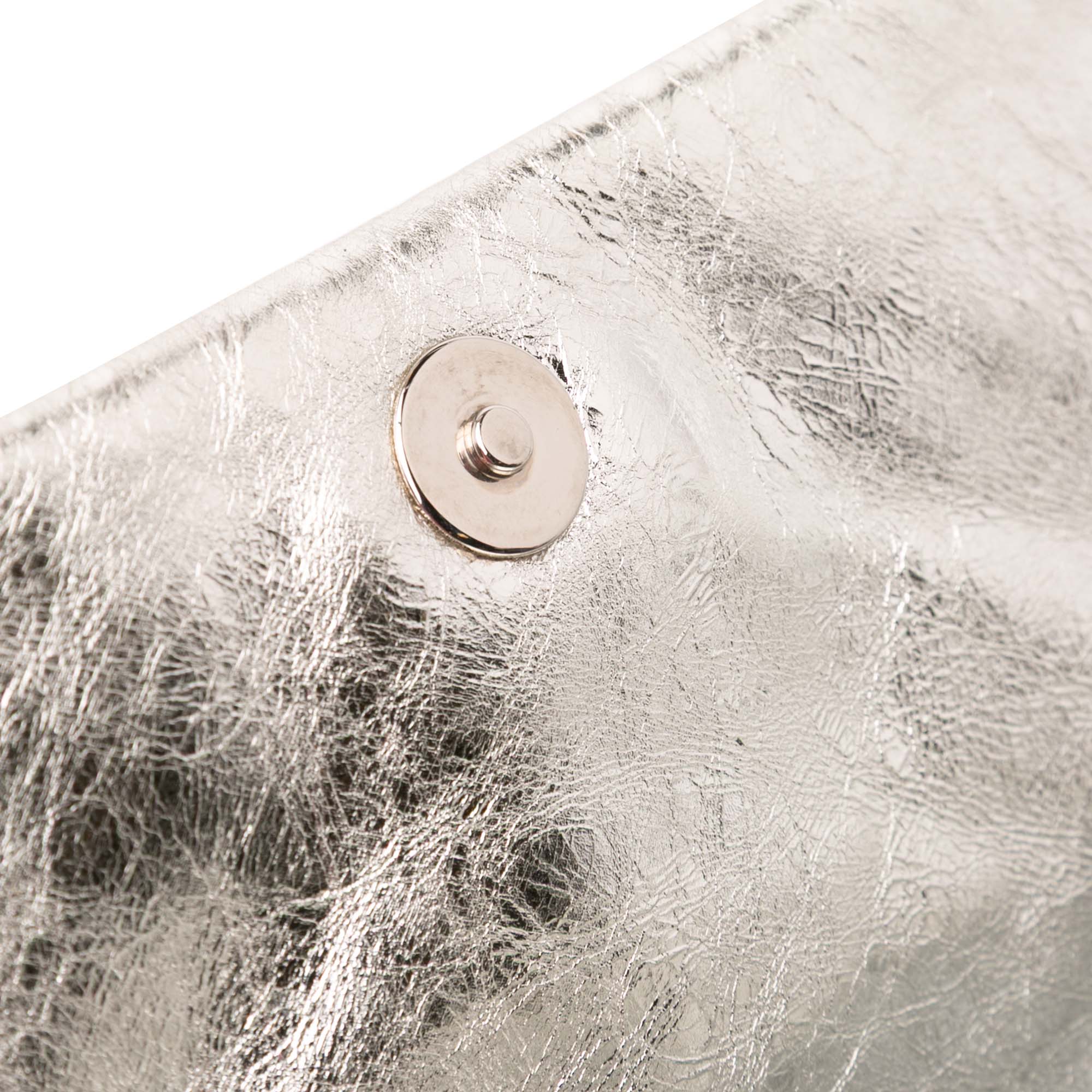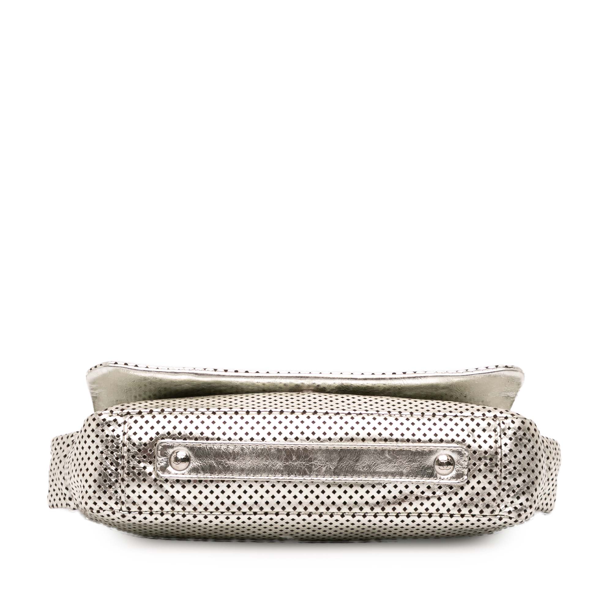 The Rodeo Drive features a perforated leather body, a chain link shoulder strap, a front flap with magnetic snap closure, and interior zip and slip pockets. Retail Price: 2500.00