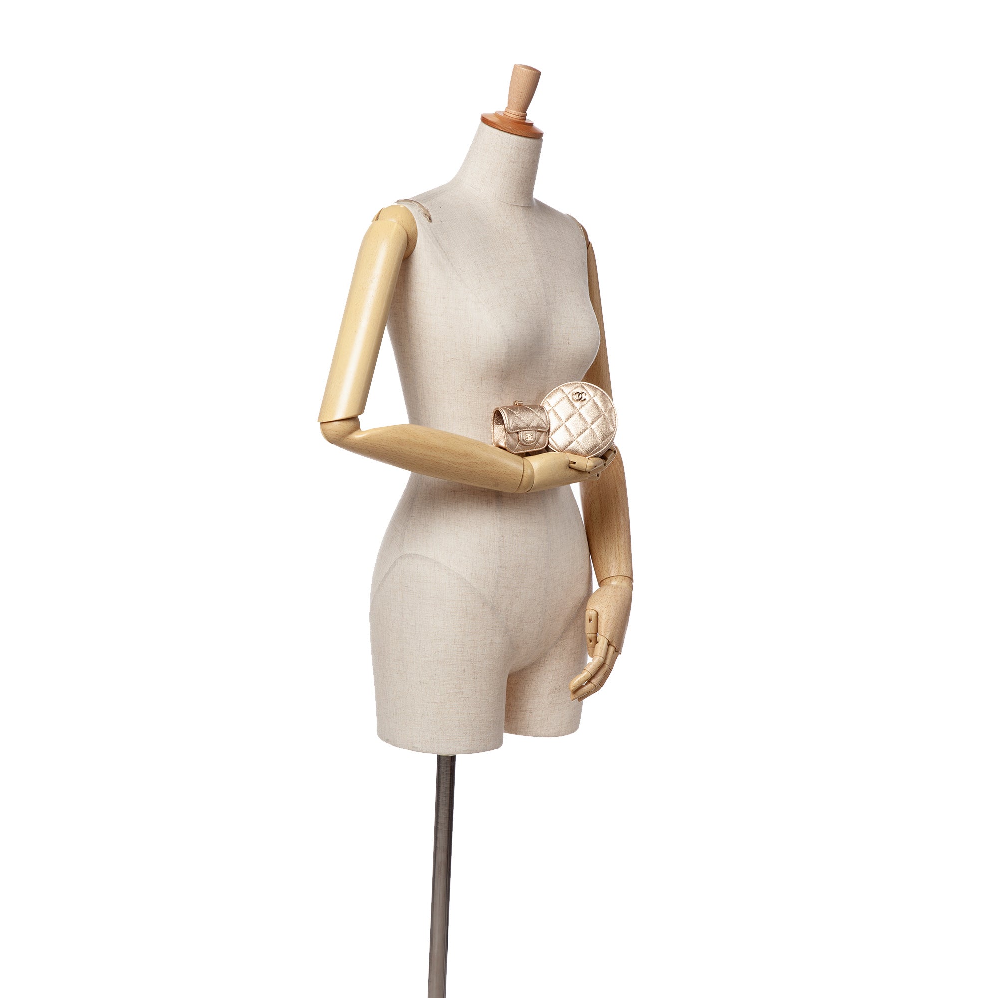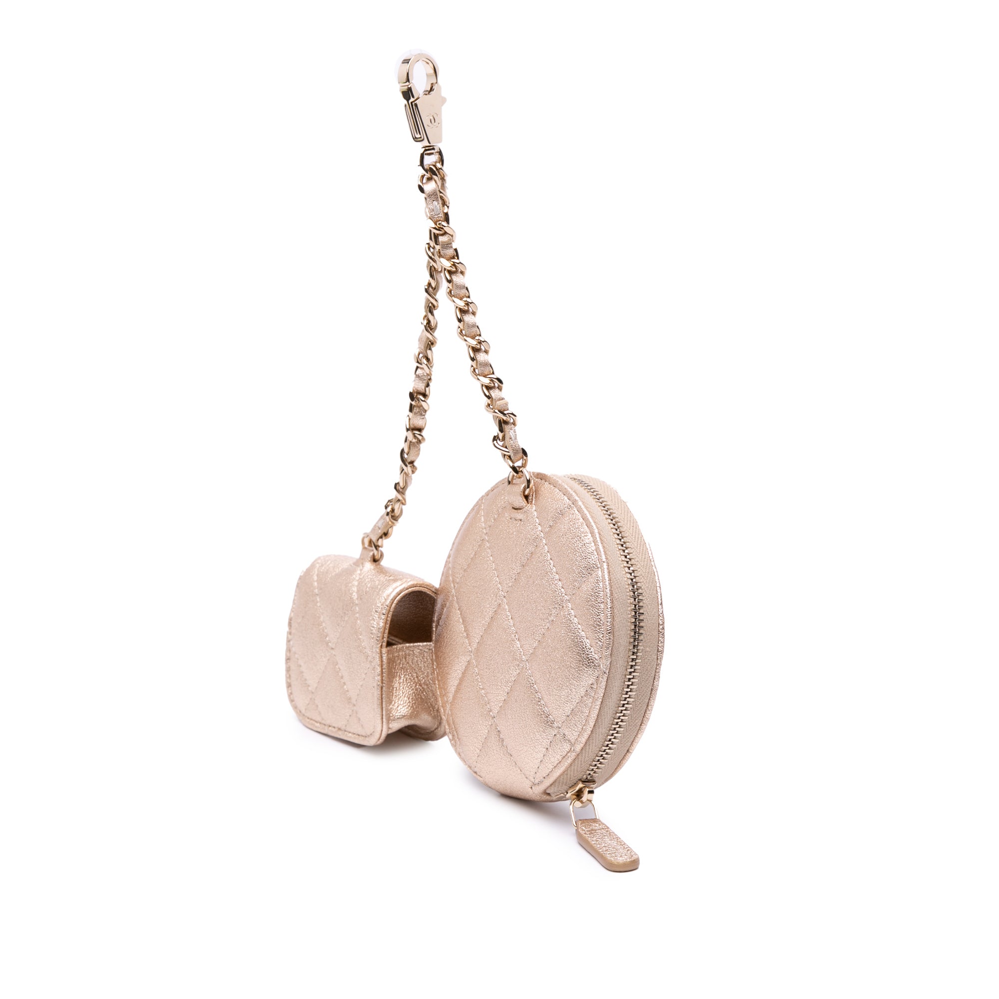 Chanel Metallic Quilted Lambskin Round Clip On Coin Purse Airpods Case Secondhand
